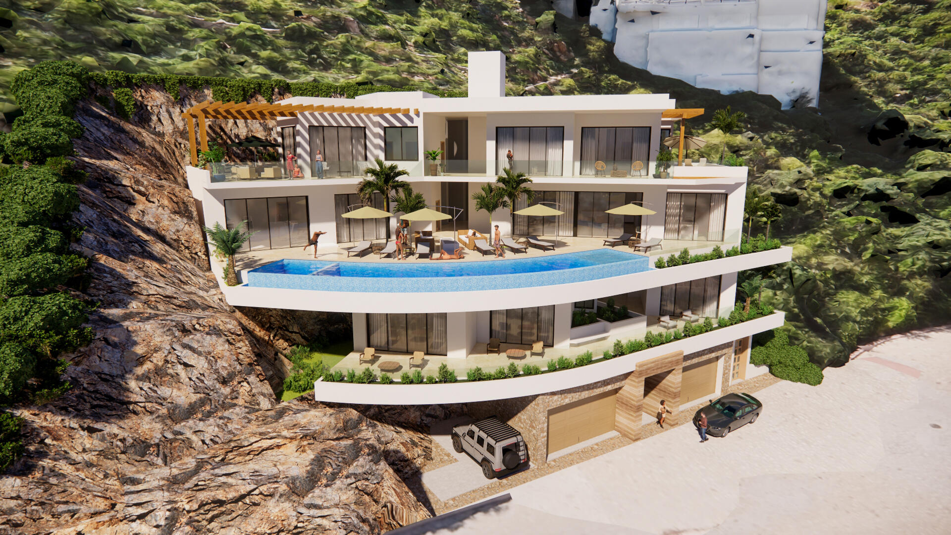 'Perched above Cabo San Lucas' iconic marina, Lot Diamond View offers a rare opportunity to build a bespoke 6-bedroom multi-level estate within the prestigious gated community of Pedregal. This 1,151.19 m² (12,393 sq ft) homesite features a gentle slope ideal for a contemporary design that maximizes ocean and marina views. Conceptual plans by architect Prospero Tapia envision a modern residence with open interiors, expansive terraces, and an infinity-edge pool integrated into the hillside. The project highlights the potential for seamless indoor-outdoor living, natural light, and panoramic vistas of the Sea of Cortez. Located within Pedregal, offering privacy, security, and proximity to downtown Cabo, the marina, and fine dining. Renderings are conceptual and intended to illustrate