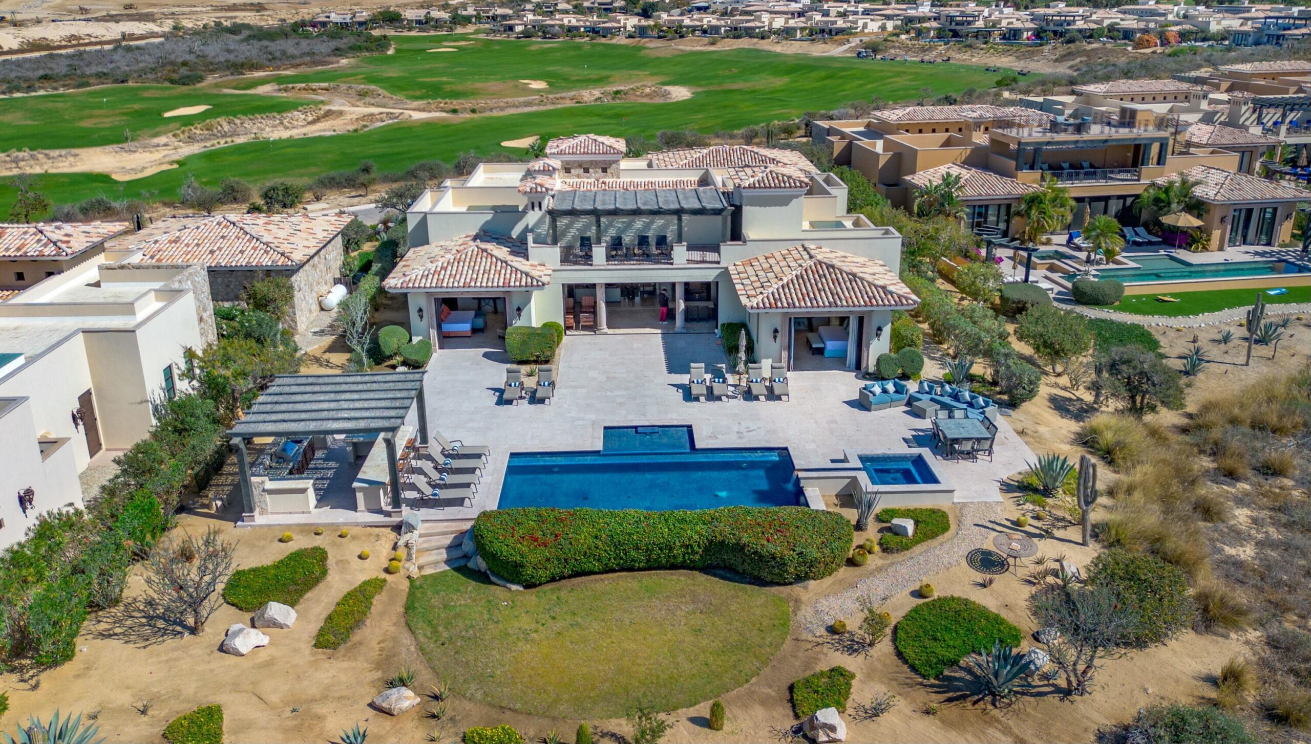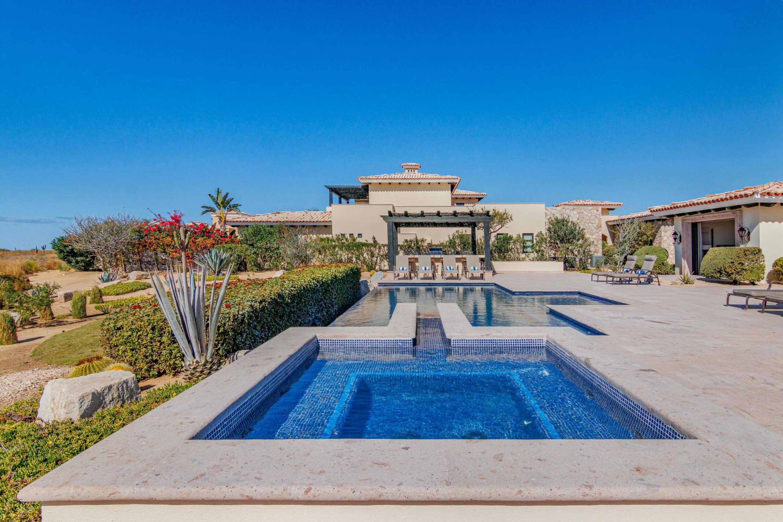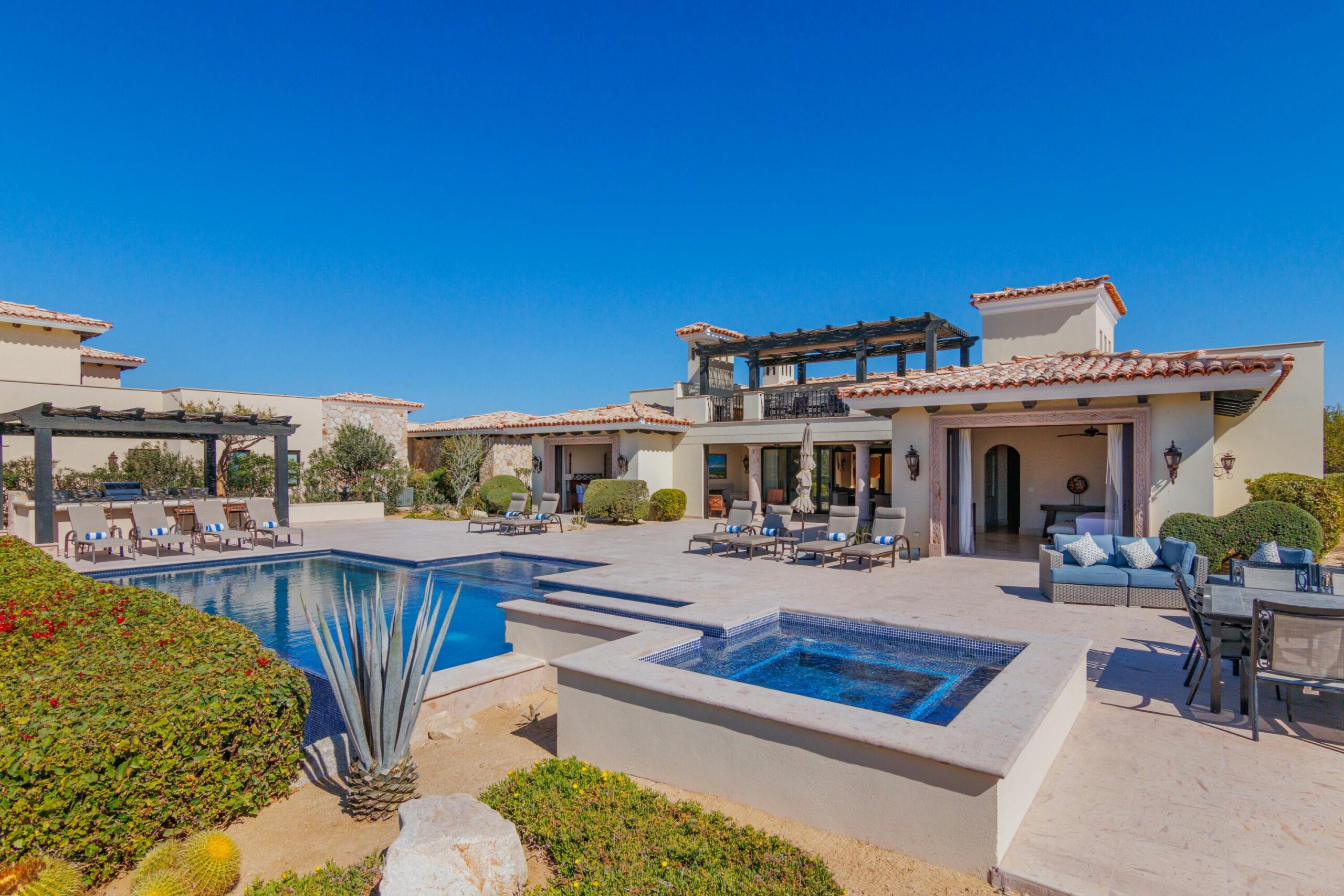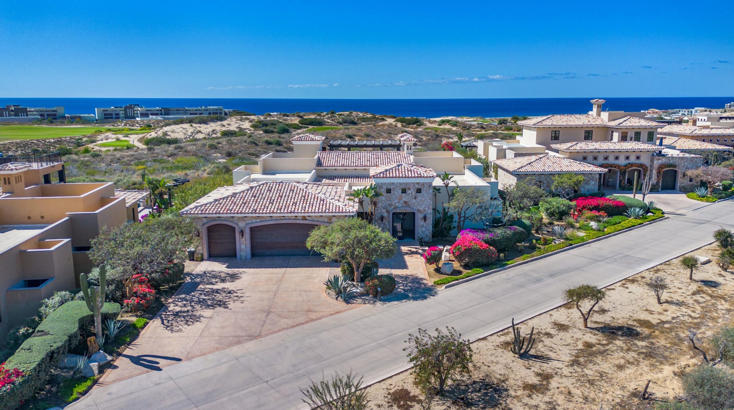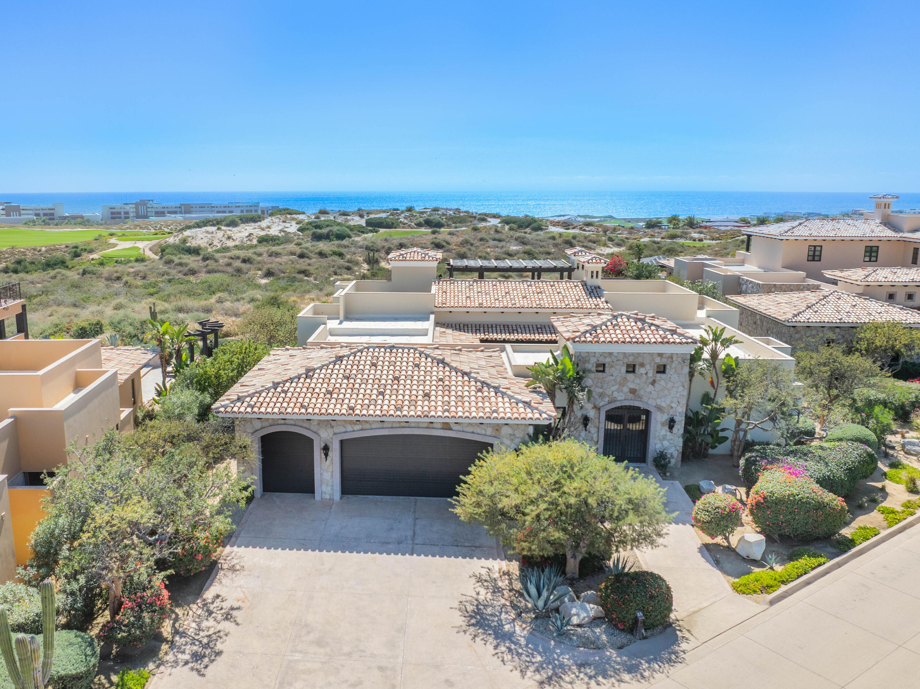 Open to seller financing! Best priced 5 bedroom ocean/golf course view home at Diamante. Freshly updated and perfectly situated along the Dunes Course this villa is Inspired by Mexican haciendas. The villa centers around a dramatic courtyard and features a seamless indoor-outdoor design. Highlights include a great room that opens to a terrace, five bedrooms with en-suite baths, a gourmet kitchen, and a media room which doubles as bedroom with 4 queen bunk beds. Step outside to an infinity pool, palapa bar, fire pit, and outdoor grill, perfect for entertaining. Additional amenities include indoor/outdoor showers, a two-car garage, and a golf cart garage.