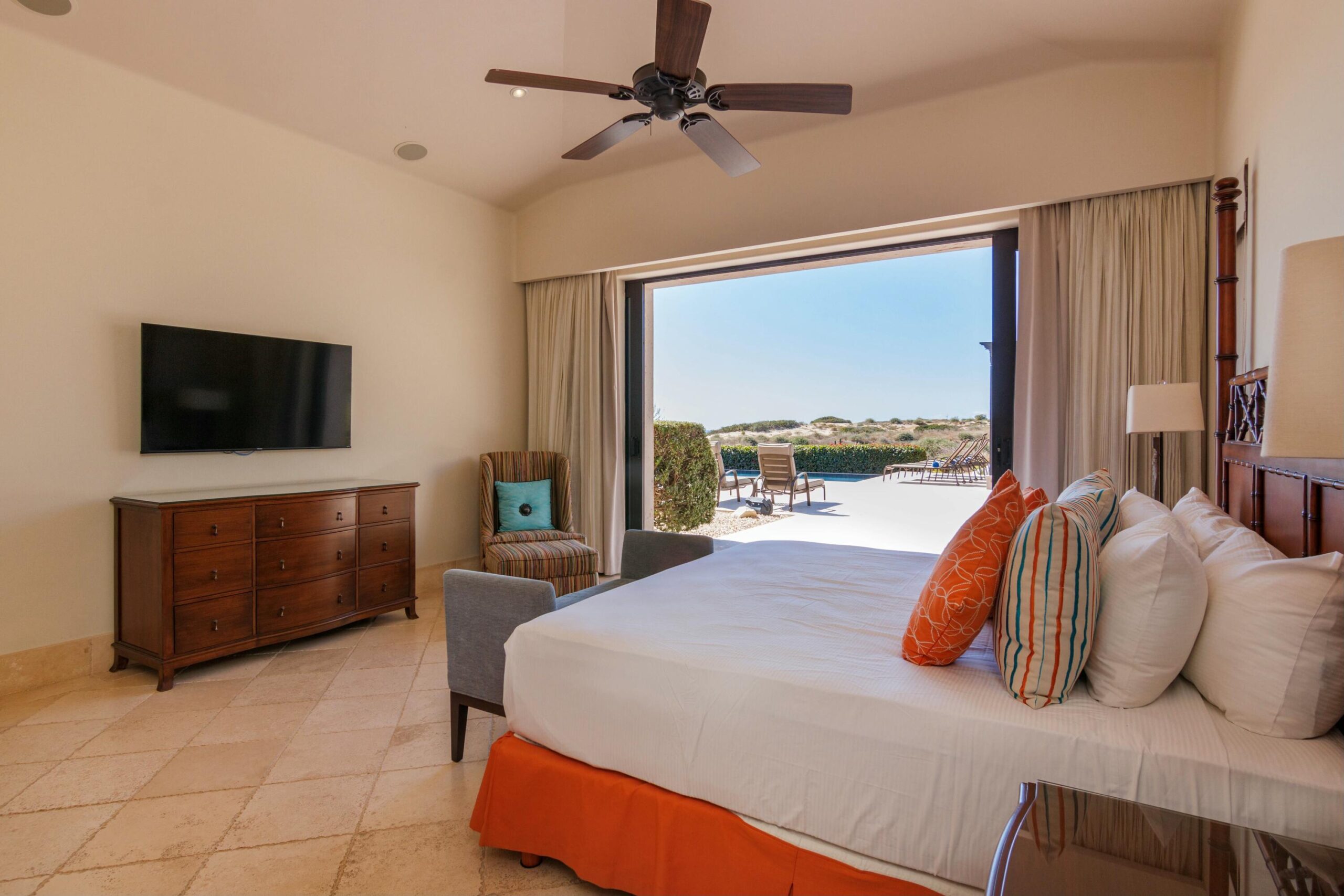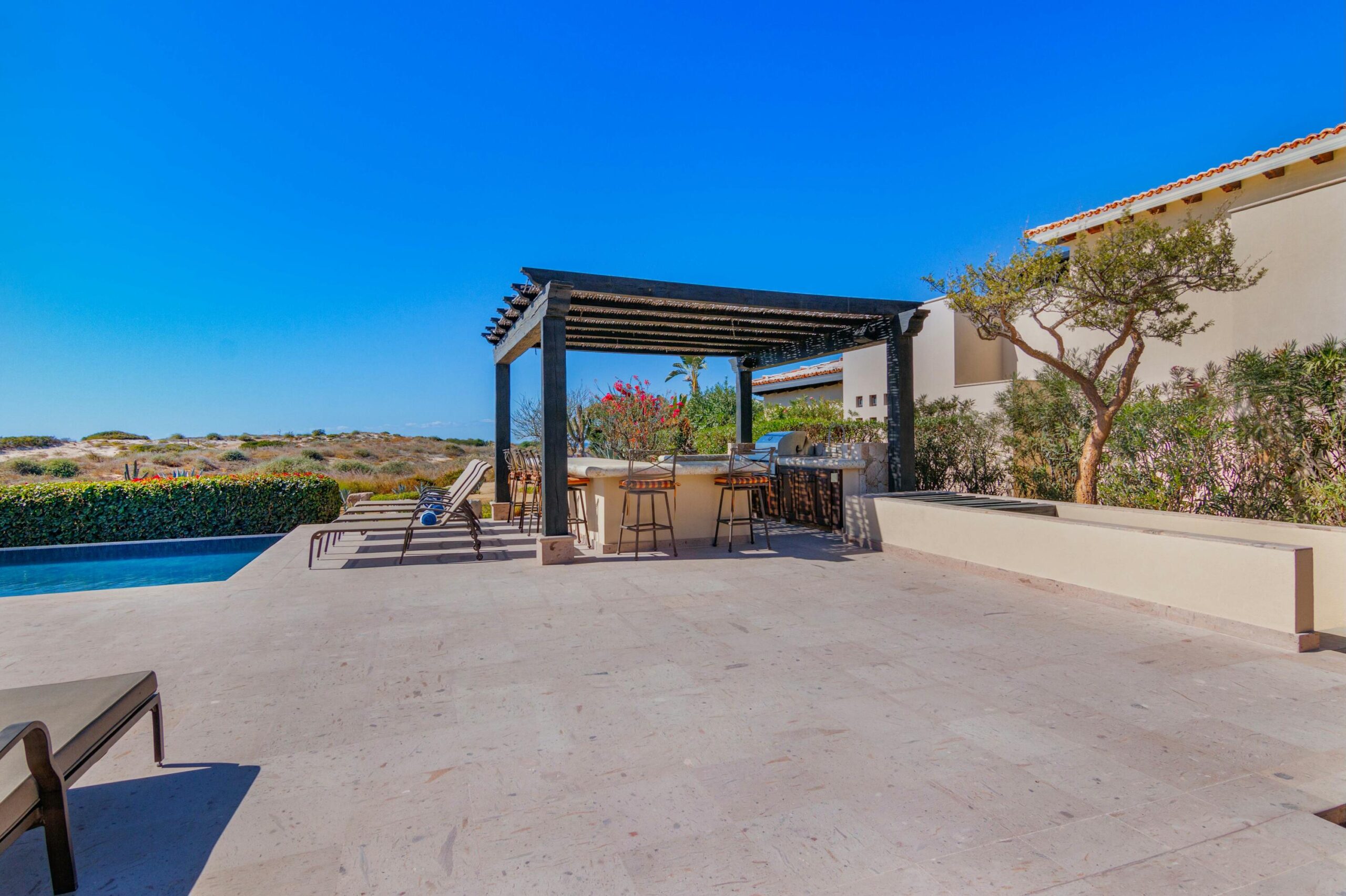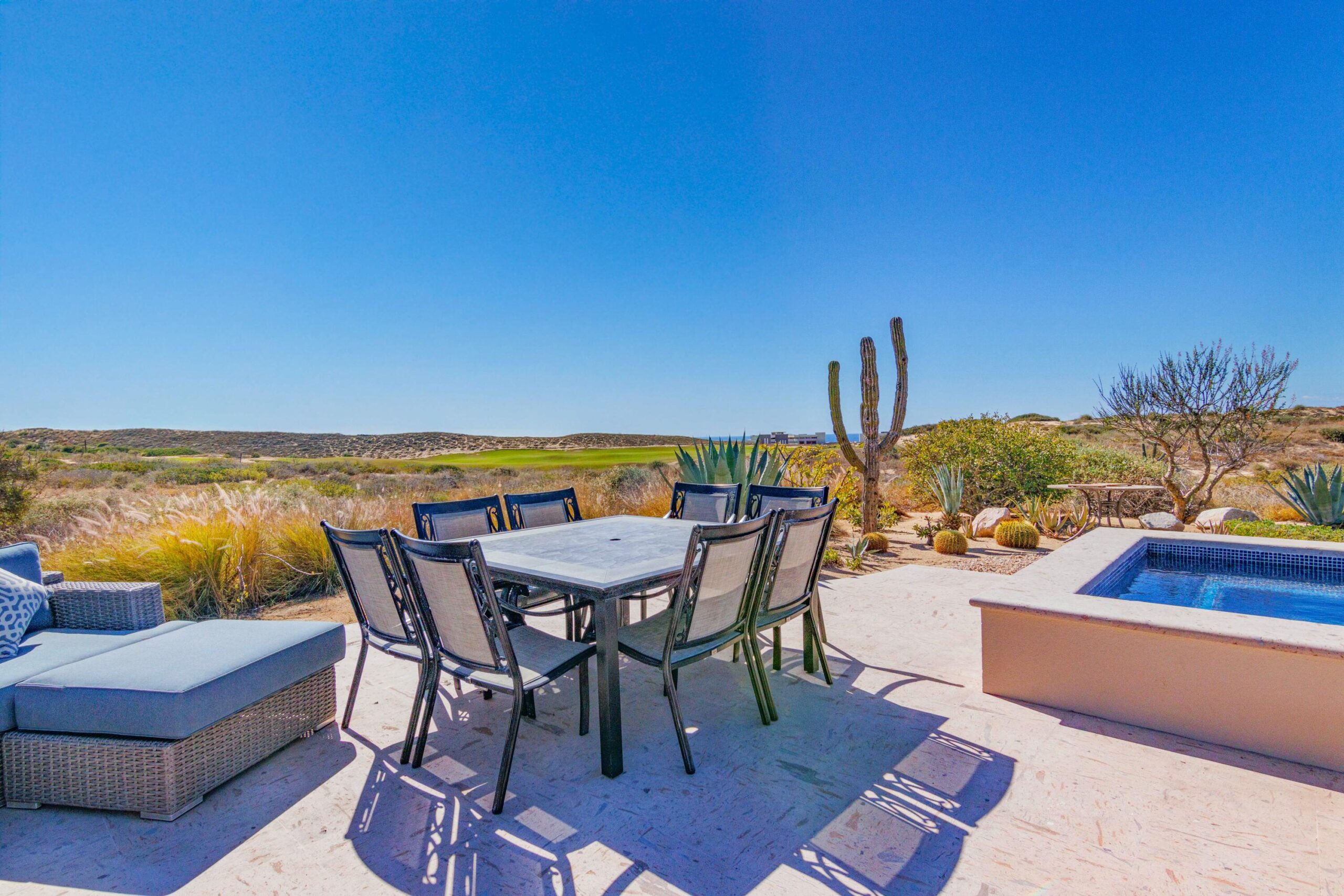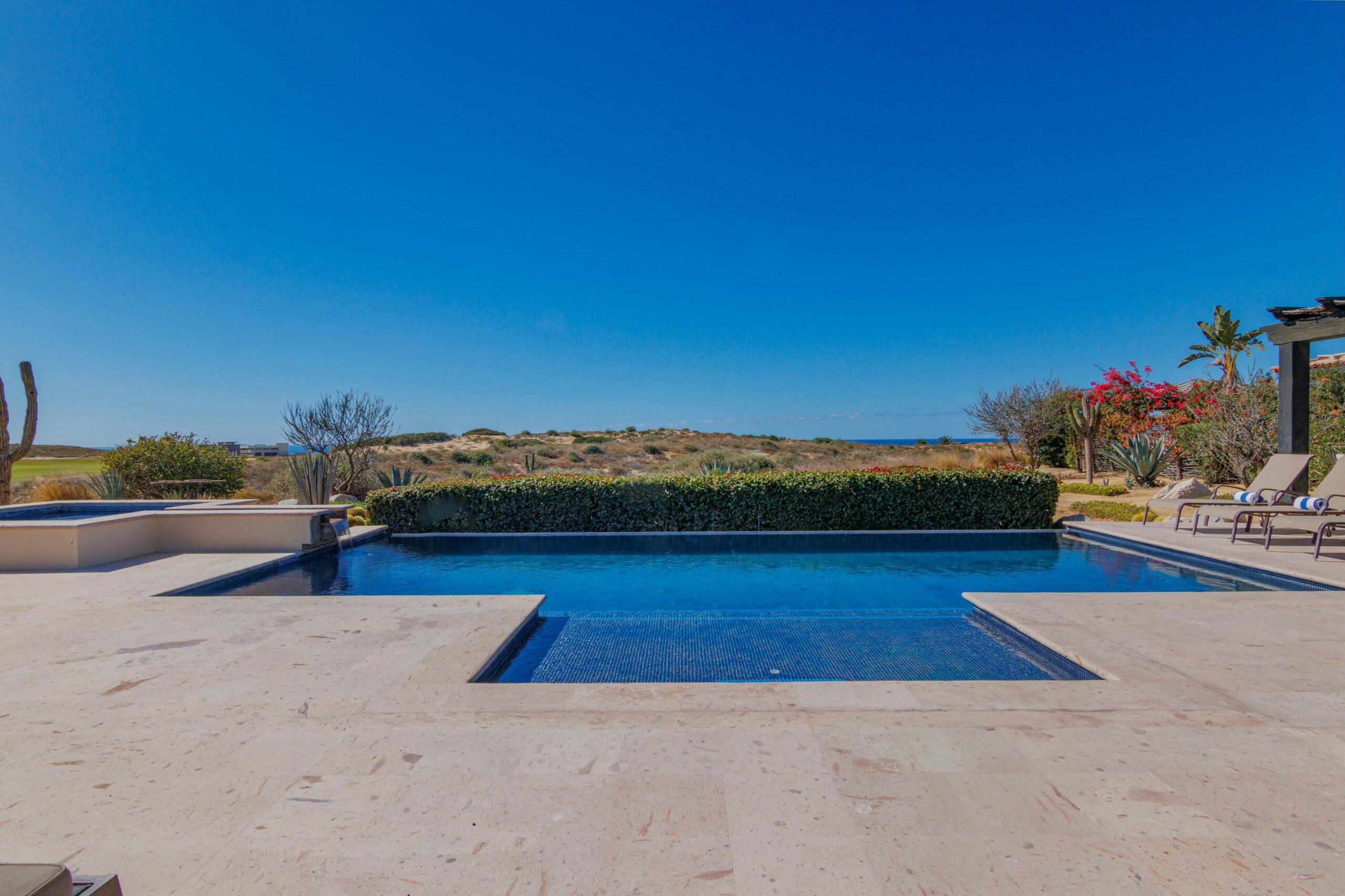 Open to seller financing! Best priced 5 bedroom ocean/golf course view home at Diamante. Freshly updated and perfectly situated along the Dunes Course this villa is Inspired by Mexican haciendas. The villa centers around a dramatic courtyard and features a seamless indoor-outdoor design. Highlights include a great room that opens to a terrace, five bedrooms with en-suite baths, a gourmet kitchen, and a media room which doubles as bedroom with 4 queen bunk beds. Step outside to an infinity pool, palapa bar, fire pit, and outdoor grill, perfect for entertaining. Additional amenities include indoor/outdoor showers, a two-car garage, and a golf cart garage.