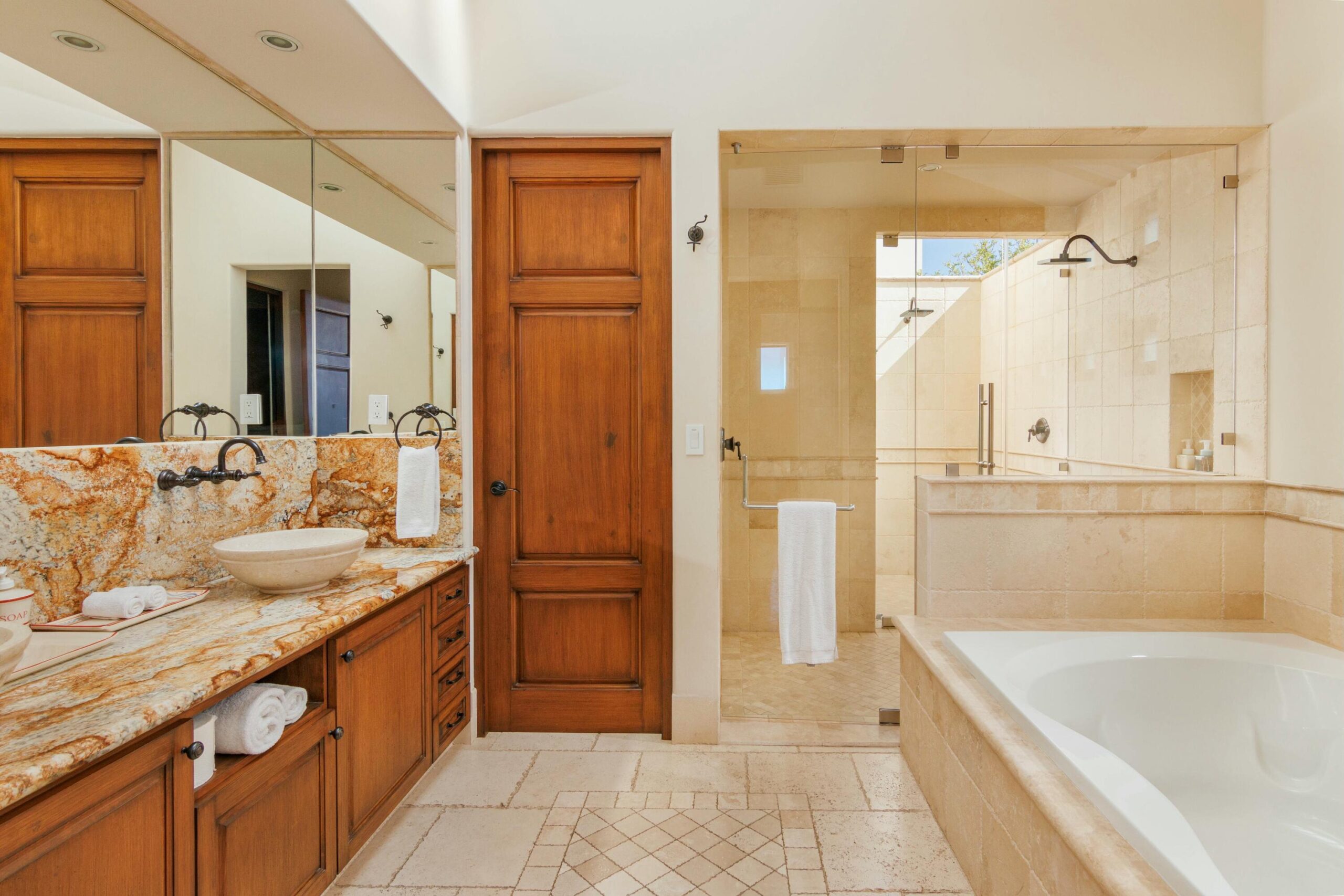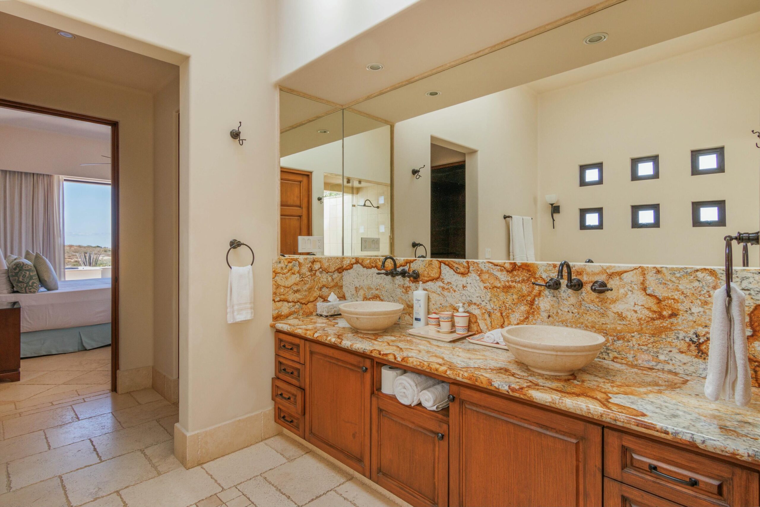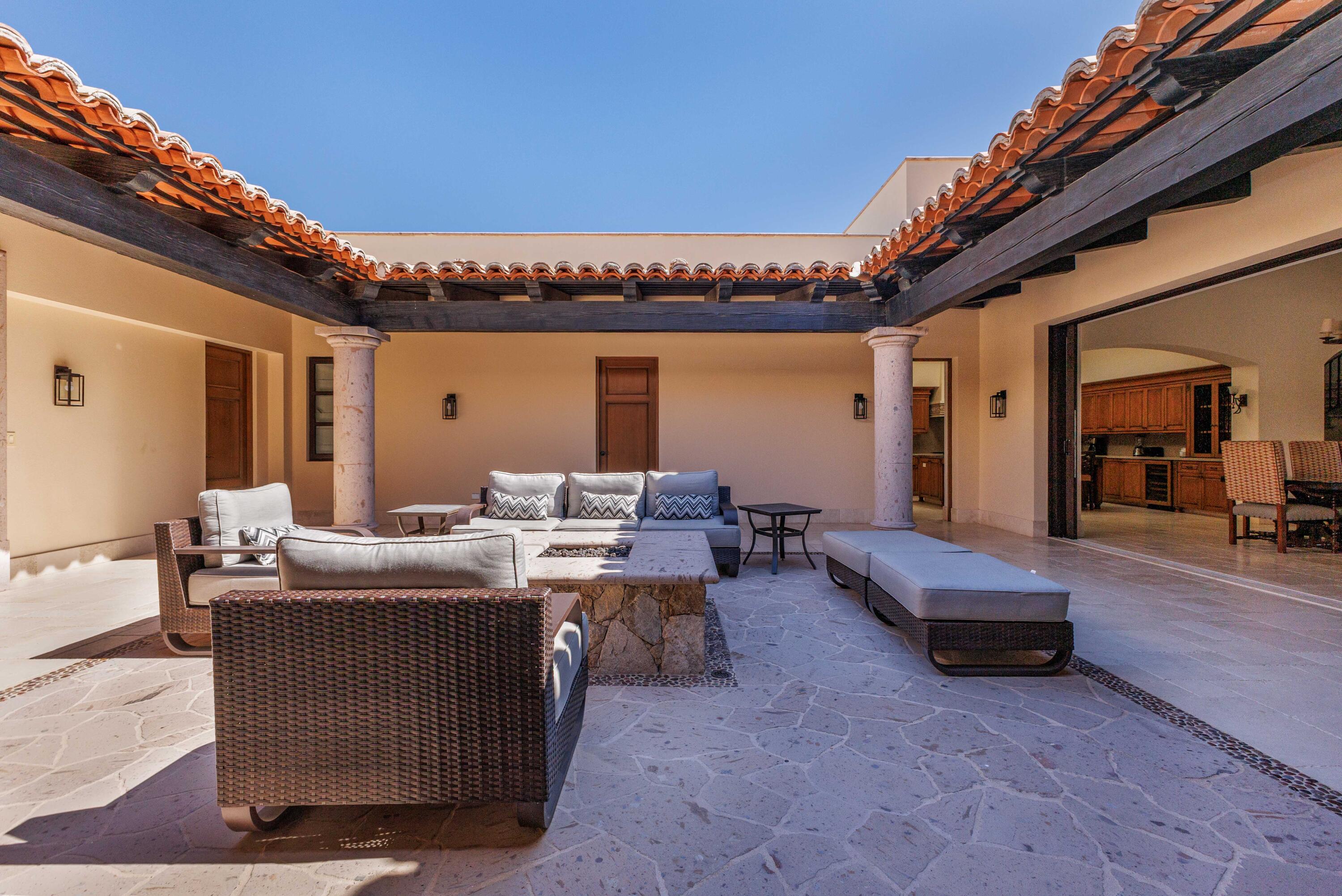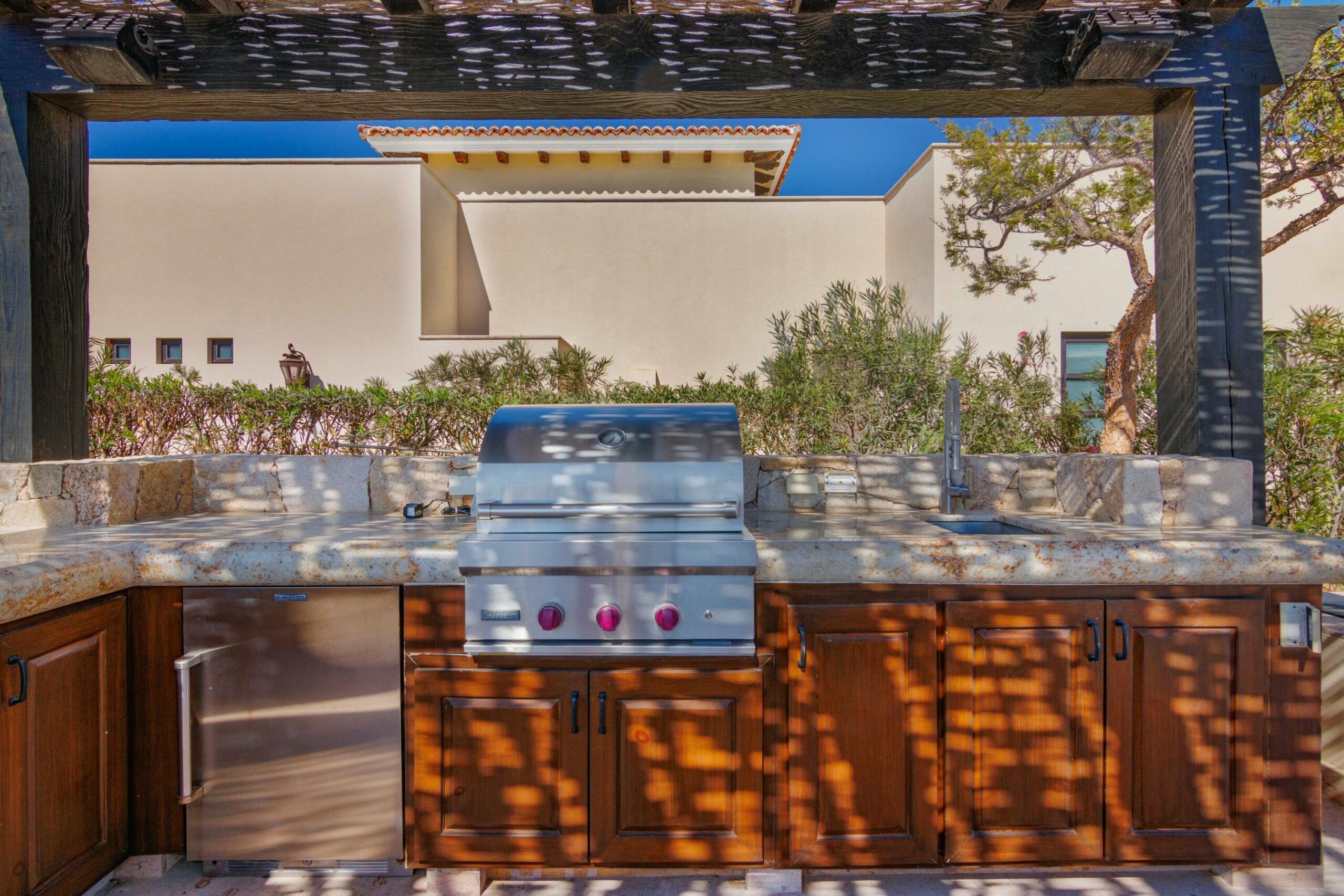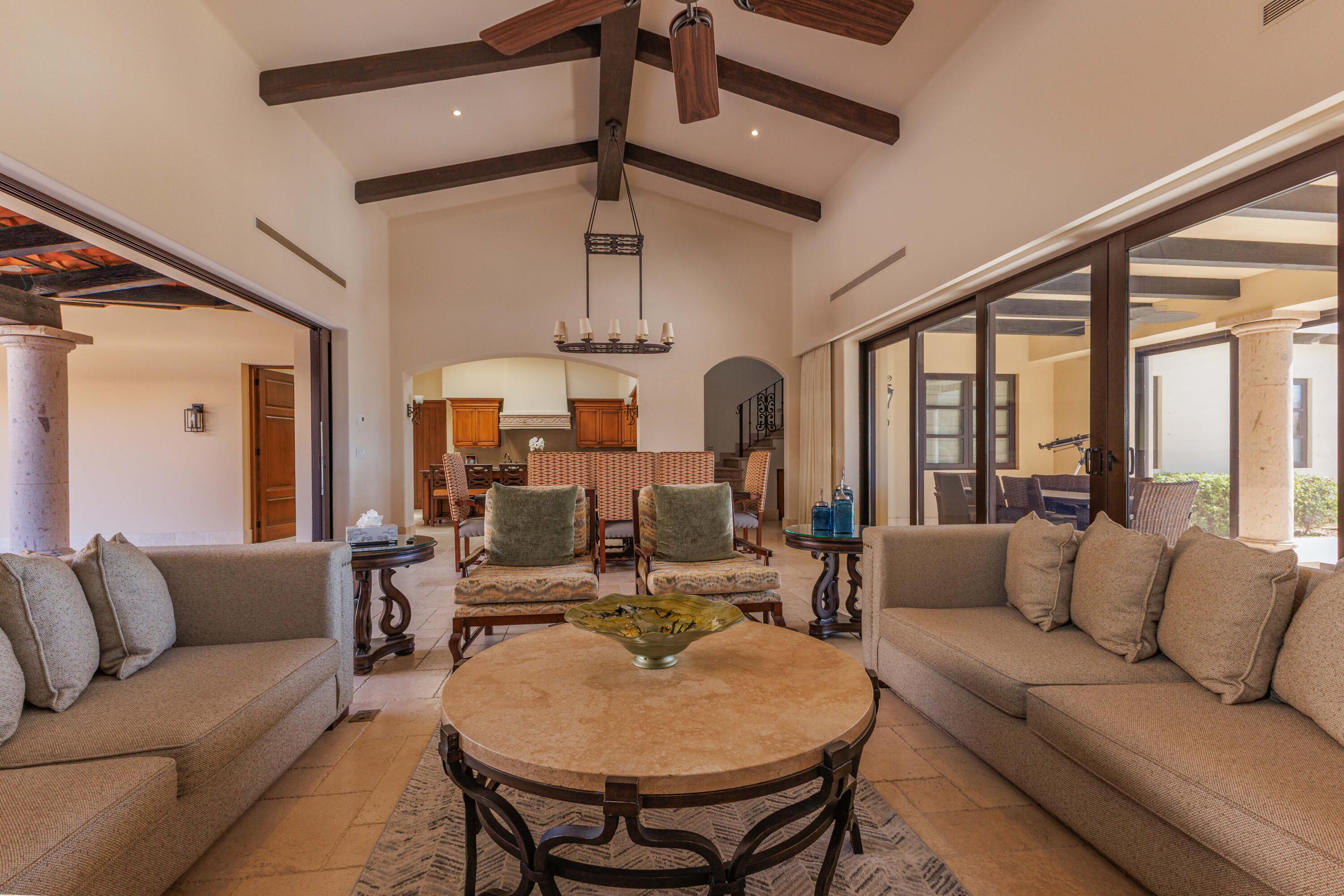 Open to seller financing! Best priced 5 bedroom ocean/golf course view home at Diamante. Freshly updated and perfectly situated along the Dunes Course this villa is Inspired by Mexican haciendas. The villa centers around a dramatic courtyard and features a seamless indoor-outdoor design. Highlights include a great room that opens to a terrace, five bedrooms with en-suite baths, a gourmet kitchen, and a media room which doubles as bedroom with 4 queen bunk beds. Step outside to an infinity pool, palapa bar, fire pit, and outdoor grill, perfect for entertaining. Additional amenities include indoor/outdoor showers, a two-car garage, and a golf cart garage.