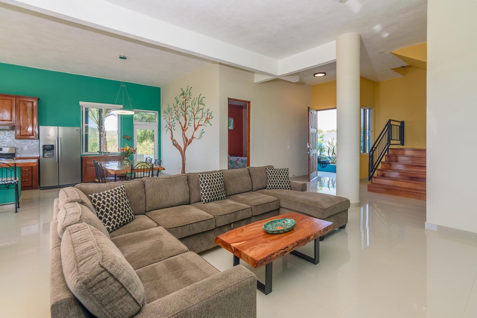 A rare find, this well-built 4-bath, 4-bedroom home in Castillo de Arena on the southern East Cape is located 15-minutes drive south of famed UNESCO World Heritage Site - Cabo Pulmo National Marine Park. The house sits perched above the surrounding desert with 180 degree views of the Sea of Cortez. It is impeccably maintained and built by a master craftsman with 12-foot ceilings and oak finishes throughout, expert plumbing and solar-powered electrical installations, and is landscaped with desert vegetation including mature trees. Located a short drive from vast sandy beaches, the massive sand dune that the subdivision takes its name from and 1 hour from the Los Cabos International Airport. Castillo de Arena has metered water, great WiFi providers, pickleball courts and a pottery studio.