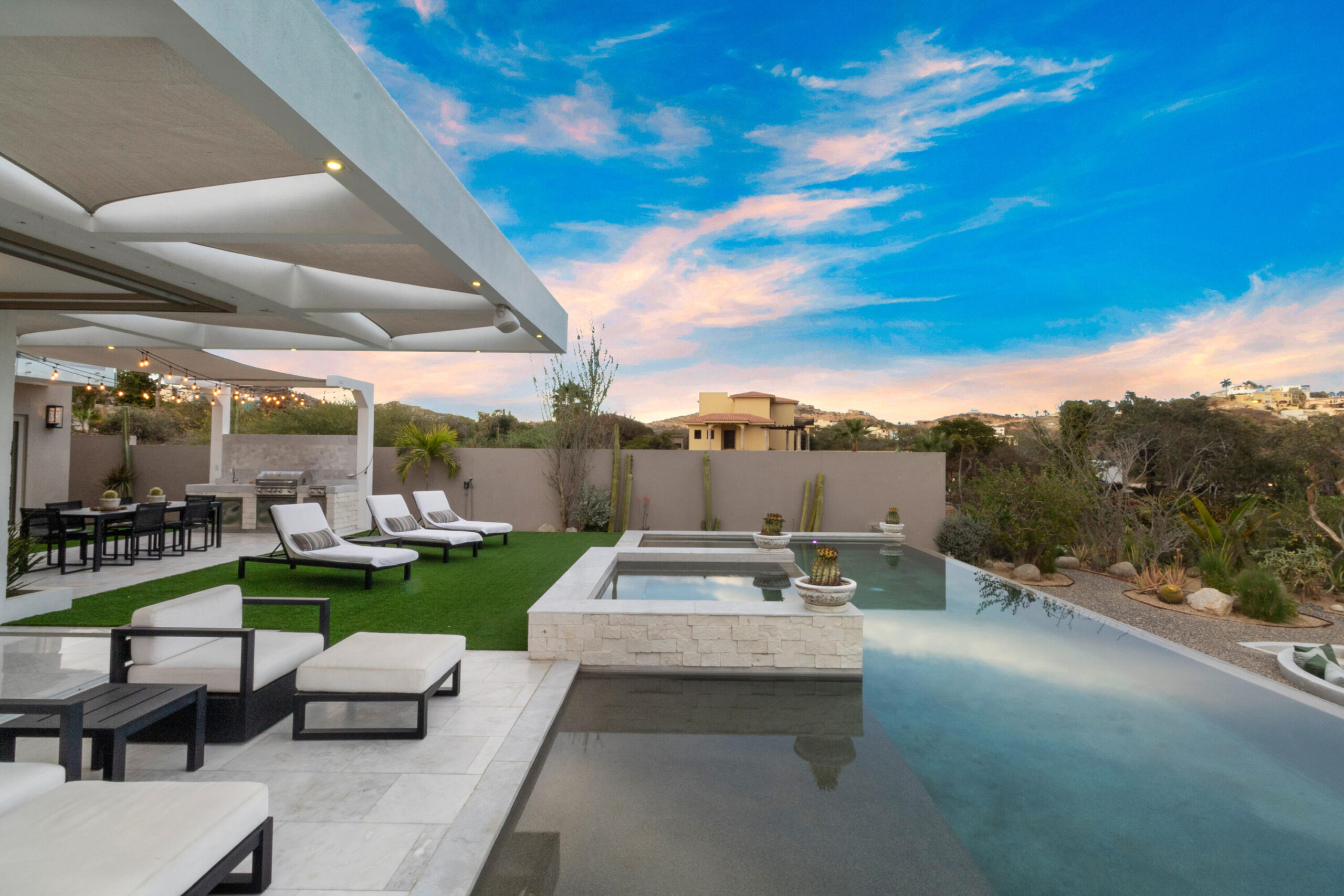Discover modern luxury in this exquisitely designed home, built in 2020 and nestled within the exclusive, beachfront, private gated community of Cabo Colorado in San José del Cabo—just 2 miles from Palmilla Beach. Enjoy the convenience of living just steps from a stunning, sandy private beach within the community. With a striking contemporary aesthetic, this residence features gleaming white marble floors, beautifully appointed marble bathrooms, and captivating ocean views throughout—three of the four bedrooms enjoy these inspiring vistas. The first floor is an entertainer's dream. Its open-concept design seamlessly integrates a gourmet kitchen, dining area, and living room that flows effortlessly into an outdoor paradise. Step outside to your private oasis, complete with a