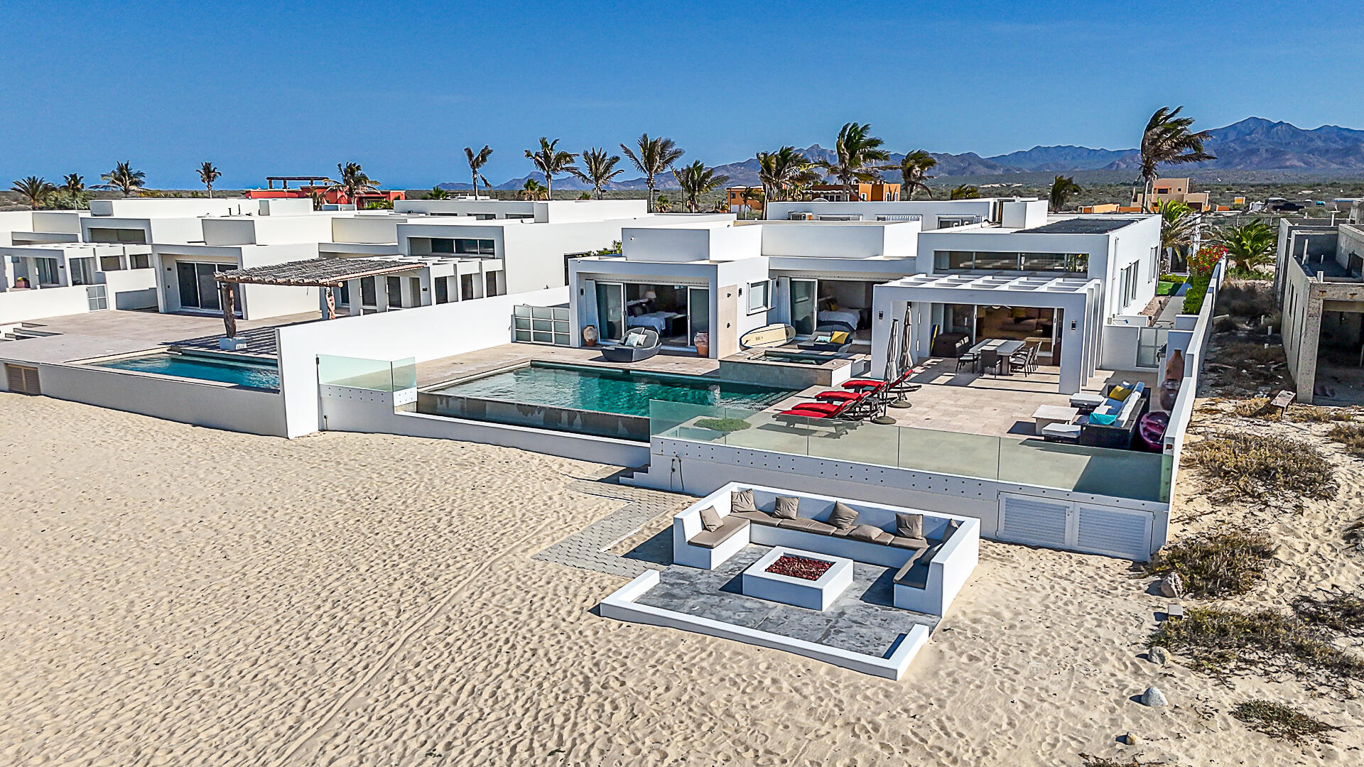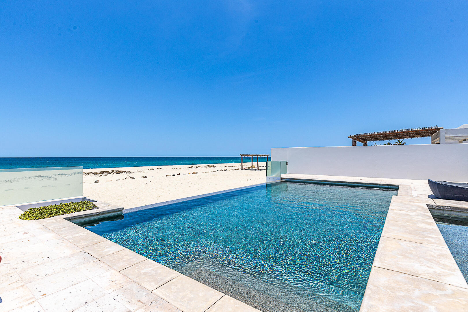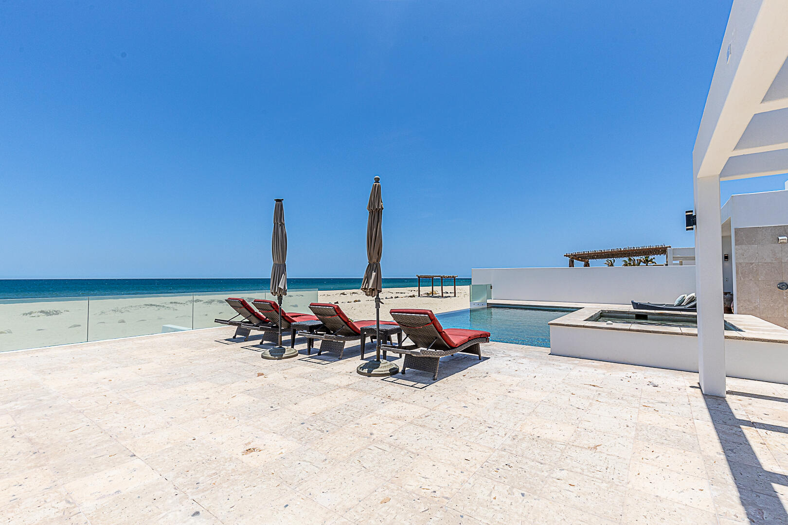 Welcome to Villa Playa Blanca! This is a gorgeous oceanfront very well-maintained, turn-key contemporary home in Lighthouse Point Estates, a gated and guarded beachfront community. This oceanfront home with over 5,800sf features an open concept gourmet kitchen, dining area, and living room, half bath with sweeping ocean views, perfect for entertaining with access to the front patio, saltwater pool and jacuzzi, & the beautiful beach, all designed for entertaining and big families to enjoy year-round! This home features 5 - ensuite bedrooms, a gym for your workouts, and a big 3 door garage for all of your toys! Yes, pamper yourself in this beautiful home while enjoying miles and miles of unspoiled white sand beach and swim in the turquoise waters of the Sea of Cortez! Schedule a tour today