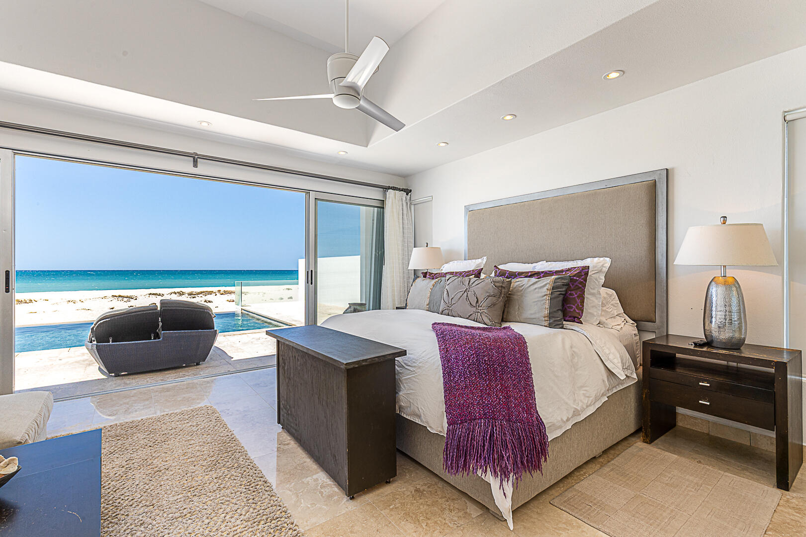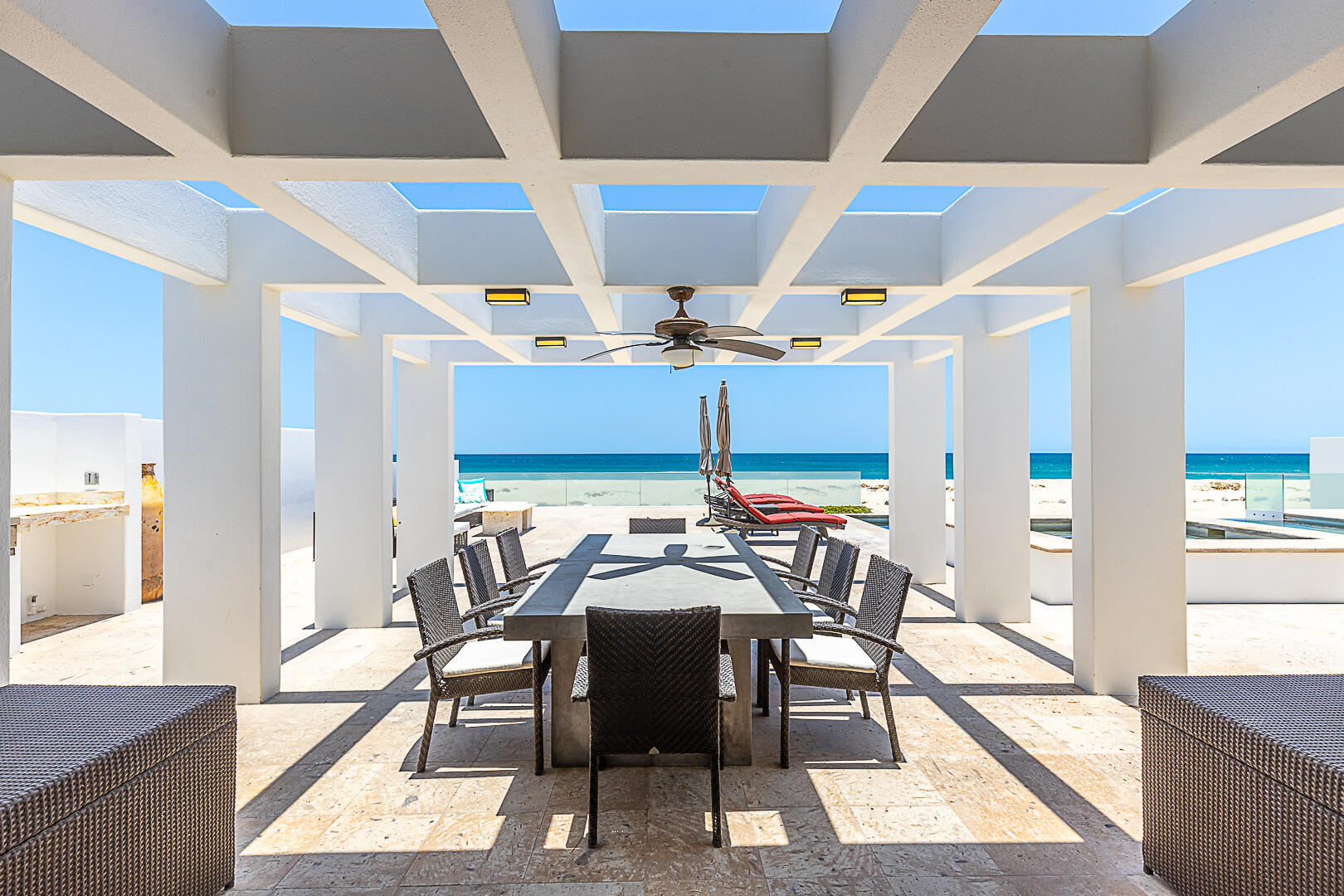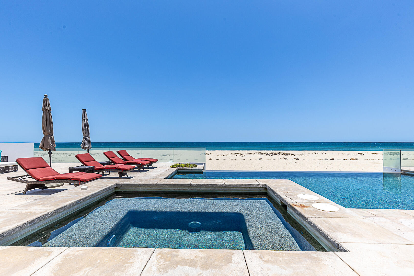 Welcome to Villa Playa Blanca! This is a gorgeous oceanfront very well-maintained, turn-key contemporary home in Lighthouse Point Estates, a gated and guarded beachfront community. This oceanfront home with over 5,800sf features an open concept gourmet kitchen, dining area, and living room, half bath with sweeping ocean views, perfect for entertaining with access to the front patio, saltwater pool and jacuzzi, & the beautiful beach, all designed for entertaining and big families to enjoy year-round! This home features 5 - ensuite bedrooms, a gym for your workouts, and a big 3 door garage for all of your toys! Yes, pamper yourself in this beautiful home while enjoying miles and miles of unspoiled white sand beach and swim in the turquoise waters of the Sea of Cortez! Schedule a tour today