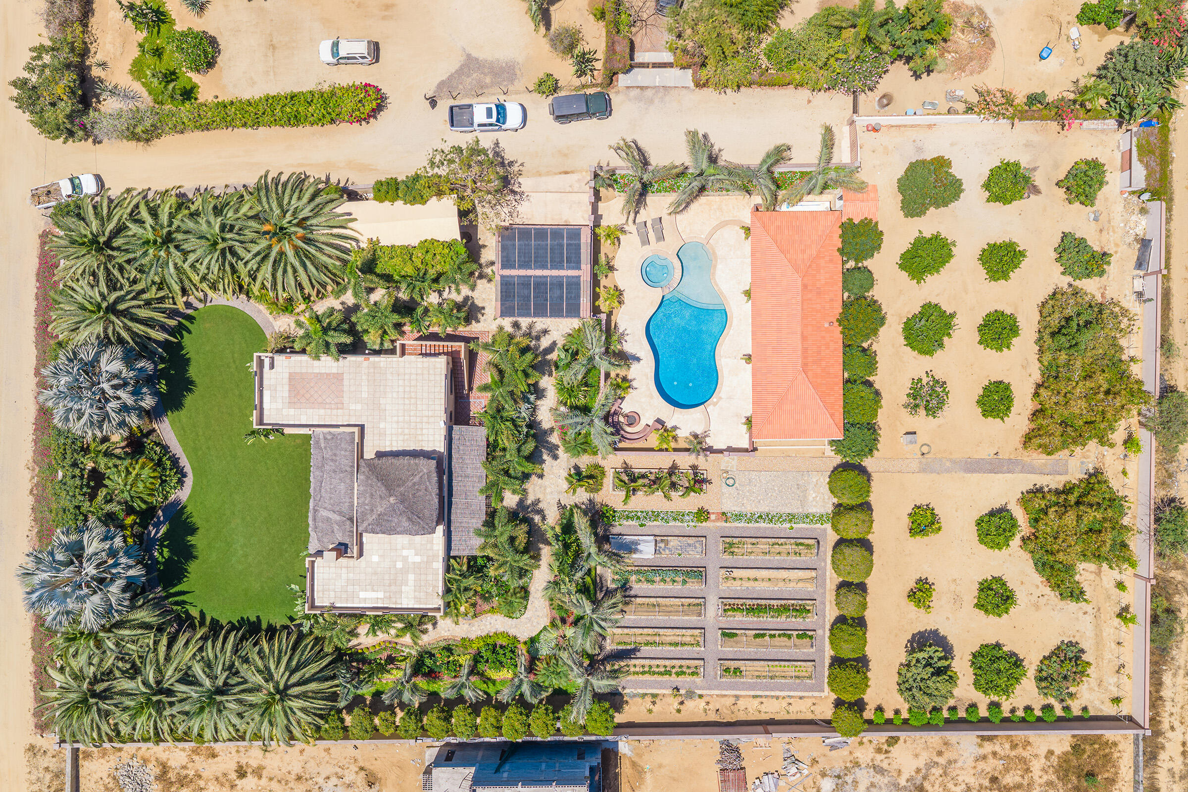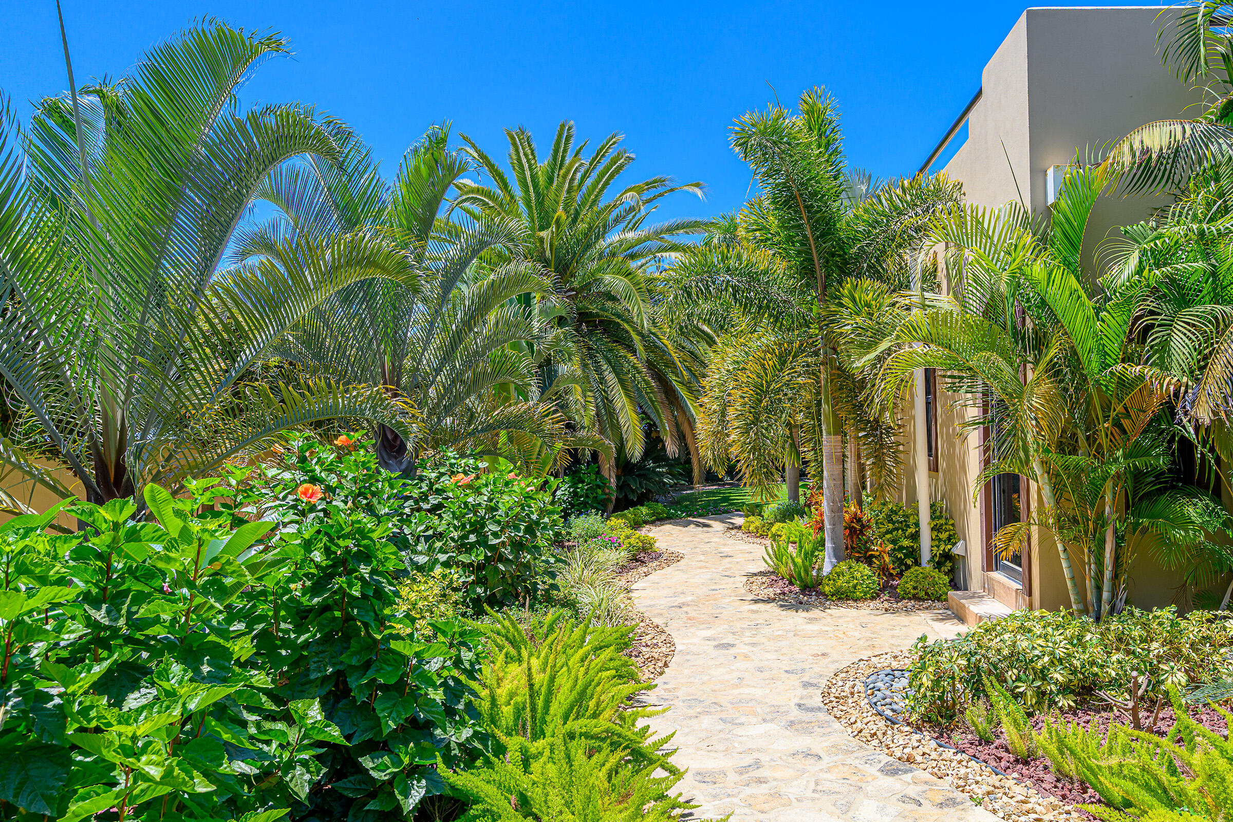 Casa Flora, A Private Garden Oasis, Step into Casa Flora, a serene retreat set within a lush, private garden oasis. The main residence, complete with a spacious covered porch, is beautifully nestled among mature palm trees, vibrant flowering plants, and rich tropical foliage, creating a peaceful and inviting atmosphere. All three bedrooms offer tranquil views of the expansive green lawn, surrounded by flourishing gardens that enhance the home's sense of privacy and connection to nature.