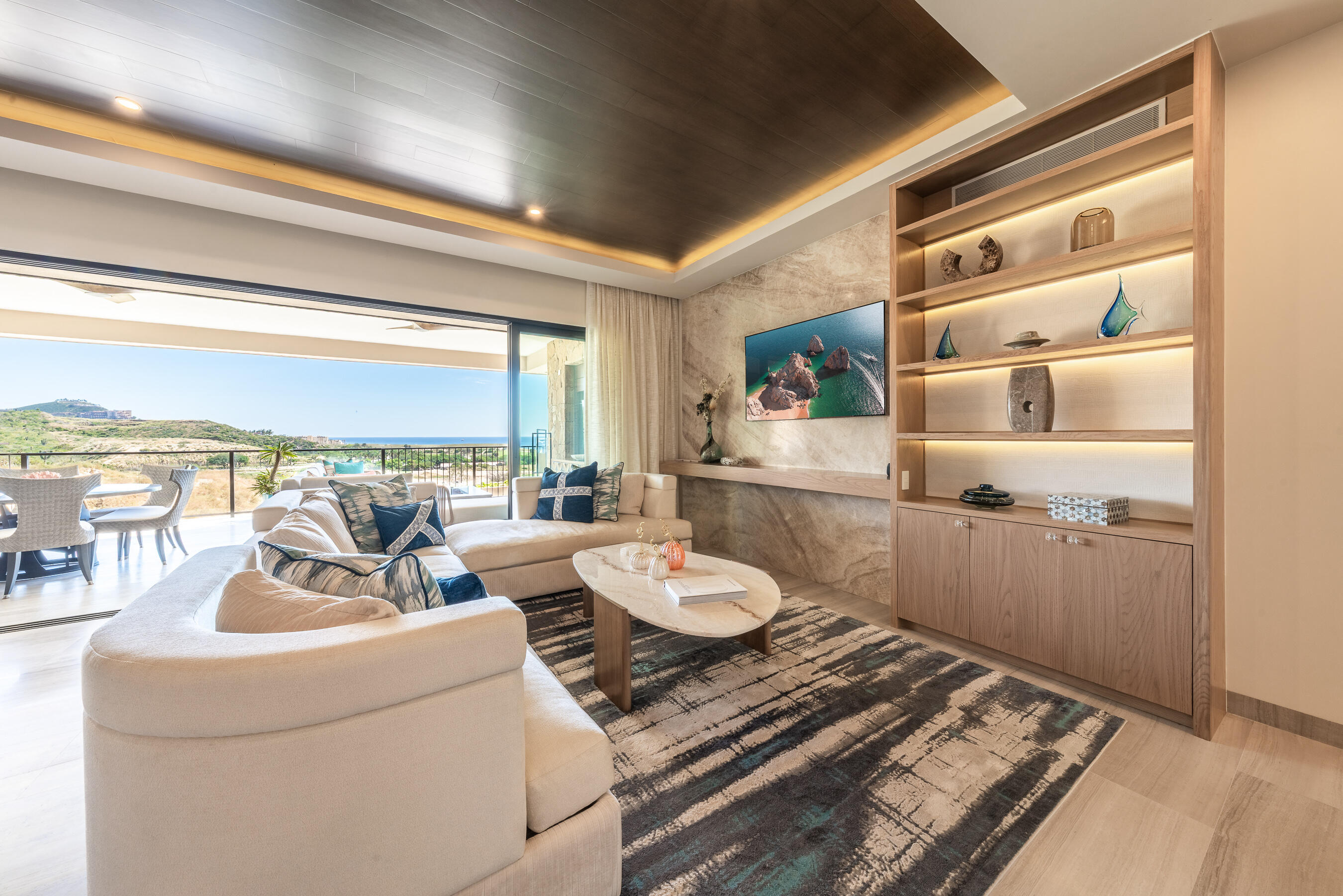 0% Seller financing is available on this amazing second floor 3 bedroom luxury home in the Alvar community in Quivira Los Cabos. With over $400,000 spent on upgrades, furniture and decor, and hurricane protection. Watch the waves crash and whales traverse from your oversized outdoor terrace with a built in BBQ, bar area and fire pit. Alvar has underground parking for 2 cars and 1 outdoor shaded parking spot for your golf cart or off road vehicle. As well, enjoy access to the Quivira Golf Course, Quivira Property Owners Beach Club and multiple Pueblo Bonito Hotel and resort facilities on both Sunset Beach & Medano Beach. - Tennis, Pickleball, and Spas. Alvar is a Luxury Condominium Community adjacent to the brand new St. Regis Hotel and Residences inside the 1850 acre Quivira