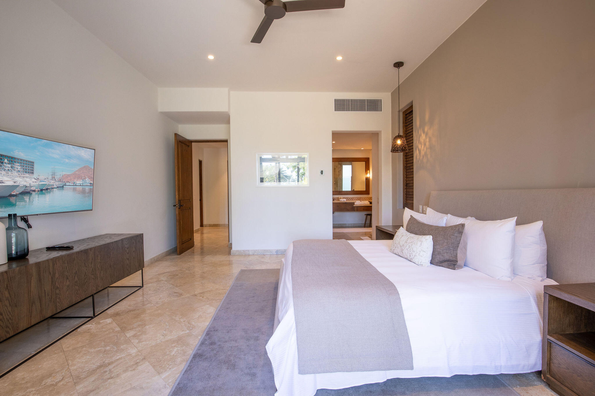 Esperanza 2702 is an Auberge managed branded luxury residence located in the in the heart of the Esperanza Auberge Private Residences at the Esperanza resort. This stunning four-bedroom, four-and-a-half-bath ground-floor residence offers an unparalleled location just steps from the Private Residences pool, elevating the signature Esperanza experience. Contemporary and spacious, the condo features high-quality interior furnishings, a fully equipped gourmet kitchen with premium appliances, and an expansive private terrace. Step outside to your own private garden oasis, complete with a fire pit and jacuzzi and built in BBQ. The location of the home is perfect with direct access to the pool, on-site restaurant, and other exclusive amenities.