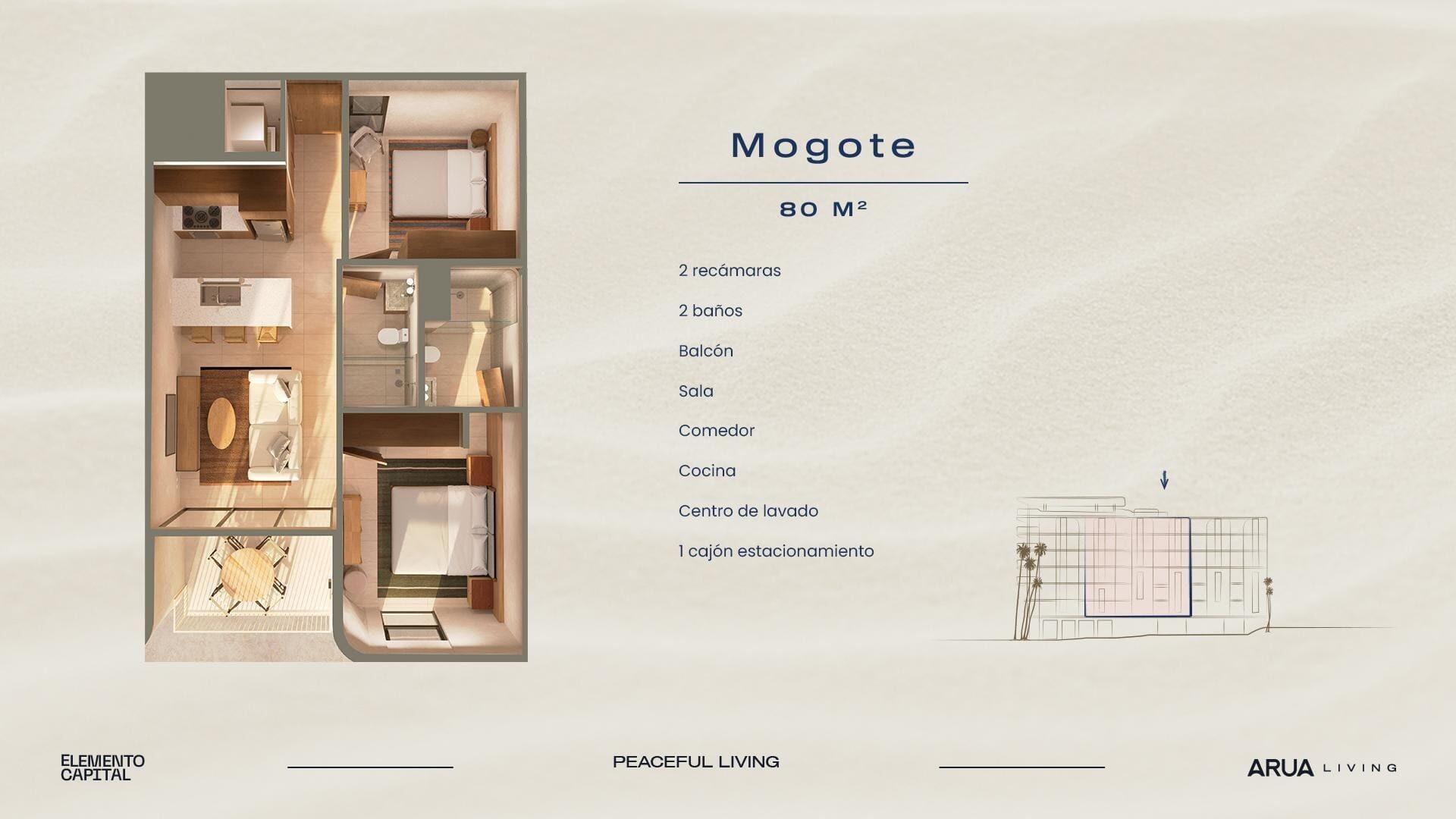 Discover Arua Living! A new pre-construction condos located in one of the fastest-growing and most valuable areas of La Paz, Baja California Sur. Just six blocks from the Malecón and minutes from the most renowned beaches, this project combines a modern lifestyle with the tranquility and security of the city. Arua offers three condominium models ranging from 80 m² to 120 m², with functional layouts and contemporary finishes, ideal for both living and investing. Open floor plan living and dining area • Laundry room • Private balcony. Development amenities: • Infinity pool with lounge area • Rooftop terrace with panoramic views and BBQ area • Gym • Coworking space (work area with internet and desks) Price set in Pesos $5,140,835 MXN