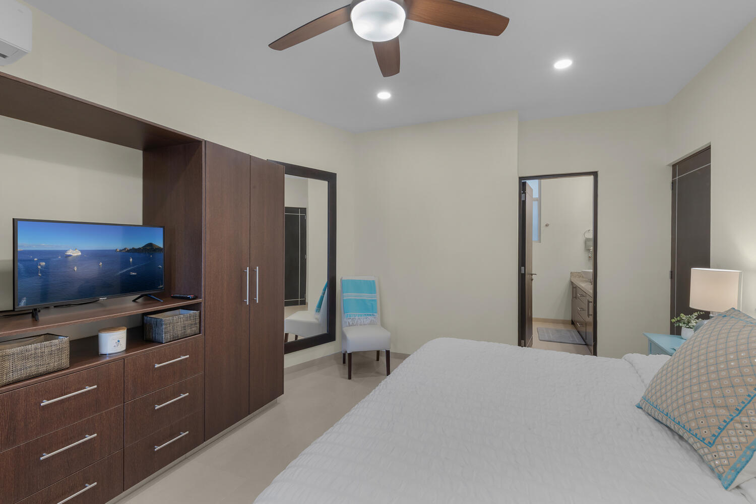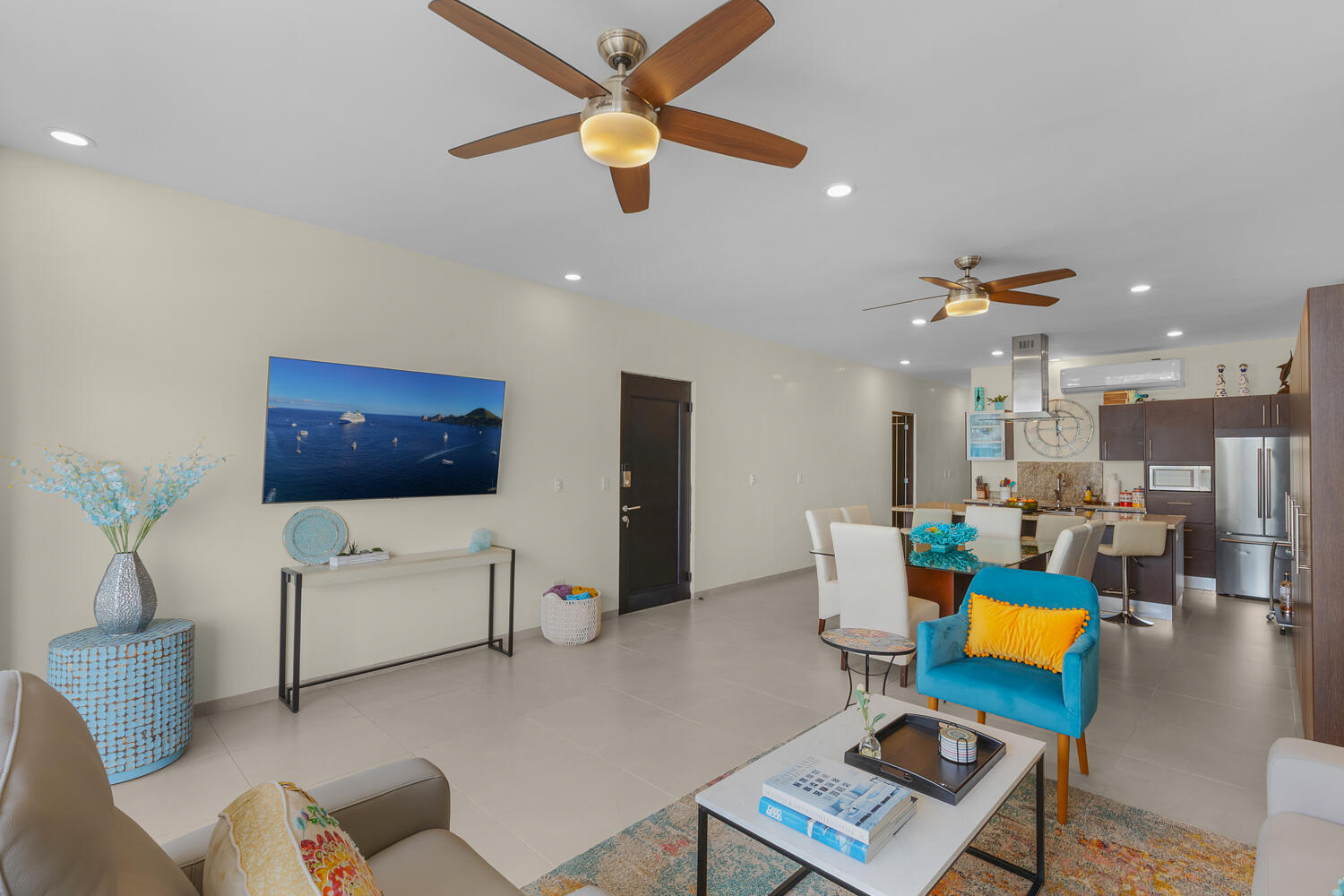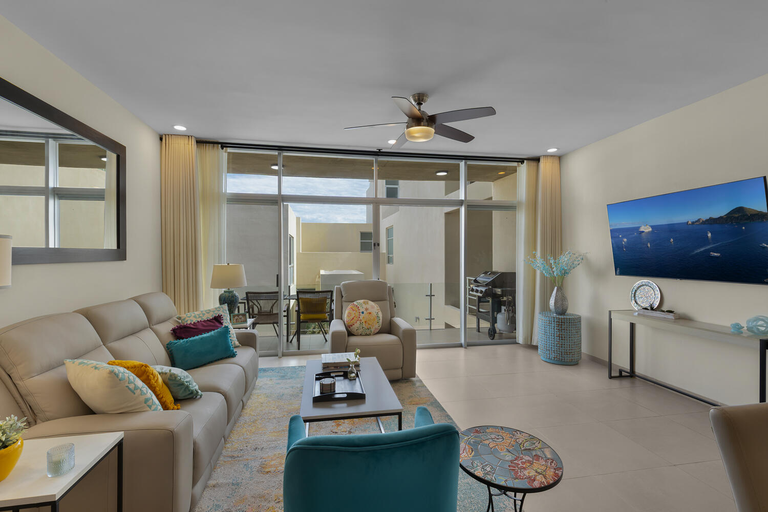 Discover one of the best-priced condominiums located within the prestigious gated community of Pedregal. This single-level residence offers a highly desirable open concept layout, almost 2,000 Sq Ft, including three large bedrooms and three large newly renovated baths with walk-in showers. Two of the bedrooms feature spacious furnished patios while the open living area boasts a furnished patio with gas grill, ready for entertaining. This stunning Blue Bay Plus condominium is also an excellent rental opportunity. Ideally situated within walking distance to downtown Cabo San Lucas, the marina, and the beach, this residence combines luxury, comfort, and convenience. The condo has been redesigned and beautifully furnished,