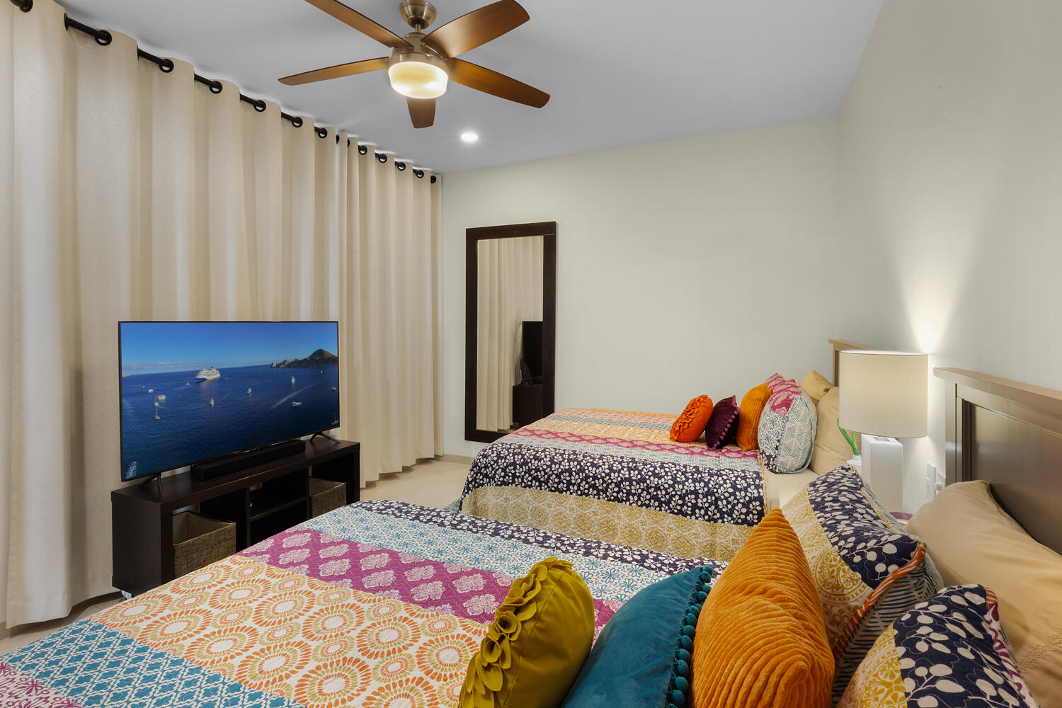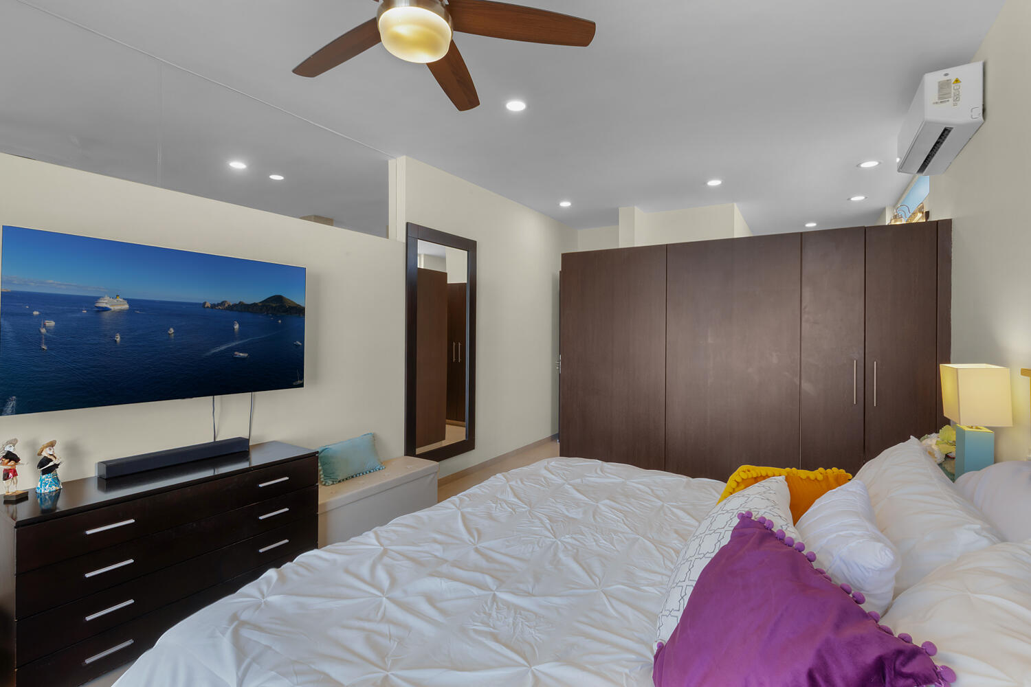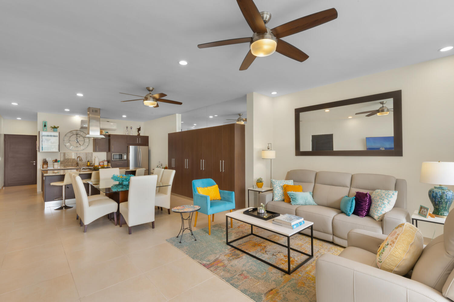 Discover one of the best-priced condominiums located within the prestigious gated community of Pedregal. This single-level residence offers a highly desirable open concept layout, almost 2,000 Sq Ft, including three large bedrooms and three large newly renovated baths with walk-in showers. Two of the bedrooms feature spacious furnished patios while the open living area boasts a furnished patio with gas grill, ready for entertaining. This stunning Blue Bay Plus condominium is also an excellent rental opportunity. Ideally situated within walking distance to downtown Cabo San Lucas, the marina, and the beach, this residence combines luxury, comfort, and convenience. The condo has been redesigned and beautifully furnished,