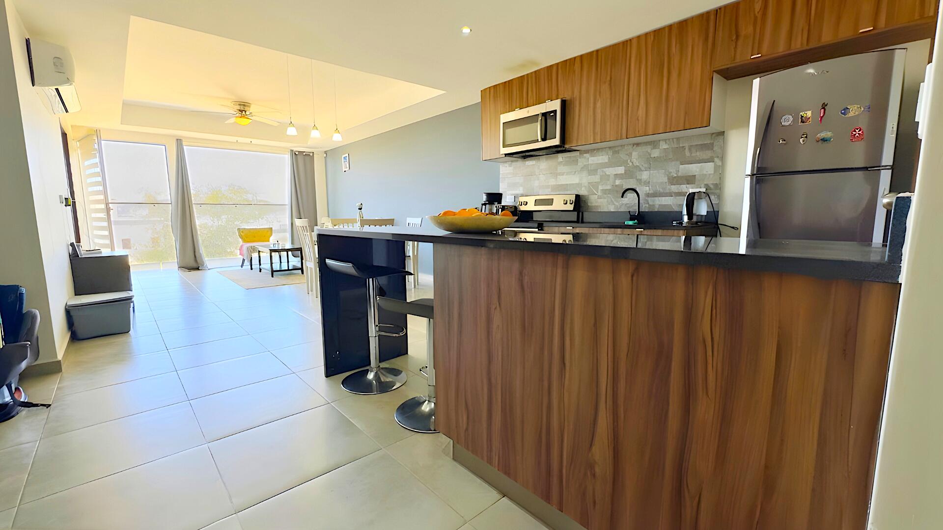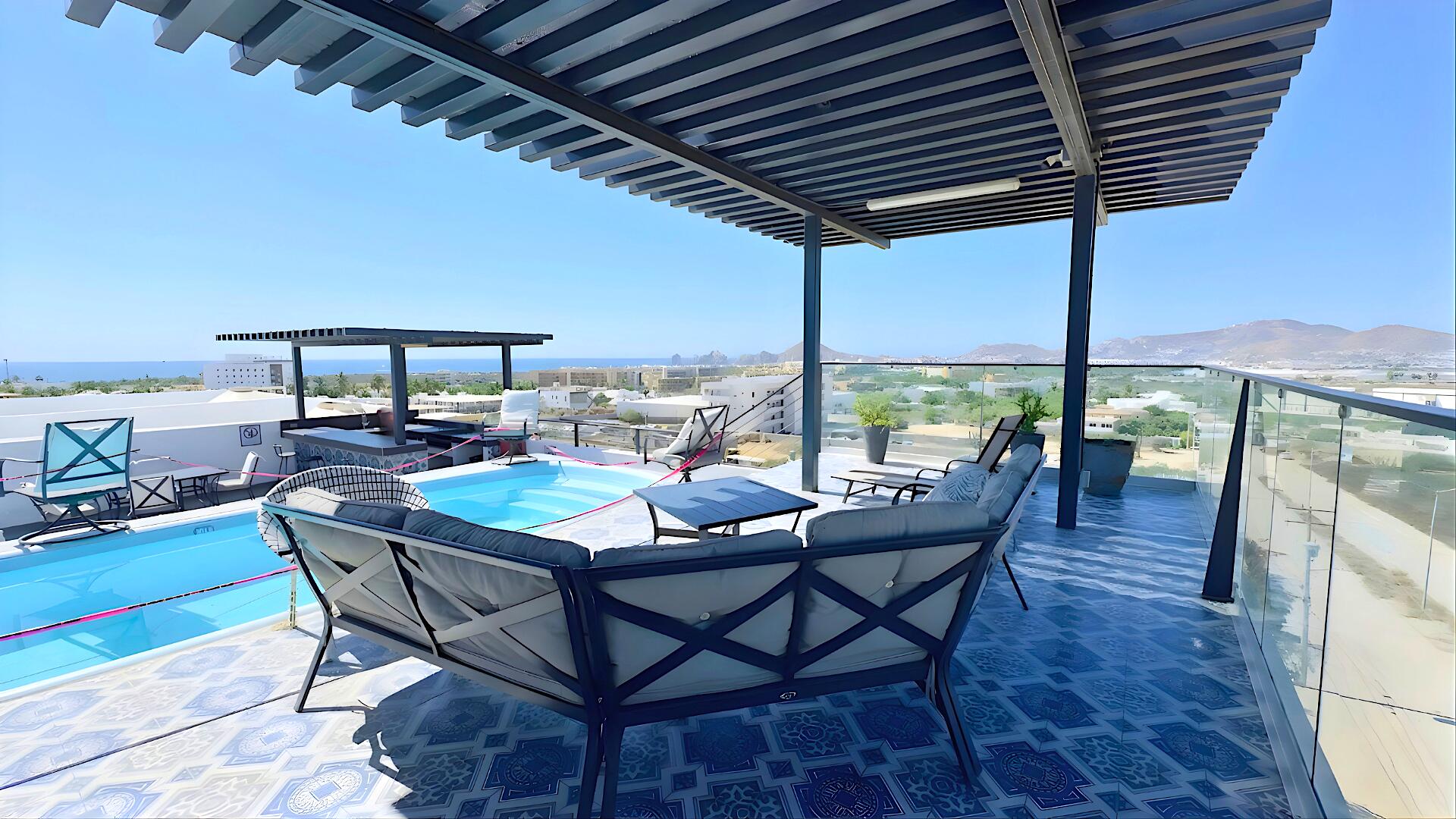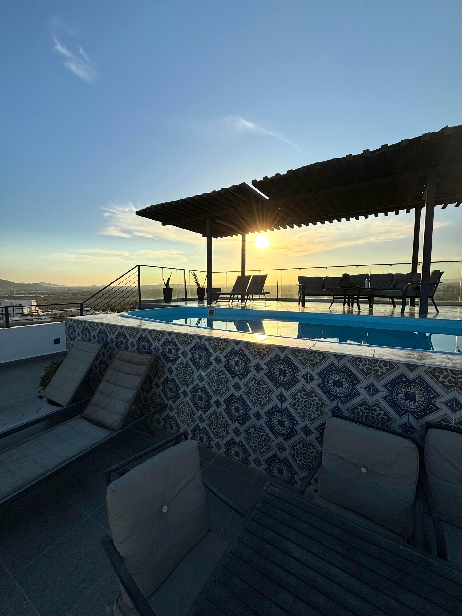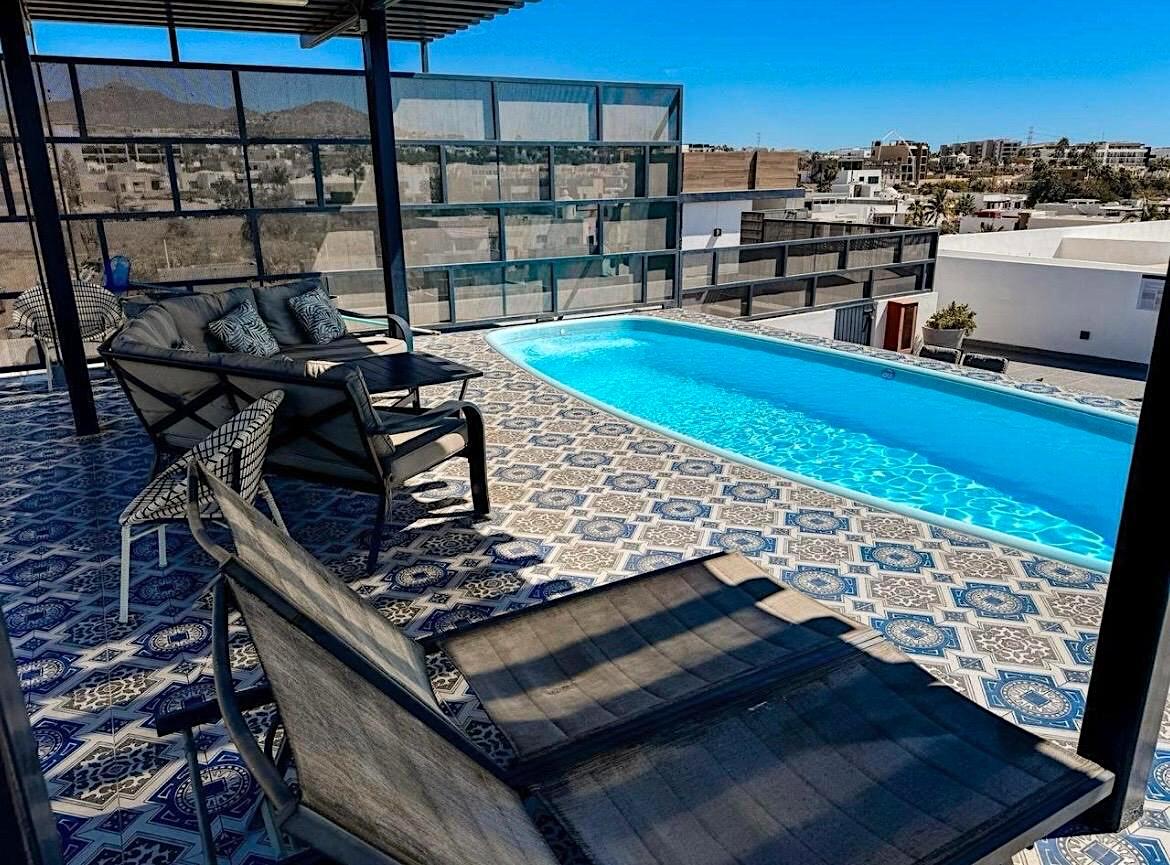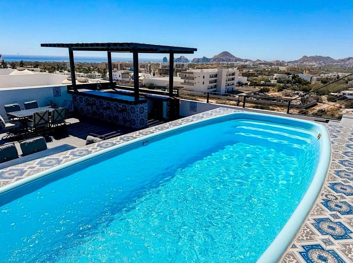Experience the perfect blend of luxury, comfort, and prime location in this beautifully designed 2-bedroom, 2-bathroom condo, ideally situated in the vibrant heart of Cabo San Lucas--just a few blocks from the Tourist Corridor and only 10 minutes from downtown. This spacious and stylish home-away-from-home features 2 inviting bedrooms, a bright open-concept living area with scenic views, and a fully equipped kitchen. Enjoy the convenience of modern amenities, and exclusive access to a stunning rooftop pool with panoramic ocean views--including the iconic Arch of Cabo San Lucas. Perfectly positioned near the best of Cabo, you'll have easy access to world-class restaurants, lively bars, unforgettable nightlife, and some of the most beautiful beaches in the area, also Costco, Fresko, Walmart.