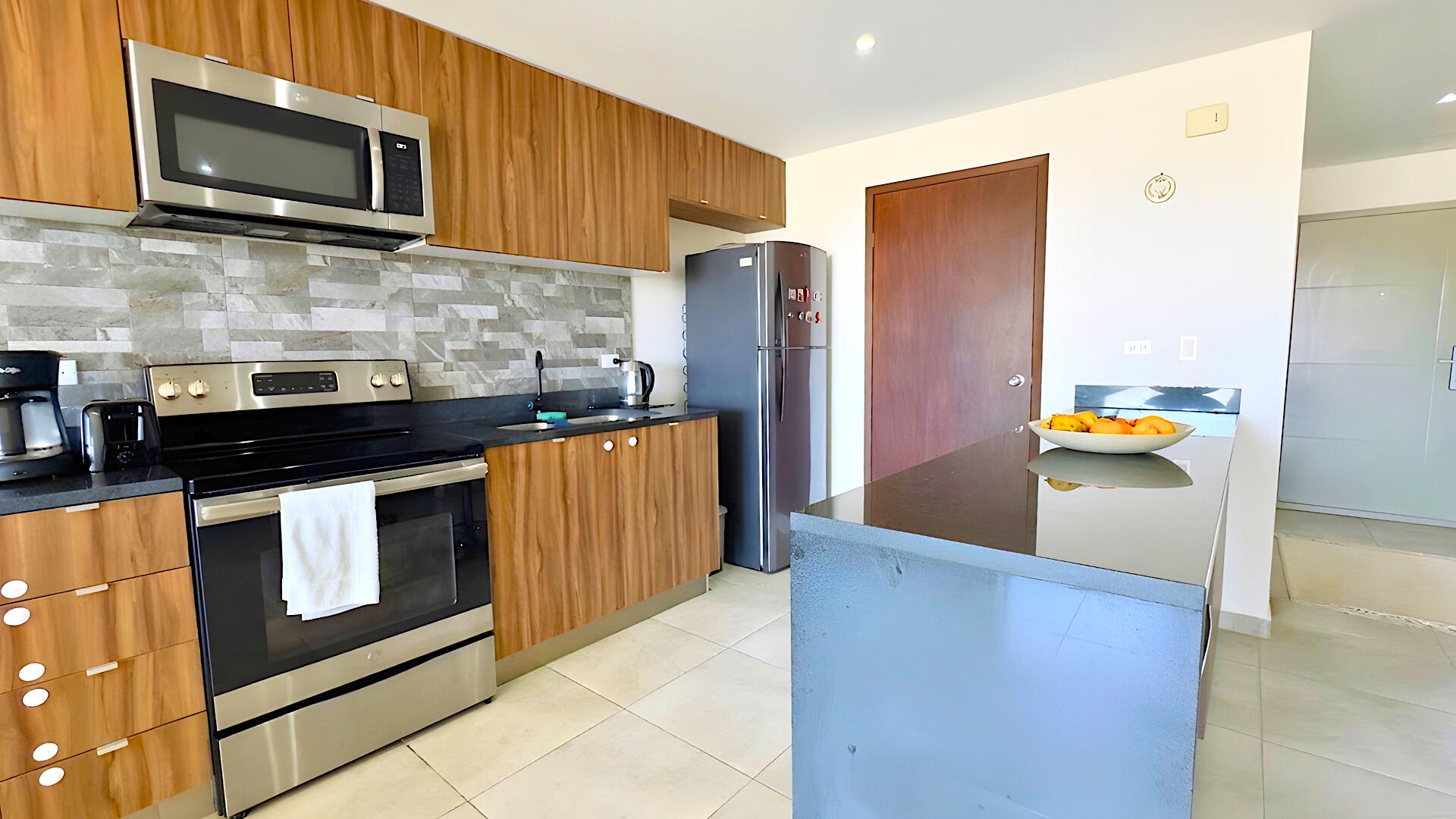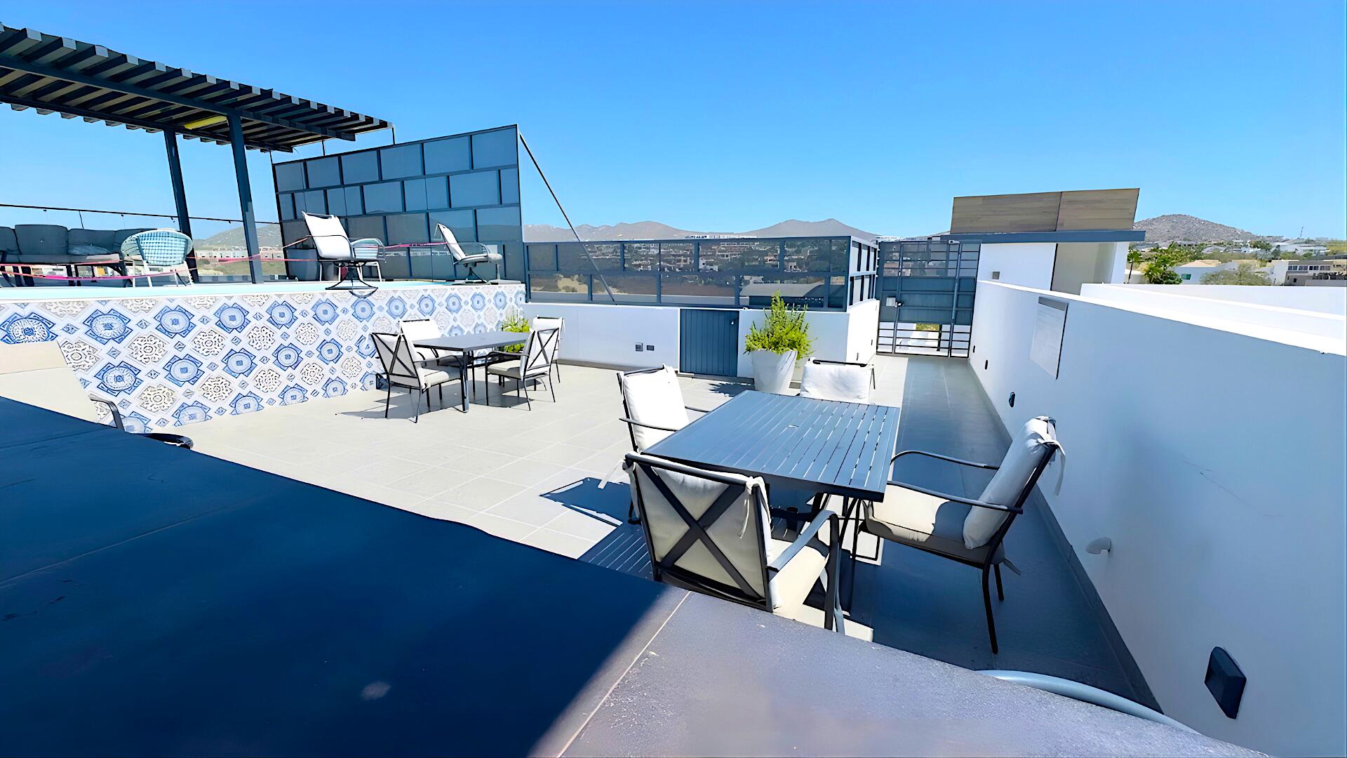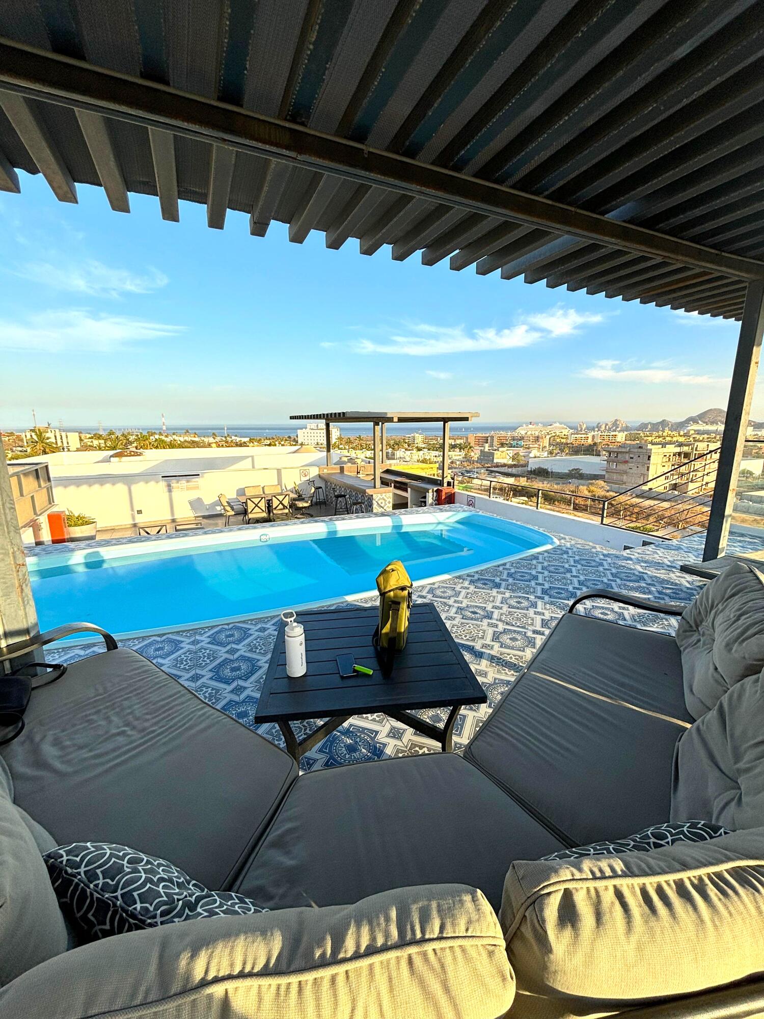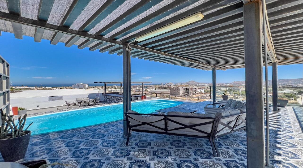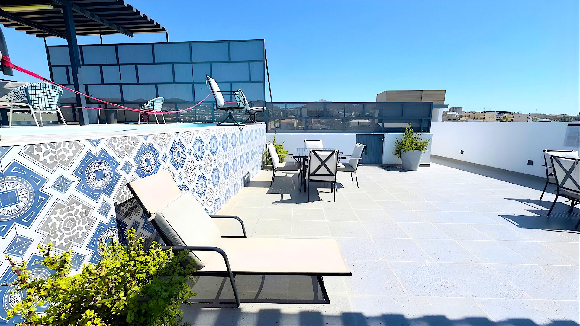 Experience the perfect blend of luxury, comfort, and prime location in this beautifully designed 2-bedroom, 2-bathroom condo, ideally situated in the vibrant heart of Cabo San Lucas--just a few blocks from the Tourist Corridor and only 10 minutes from downtown. This spacious and stylish home-away-from-home features 2 inviting bedrooms, a bright open-concept living area with scenic views, and a fully equipped kitchen. Enjoy the convenience of modern amenities, and exclusive access to a stunning rooftop pool with panoramic ocean views--including the iconic Arch of Cabo San Lucas. Perfectly positioned near the best of Cabo, you'll have easy access to world-class restaurants, lively bars, unforgettable nightlife, and some of the most beautiful beaches in the area, also Costco, Fresko, Walmart.