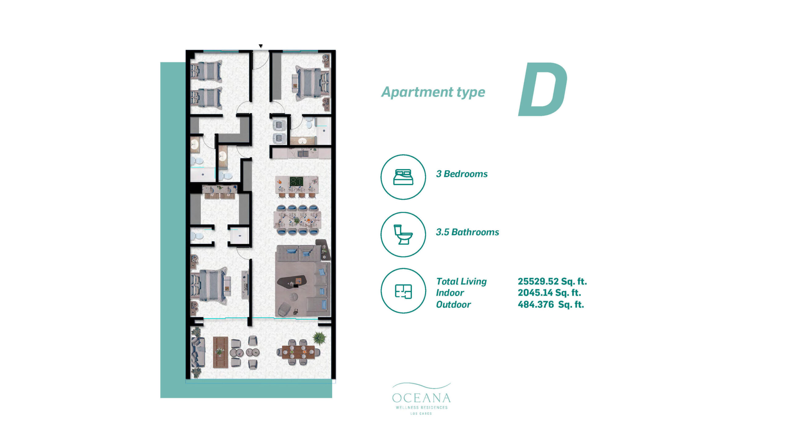 Oceana Wellness Residences: Where Luxury Meets Wellness and Sustainability. Step into a life where luxury seamlessly blends with eco-conscious living in one of Los Cabos' only five-star boutique residential communities. Oceana Wellness Residences presents 100 stunning, next-level luxury condos, offering breathtaking ocean, city, and iconic arch views. A spacious and elegantly designed 3-bedroom, 3.5-bathroom condo, boasting a wide-open 410 sq. ft. terrace that enhances the indoor-outdoor living experience. This residence is perfect for those seeking an upscale, wellness-focused lifestyle. The developer is offering seller financing with the following terms: - 50% down payment - 0 to 5 years: 6.5% interest rate - 5 to 9 years: 7% interest rate