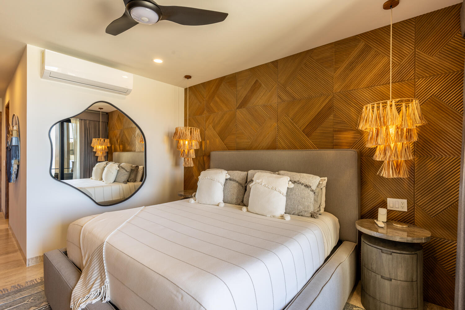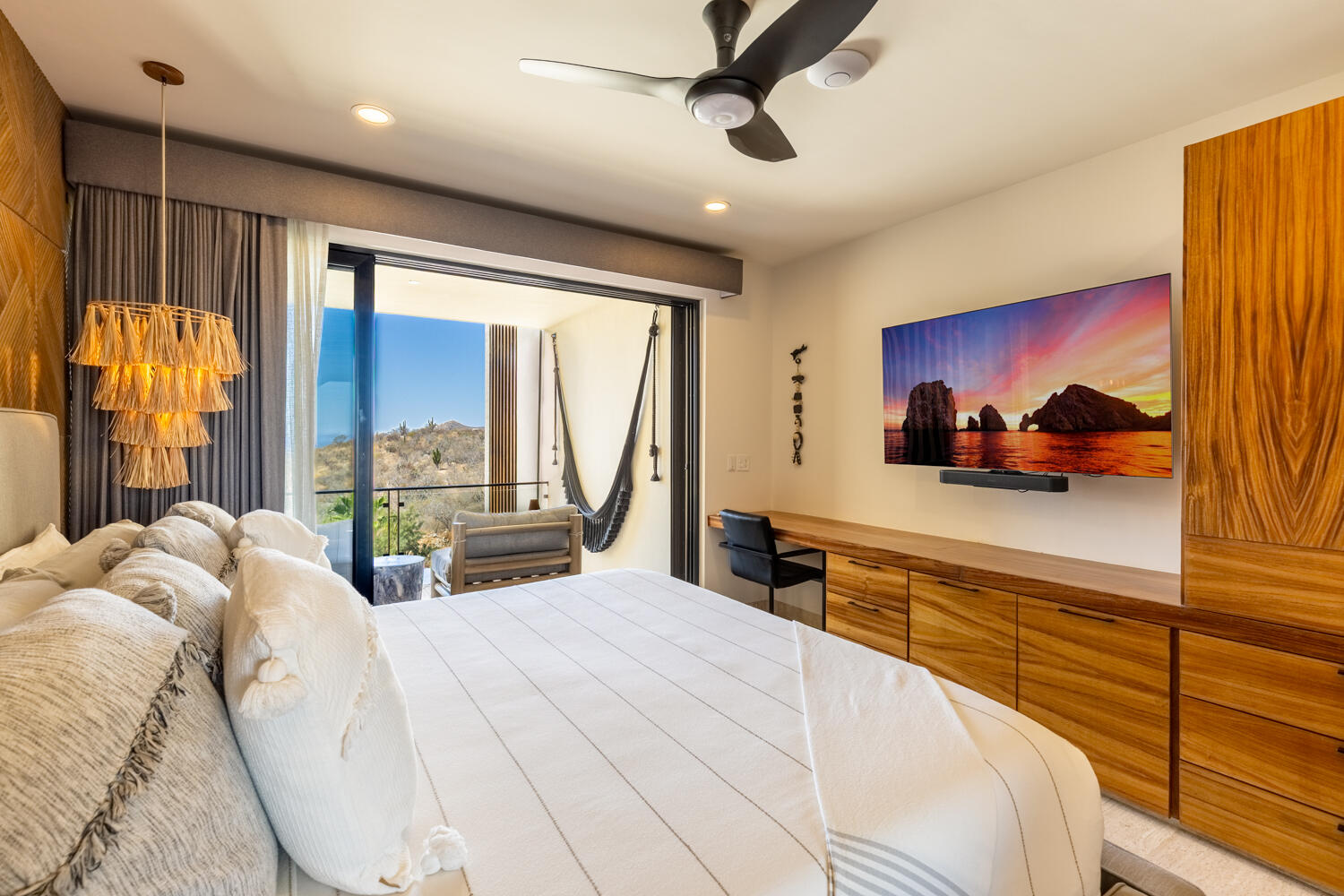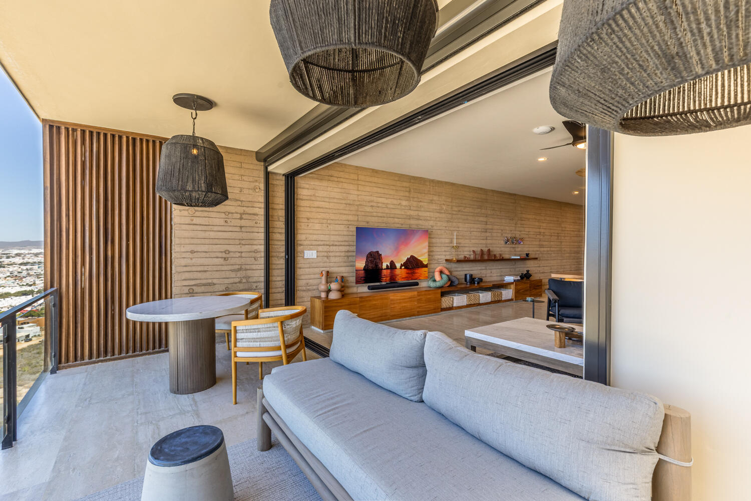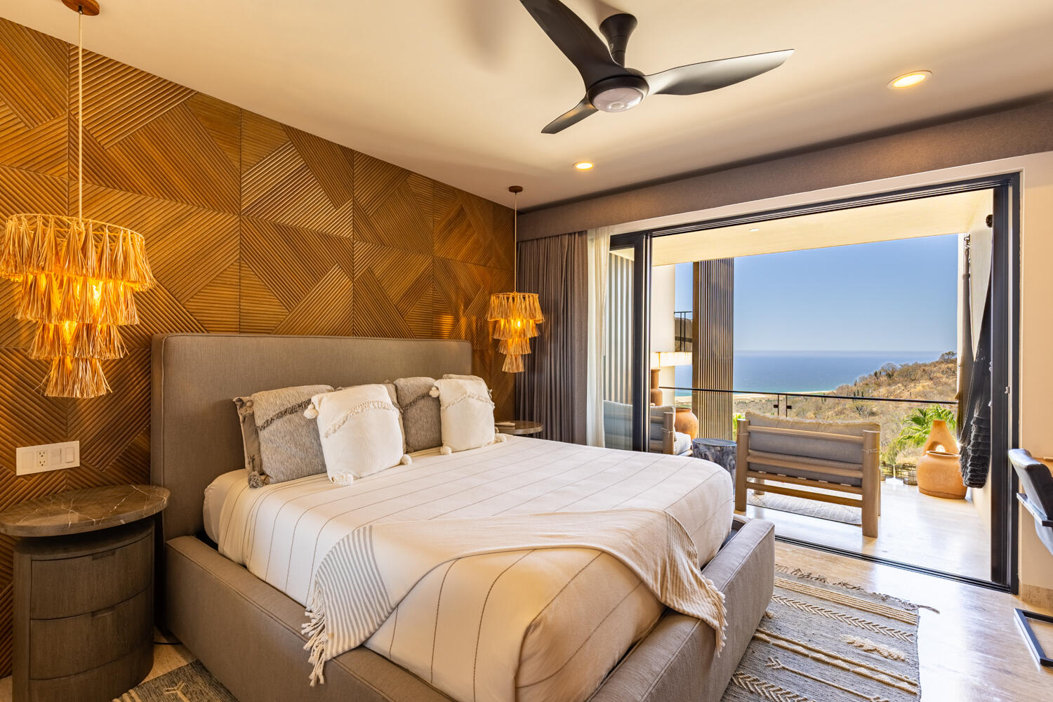 Experience elevated coastal living in this beautifully upgraded 2-bedroom, 2-bath condo overlooking the Pacific and Quivira. Ideally located at the gate to Quivira Resort, this turnkey residence offers access to world-class amenities while maintaining privacy and tranquility. With over $180,000 in upgrades, it features refined interiors, parota wood cabinetry, premium appliances, and seamless indoor-outdoor living framed by breathtaking sunset views. Thoughtful enhancements include commercial-grade Wi-Fi, automated hurricane screens, spa-inspired bathrooms, a titled 2-car tandem garage, and private storage. Residents enjoy a heated infinity pool, Jacuzzi, gym, fire pit and BBQ terrace - plus authorized access to Quivira and strong rental potential in one of Cabo's most desirable enclaves.