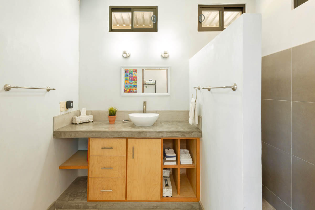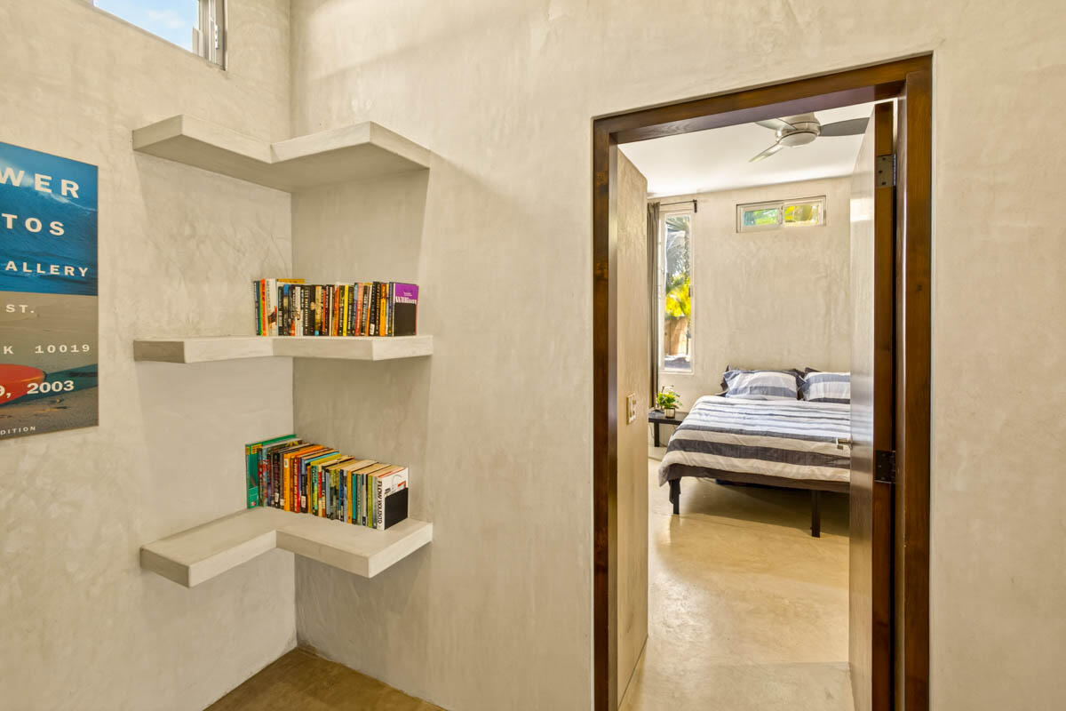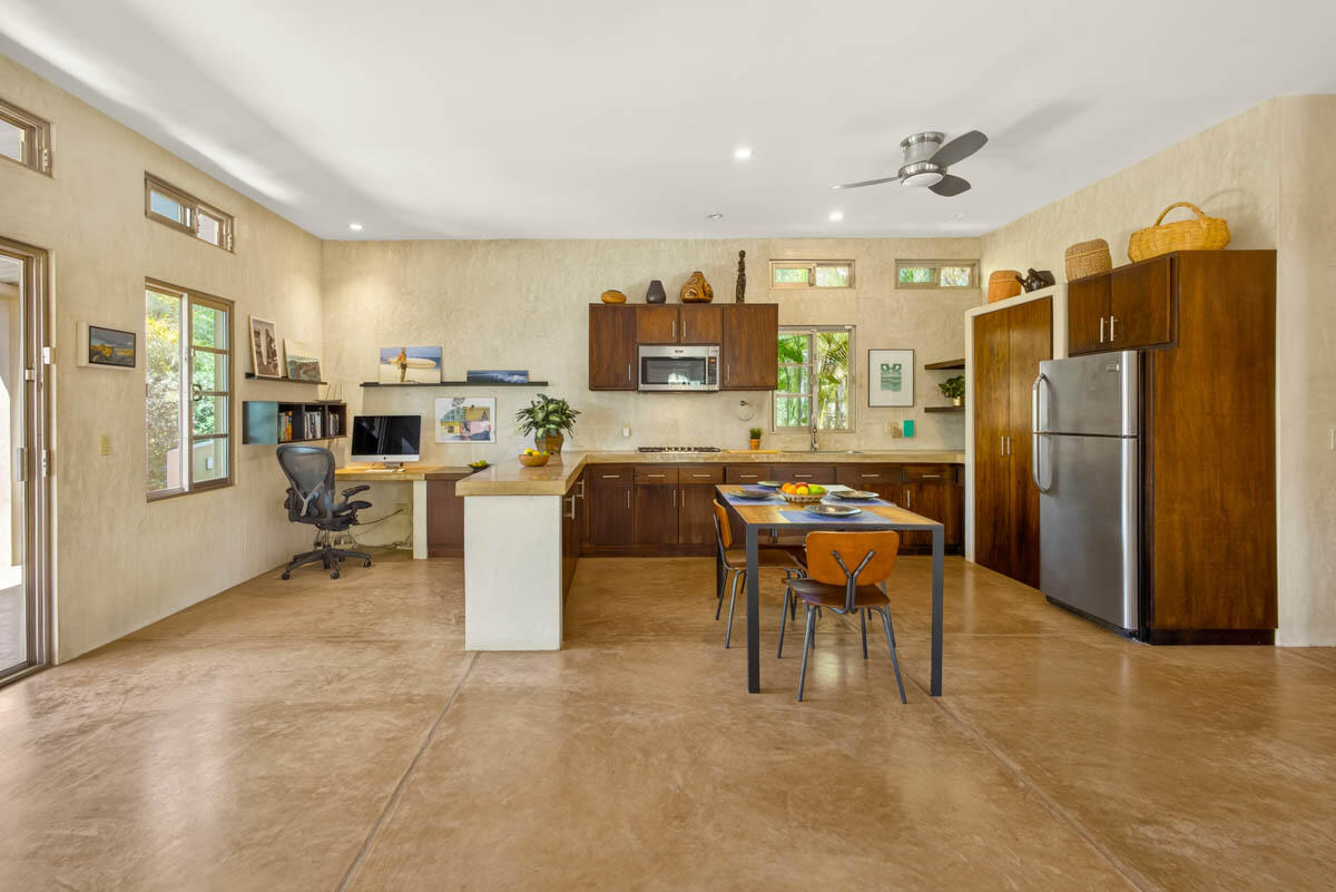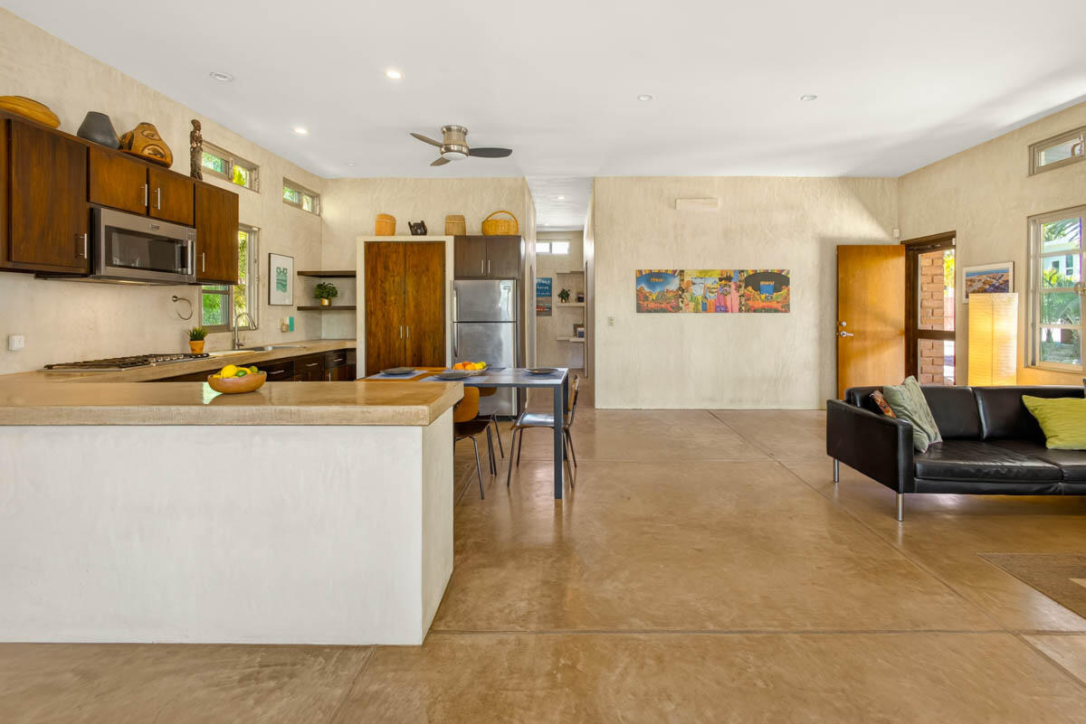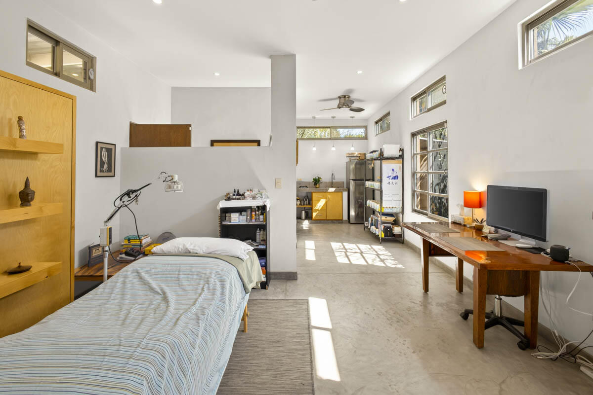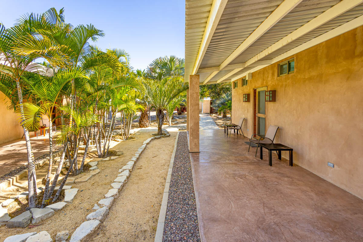 Casa Almar your Zen style retreat ideally located just north of downtown Todos Santos towards the end of Camino del Pacifico. This exceptional location offers a unique blend of calm, tranquility and serenity allowing to create your own inner oasis, making it an ideal sanctuary for those seeking both relaxation and natural beauty. Nestled in a private enclave shared with two other homes in the highly sought-after area of La Cachora north. Casa Almar offers a secure environment, fenced for small pets and crafted, for indoor outdoor living among ush royal palm gardens. The ¼ acre has four distinct areas: main house and rooftop for second story, separate studio apartment, garage with storage and shaded parking for two SUV's. The studio is the ideal work, creative space,