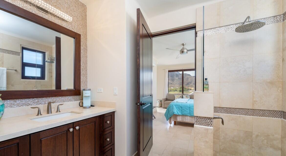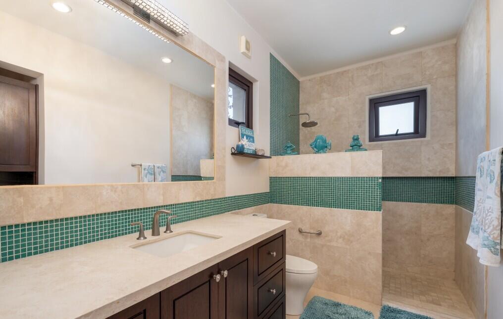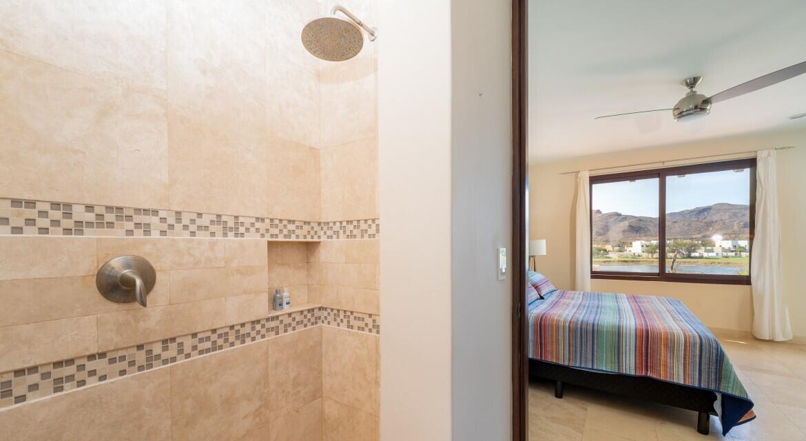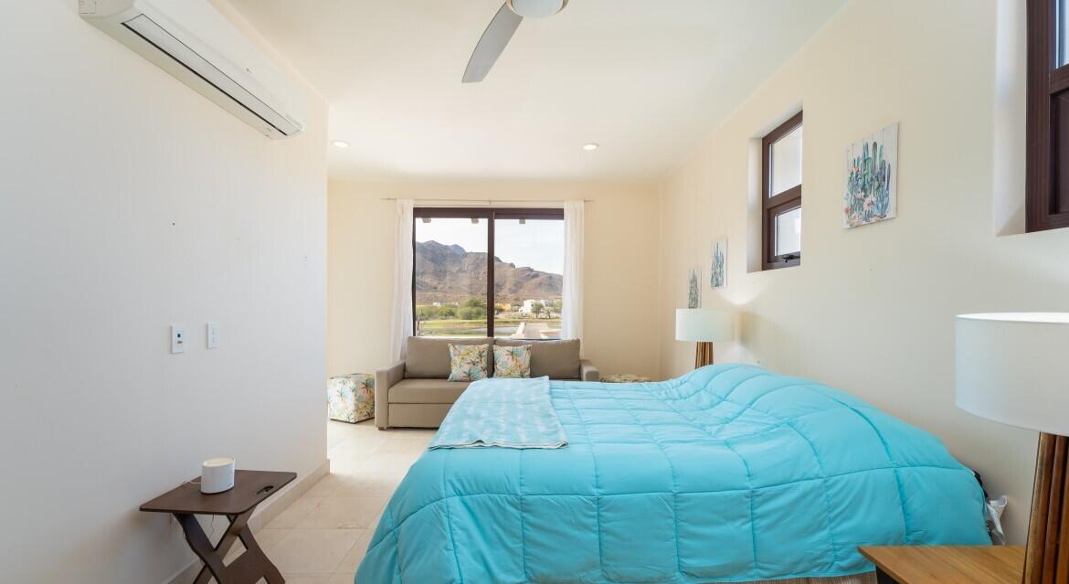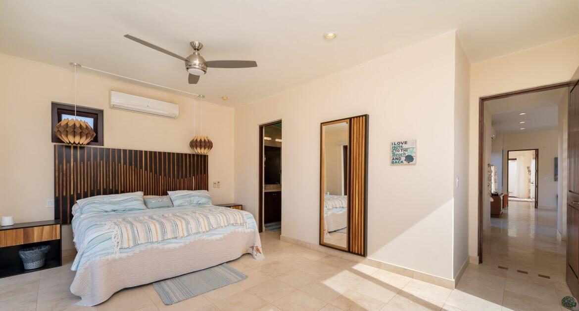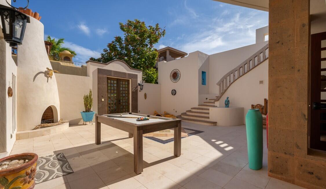 Nestled on the scenic 10th hole of the Loreto Bay Golf Course, this meticulously crafted 4-bedroom, 6-bathroom custom home offers the perfect blend of luxury, comfort, and breathtaking views. From the moment you step into the expansive entryway courtyard, you'll be captivated by the home's open, airy design and seamless indoor-outdoor flow. The heart of this home is its spacious living area, which features a bright and welcoming layout with easy access to both the master suite and a guest room, ensuring privacy and convenience without needing to step outside. Adjacent to the living space, a charming exterior courtyard with a tranquil water fountain offers a peaceful retreat for relaxation or entertainment.
