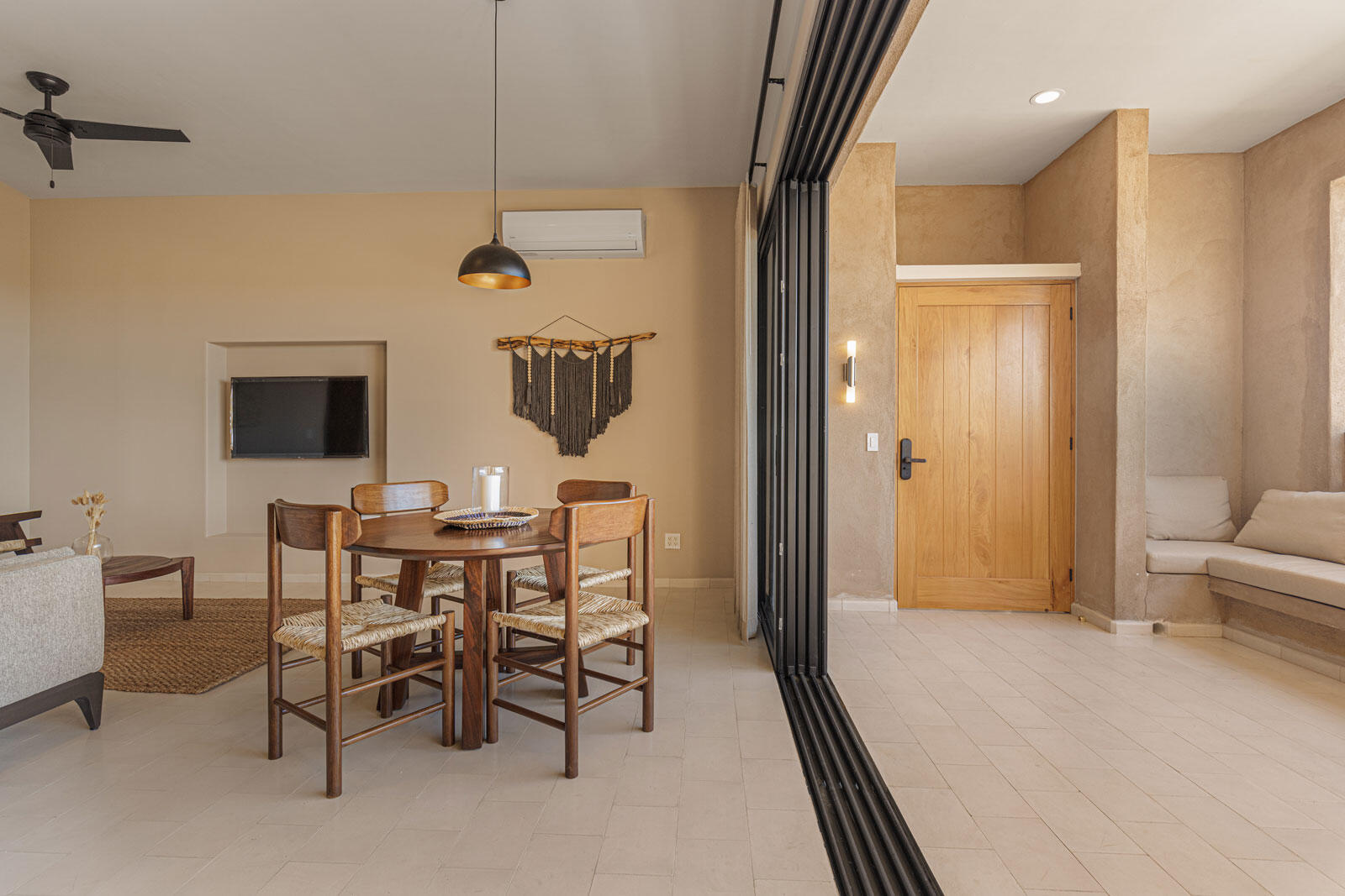 Indulge in the epitome of coastal luxury living with this turn-key, fully furnished 2-bed, 2.5-bath condo in Todos Santos. Crafted with artisan-made furniture, the residence exudes sophistication and charm. The first-floor access seamlessly connects indoor and outdoor spaces, offering a fluid transition to a private patio overlooking a pebble tech pool. Every detail, from the meticulously designed interiors to the tranquil poolside ambiance, ensures a lifestyle of comfort and elegance. Experience the essence of Baja living in this meticulously appointed haven.