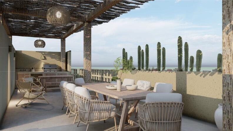 Exclusive development of only 16 units in two towers, located in El Sargento, La Ventana, Baja California Sur. Each condo offers ocean views and a peaceful setting. Units feature 71.50 m² with living-dining area, equipped kitchen with granite countertop and cooktop, 2 bedrooms, 2 full bathrooms, terrace, and laundry area. Amenities are ready to enjoy, including pool, jacuzzi, and on-site restaurant. Just 9 minutes from Agua Caliente Beach and 45 minutes from La Paz. Ideal for investment or a relaxing seaside home.