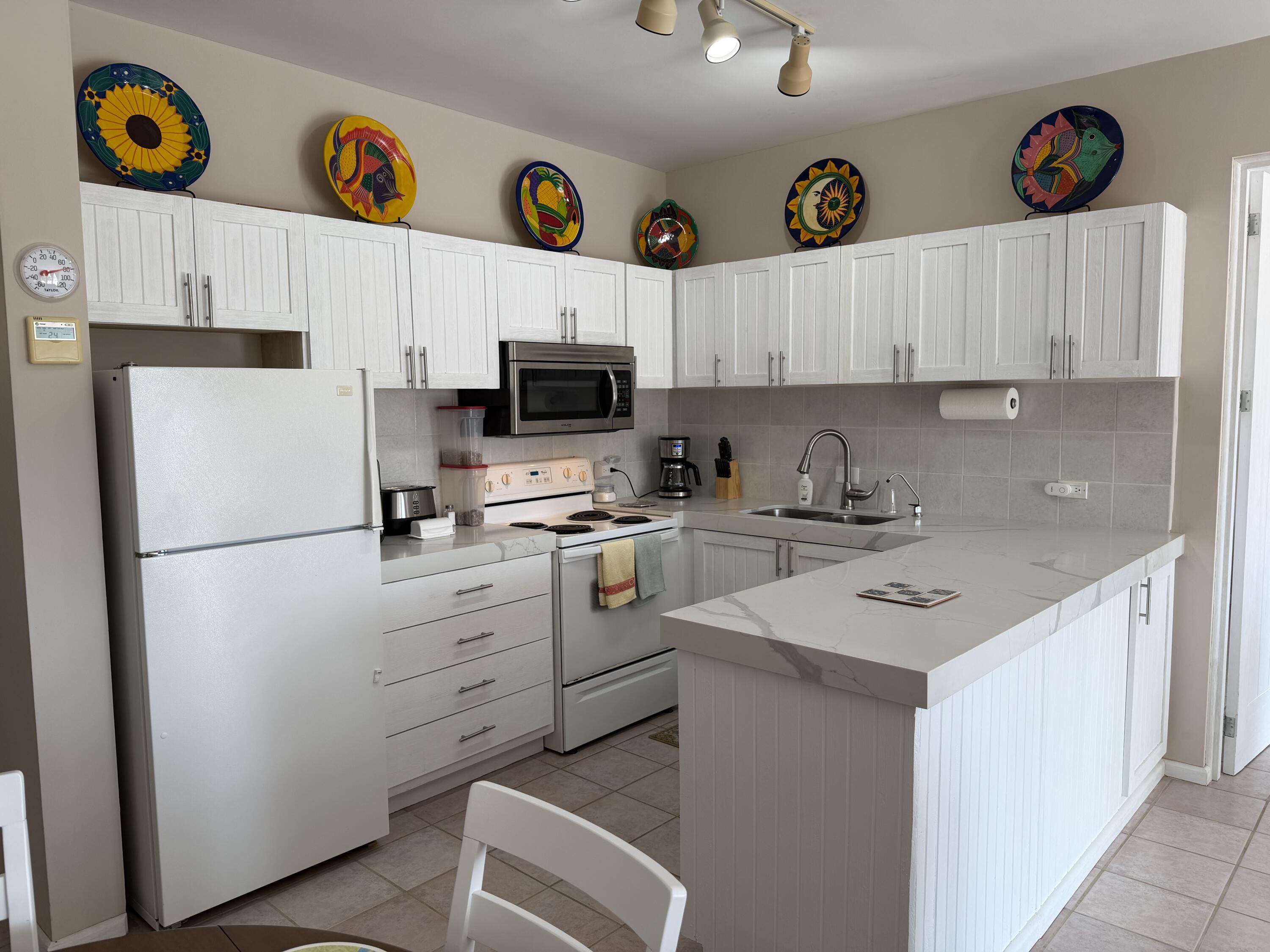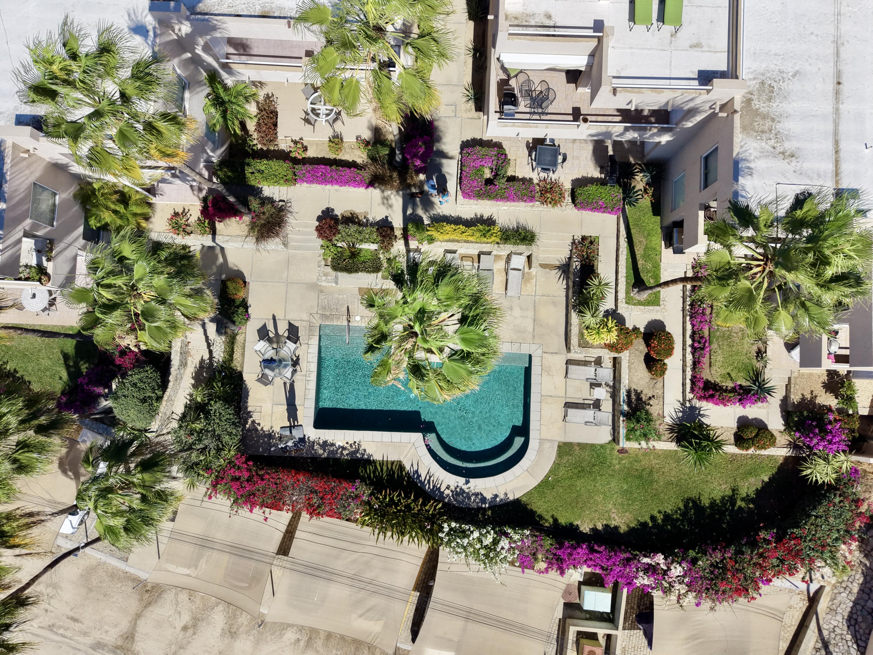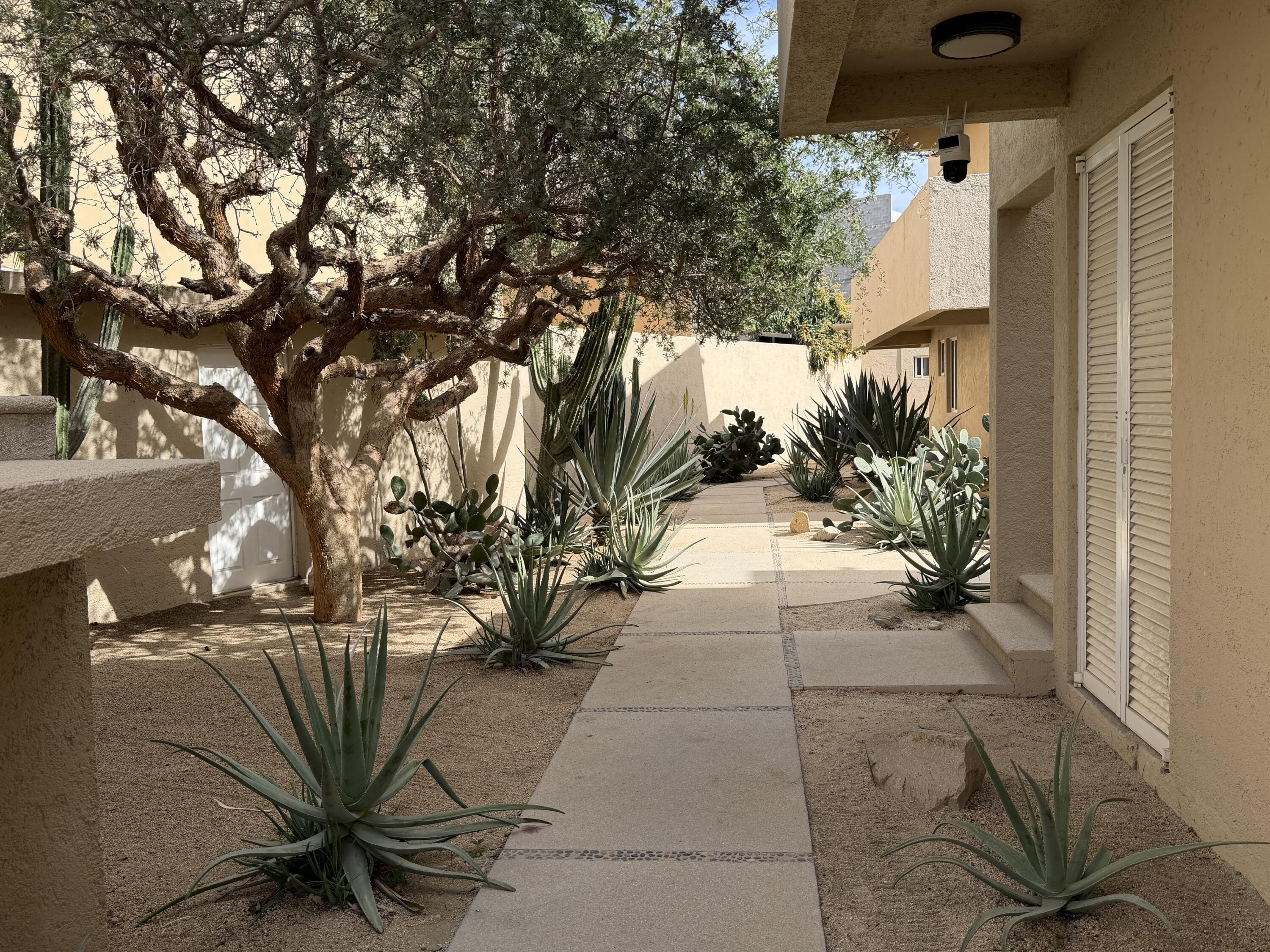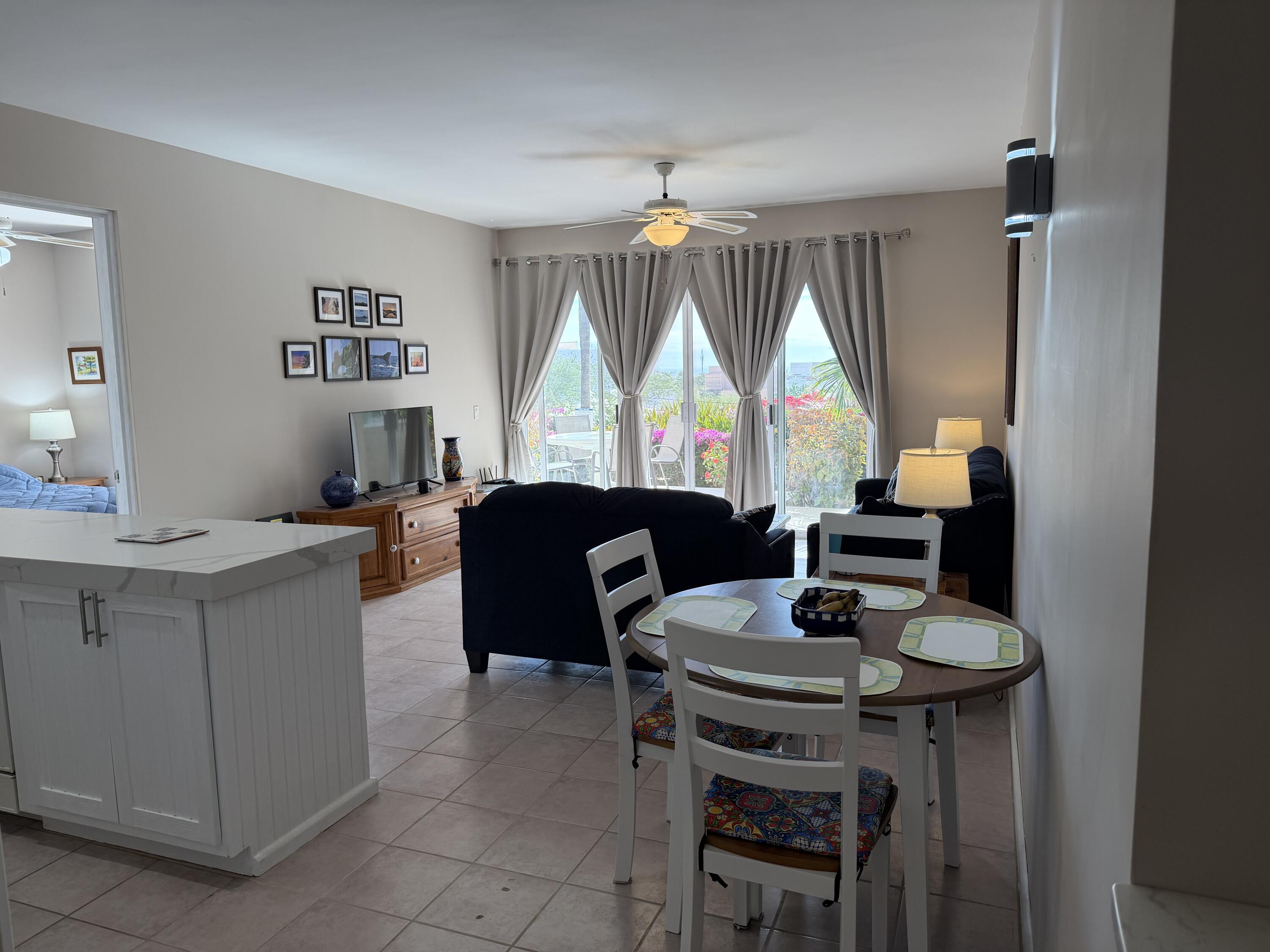 Bright, spacious 2-bed, 2-bath condo, freshly updated with paint, updated cabinets, and quartz countertops. This stylish, move-in-ready home features a private patio just steps from a beautifully landscaped pool, plus access to the shared rooftop terrace with sweeping ocean views. Located in a gated, secure, low-density complex just a six-minute ride to downtown Cabo, it blends comfort, convenience, and a touch of North American style. Ideal as a personal retreat or Airbnb-ready, offering the ultimate Cabo lifestyle
