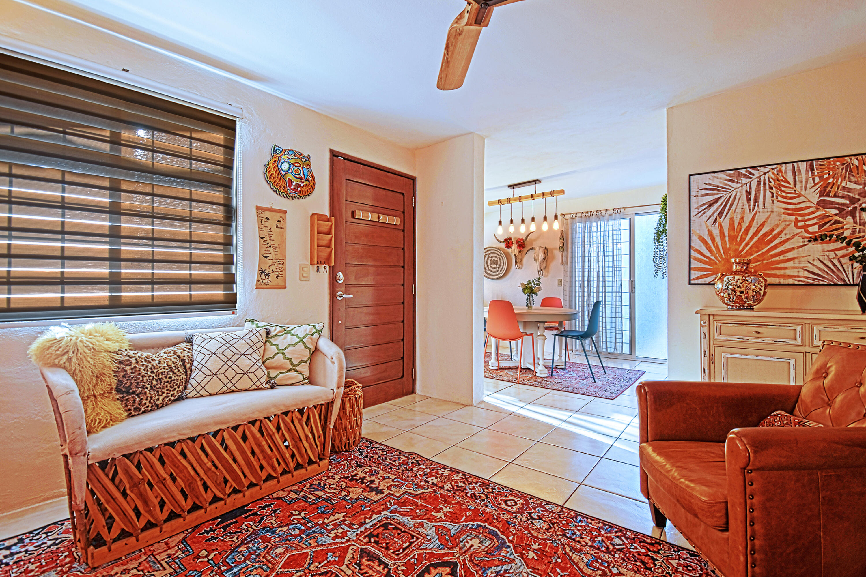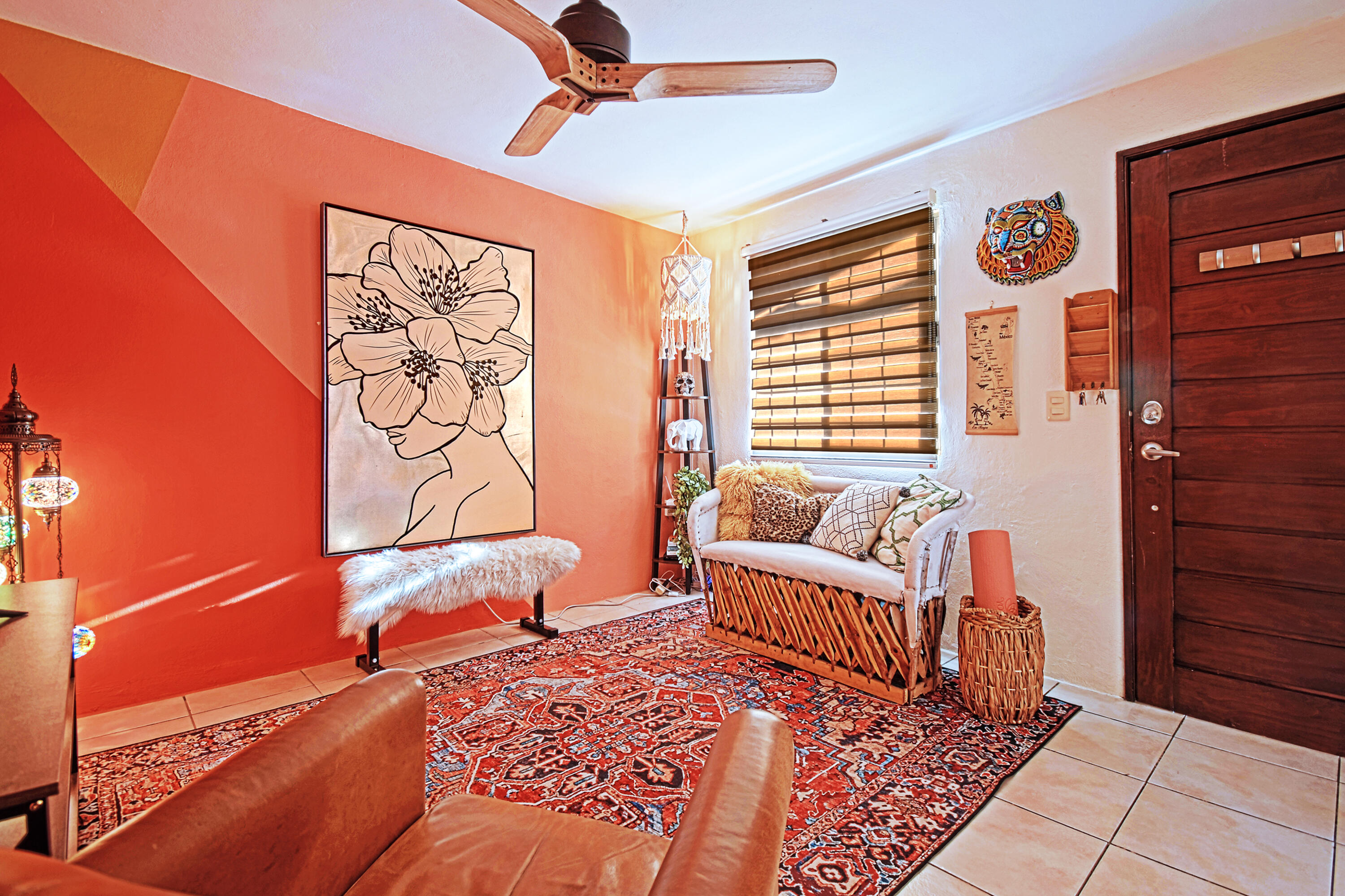 Discover charm and creativity in Casa Bohemia Artistica — a 2-bedroom, 1-bath home located in the sought-after Puesta del Sol area of La Paz. Just five minutes from the Malecón, this artistic retreat offers secured parking for one car and a cozy backyard perfect for BBQs or relaxed entertaining. Step inside to find vibrant colors, curated artwork, and stylish details throughout. Offered fully furnished and turn-key, every space reflects unique character and comfort. Close to shopping, dining, and entertainment, Casa Bohemia Artistica is the perfect blend of convenience, design, and authentic La Paz living.