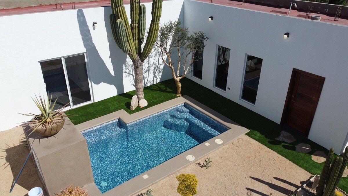 This contemporary property features a private courtyard with pool, creating bright indoor-outdoor living spaces. It offers 2 bedrooms, including a primary suite with walk-in closet and private bathroom, plus a modern open kitchen, built-in closets, and air conditioning. Additional highlights include a traditional palapa, storage room, quality finishes, and a contemporary façade with natural stone accents. Ideal as a full-time residence, vacation home, or investment. The price must be paid in mexican pesos by the amount of $5,995,000.00 pesos (Five million nine hundred ninety-fie thousand Mexican pesos 00/100 MXN)