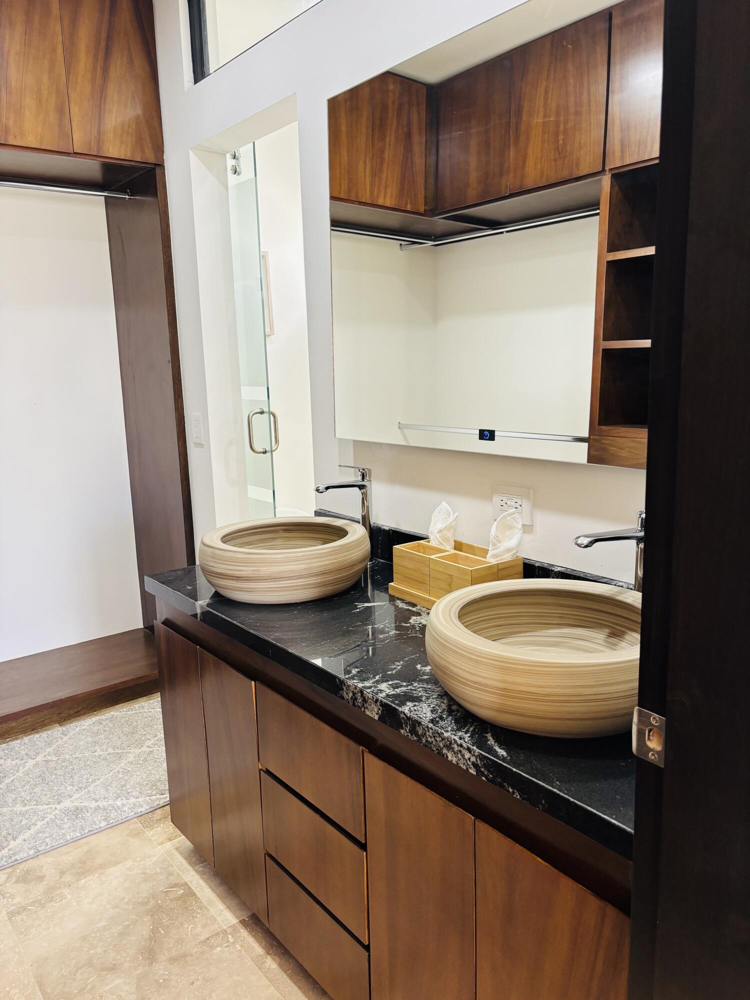 Luxury finishes include marble flooring, wood kitchen with granite countertops, built-in wooden closets in all bedrooms, and vanities with tempered glass shower doors in all 3.5 baths. Fully equipped with 5 Gree inverter mini-split A/C units (3 × 1-ton, 2 × 2-ton), LG 22' French Door refrigerator, Whirlpool gas stove, and 1.7 cu ft microwave hood. Additional features: rooftop with bar, grill & sink, private terrace, storage, WiFi smart lock, private 5,000-liter cistern, and termite prevention system. Community: pool, gym, sports courts, kids' area, 3 clubhouses & 24/7 gated security