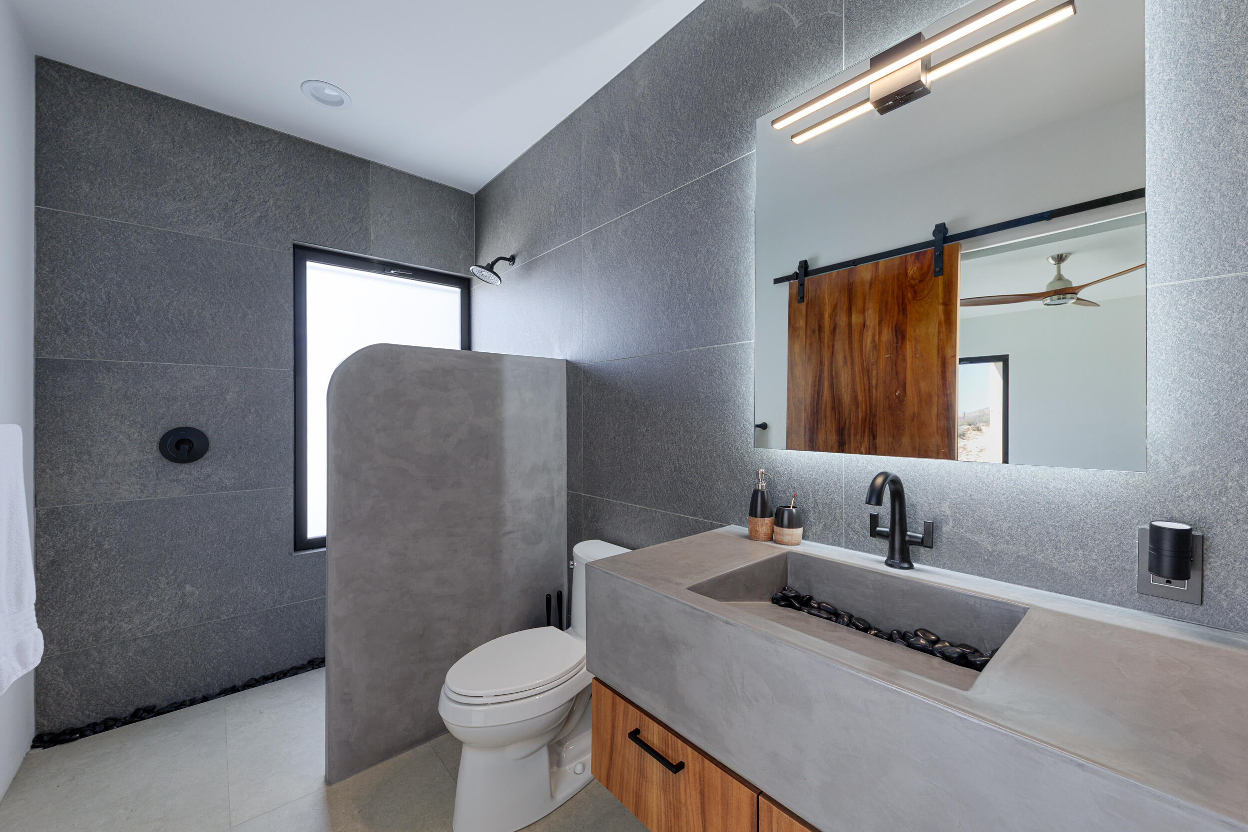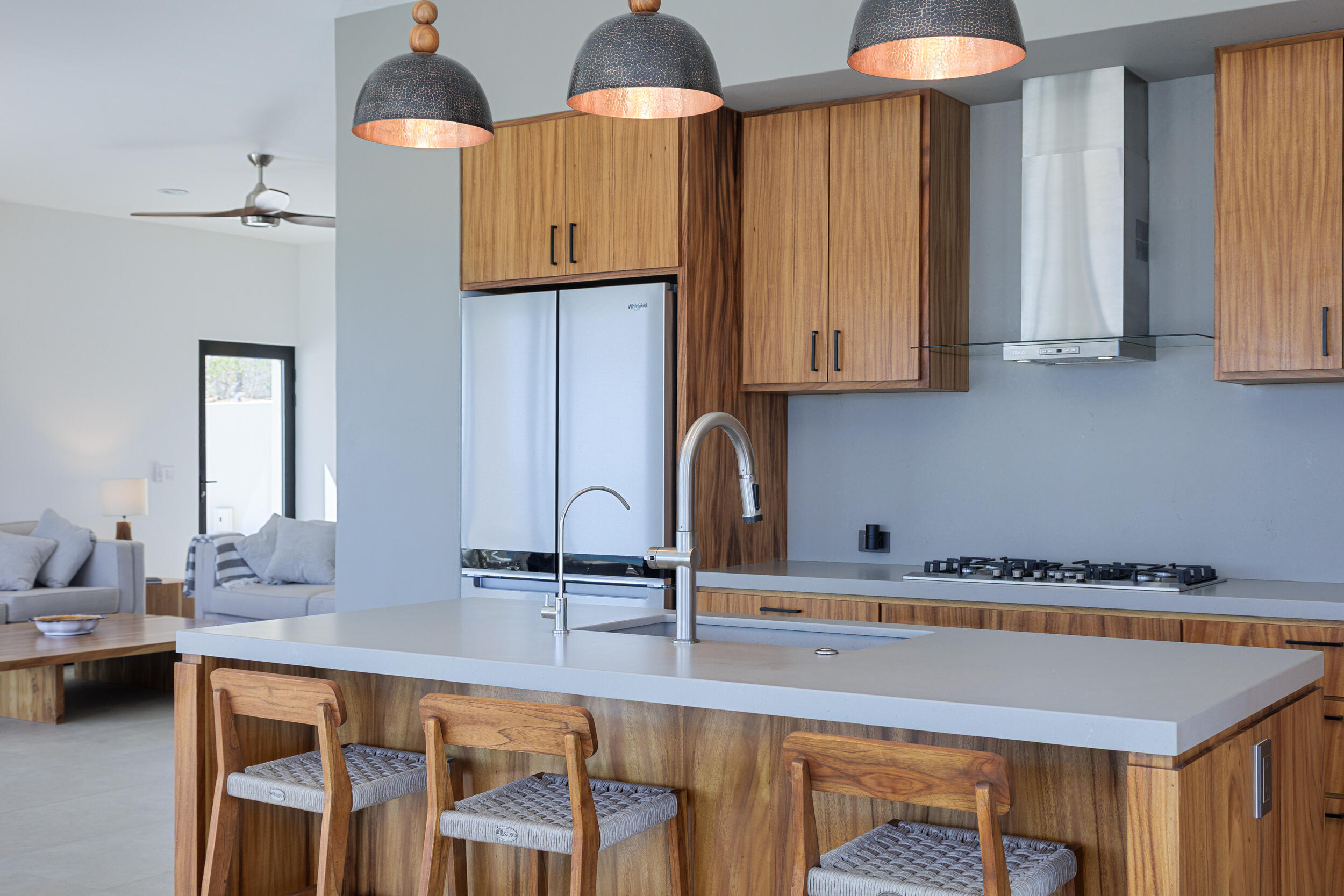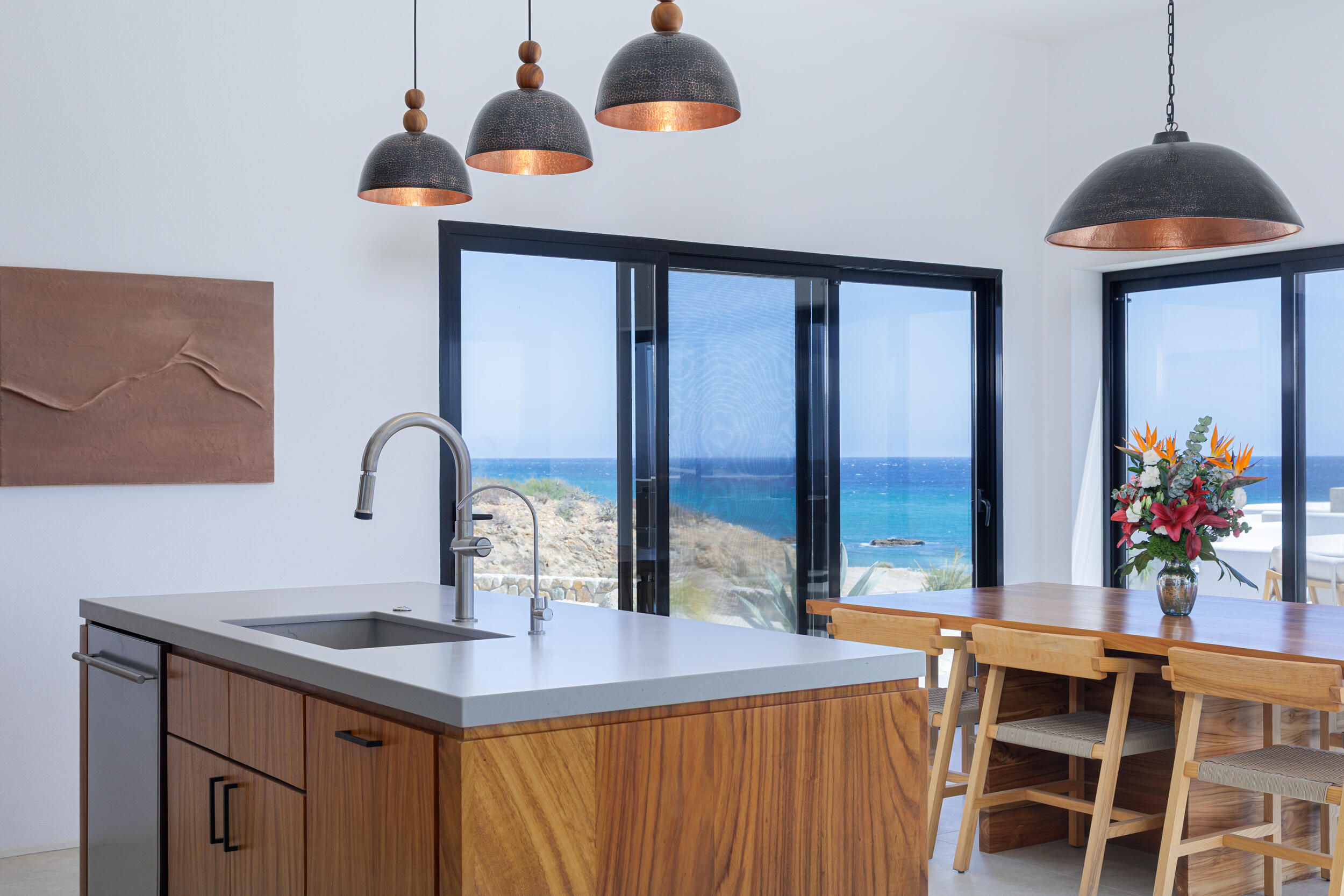 Casa Fiesta is located in the exclusive Montemar subdivision just 20 to 25 minutes from Los Barriles. This prime location offers the perfect balance of privacy and community, surrounded by beautiful modern homes while still enjoying peaceful seclusion. The Sea of Cortez is only a two-minute walk from your door. During the right season, you can watch whales breaching from the shoreline--and sometimes even hear them at night. The beach is ideal for paddleboarding, kayaking, winging, kitesurfing, fishing, or simply relaxing by the water. Less than a year old, the home is in pristine, like-new condition.
