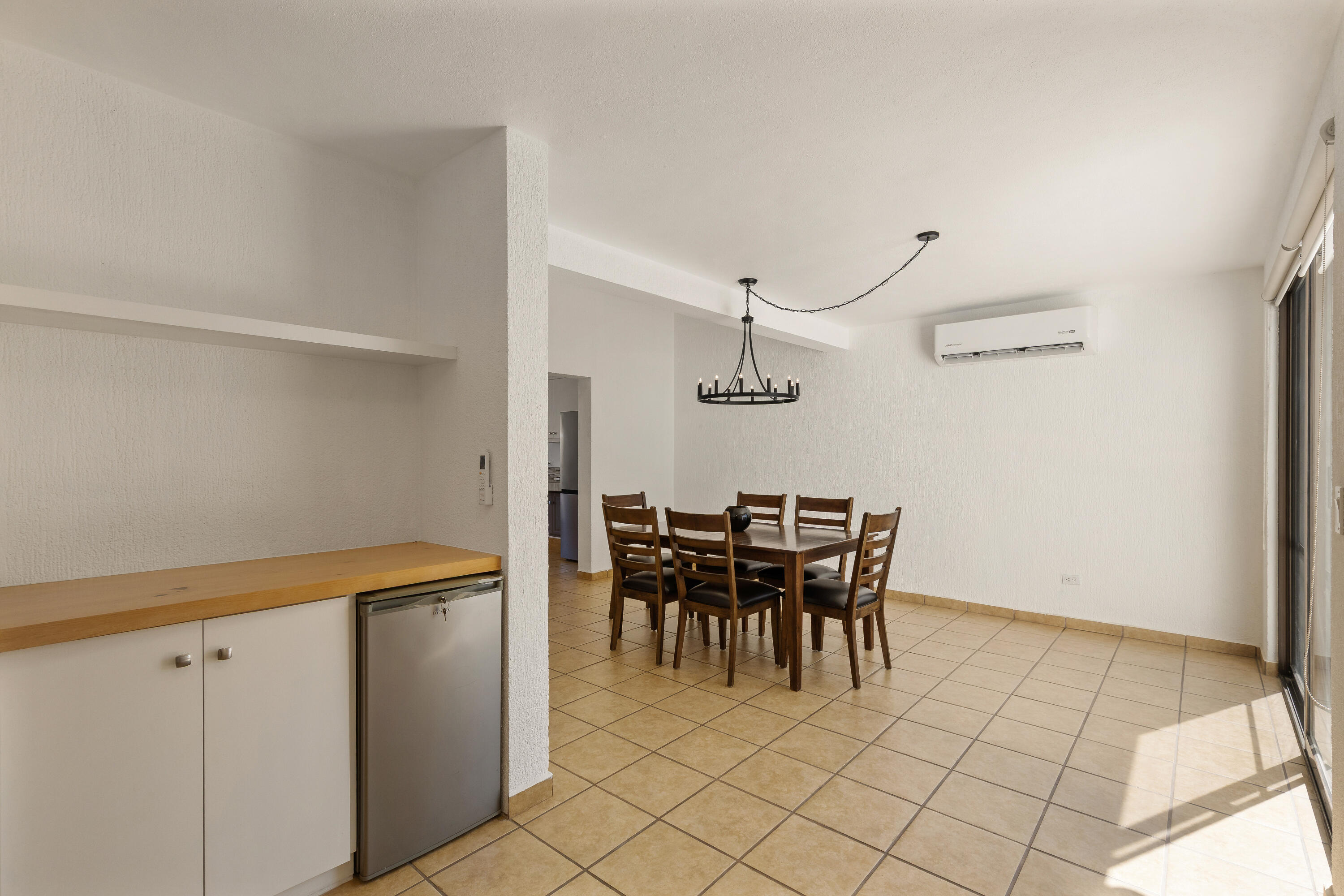 Discover your perfect blend of comfort, space, and convenience in this charming 4-bedroom, 3-bath family home in the residential community of Magisterial located just minutes to shopping, the transpeninsular highway and downtown San José del Cabo. Whether you are starting a family, working from home, or simply wanting room to grow, this home offers a warm and flexible layout to fit your lifestyle. Step inside to find a partially furnished bright and airy living space that flows easily from the living room to the kitchen. A rare separate dining area with bar and fridge is steps from the kitchen and perfect for casual meals or hosting friends. A guest bedroom or perhaps a home office is down the hall on this level with a access to a full bath. Upstairs the master suite offers privacy