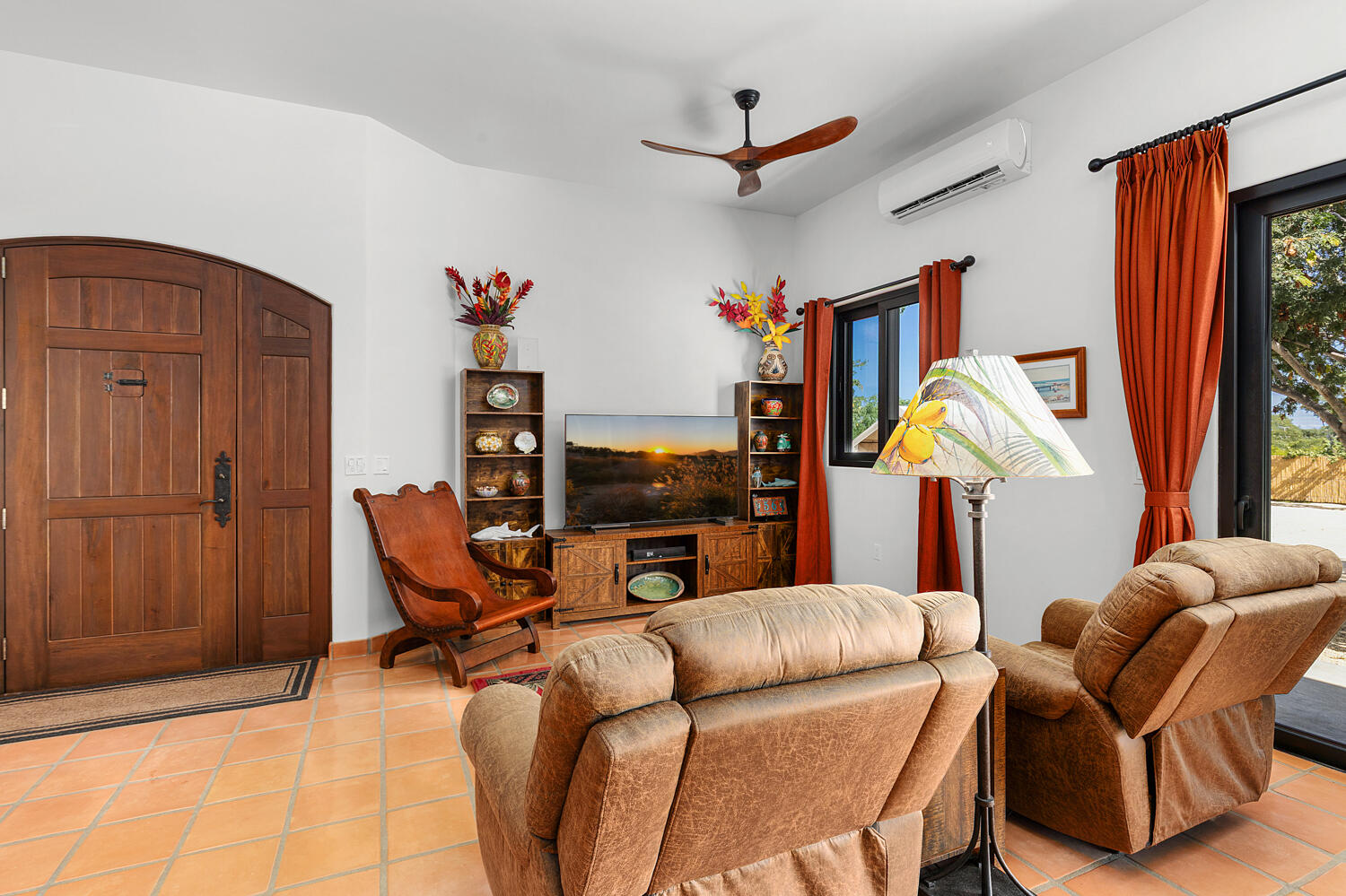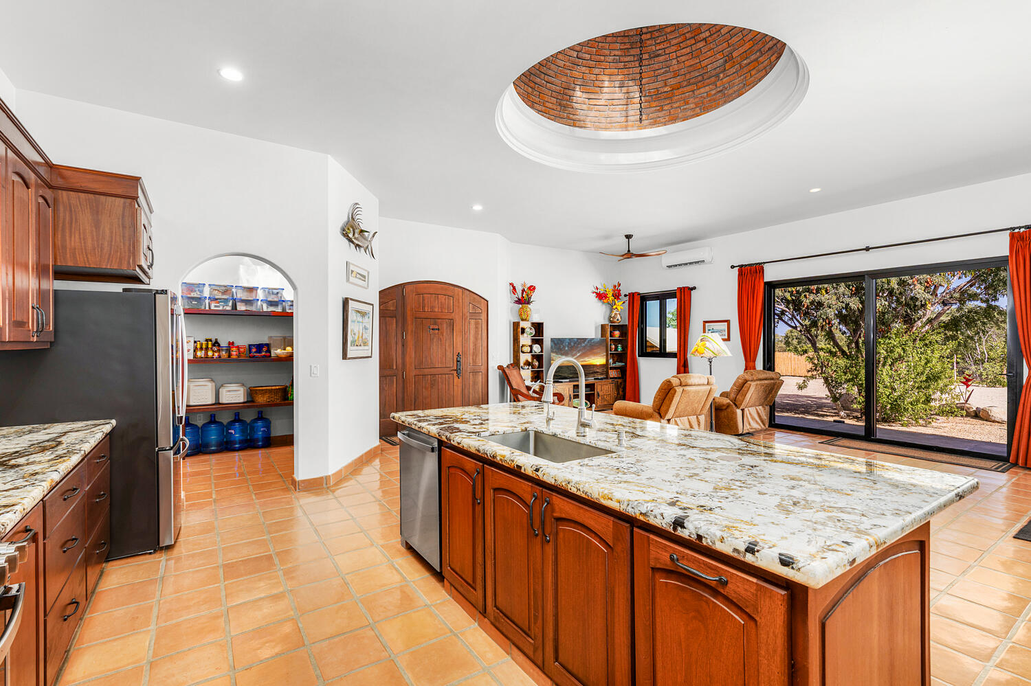 Motivated seller, all reasonable offers considered! Experience the tranquility of East Cape living in this nearly new, beautifully constructed one-bedroom, one-bath home offering breathtaking, forever-protected views of the Sea of Cortez, surrounding mountains, and serene arroyo. Oversized lot w/plenty of room to add on. Built by a well-known local contractor, the home showcases exceptional craftsmanship with authentic Saltillo tile, custom lighting and sconces, and thoughtful design throughout. Whole house water filtration installed for convenience. The Cupola, equipped with custom lighting, gives the interior a beautiful, timeless, and airy feel.The spacious master suite and elegant bath exude comfort and style.