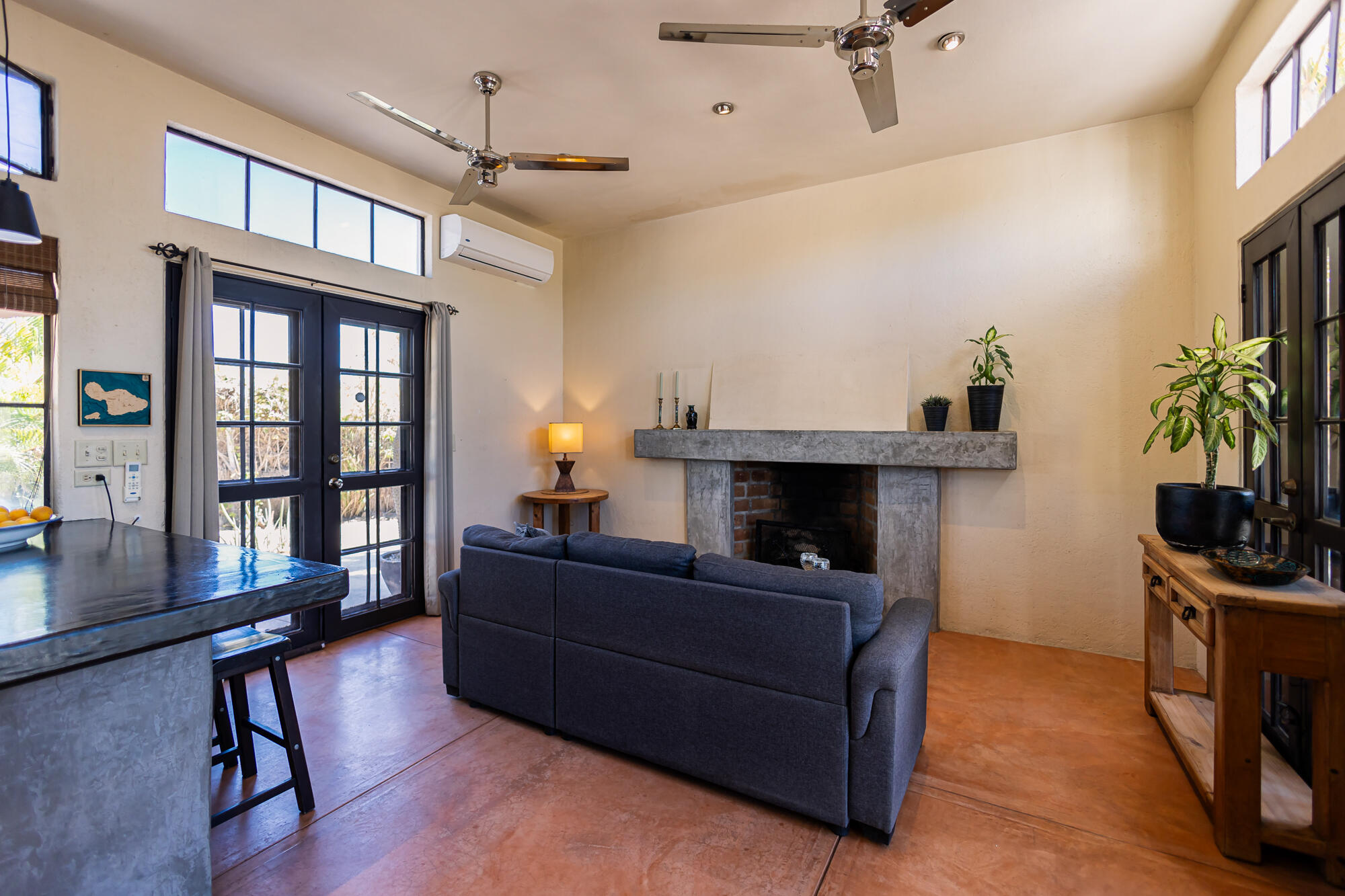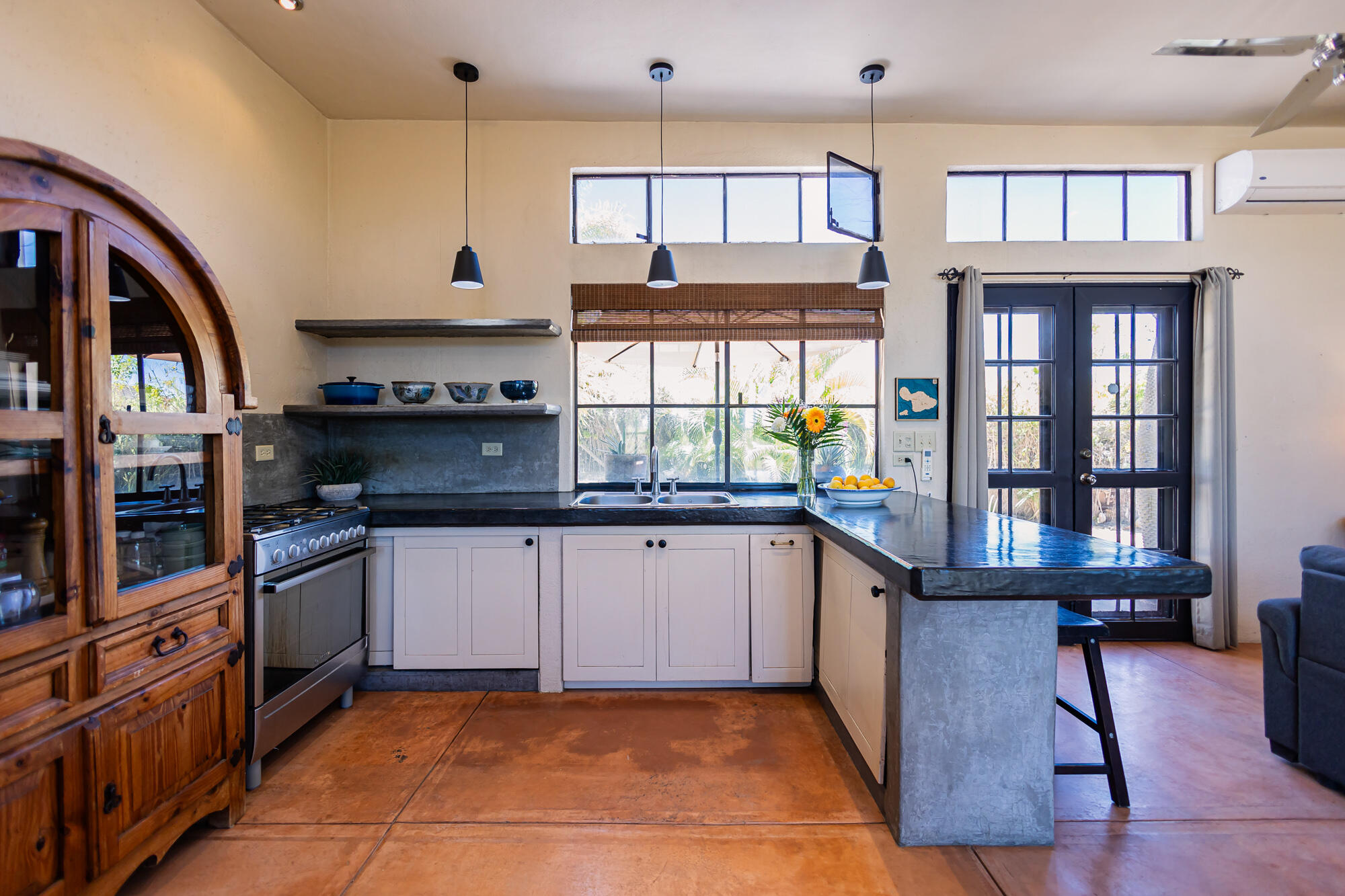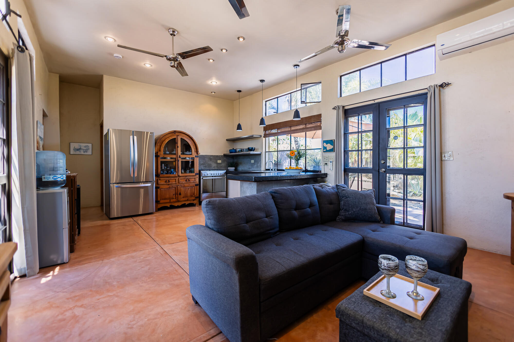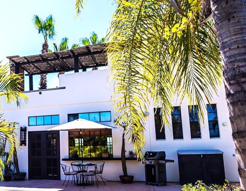 Tucked into one of the most sought-after neighborhoods of Todos Santos, this distinctive property in Las Tunas offers a lifestyle defined far more by space, sky, and ocean air than by interior square footage. The home features two bedrooms and two baths, yet it lives expansively thanks to the thoughtfully designed outdoor living areas--spaces that truly capture what coastal Baja living is all about. The patios function as an extension of the home, creating multiple zones for gathering, relaxing, and entertaining. Upstairs, a generous sectional invites long evenings warmed by a fire pit. Enjoy ocean and mountain views from this second level or head upstairs to the rooftop deck, ideal for magnificent sunsets, whale watching or checking the surf at Pastora.