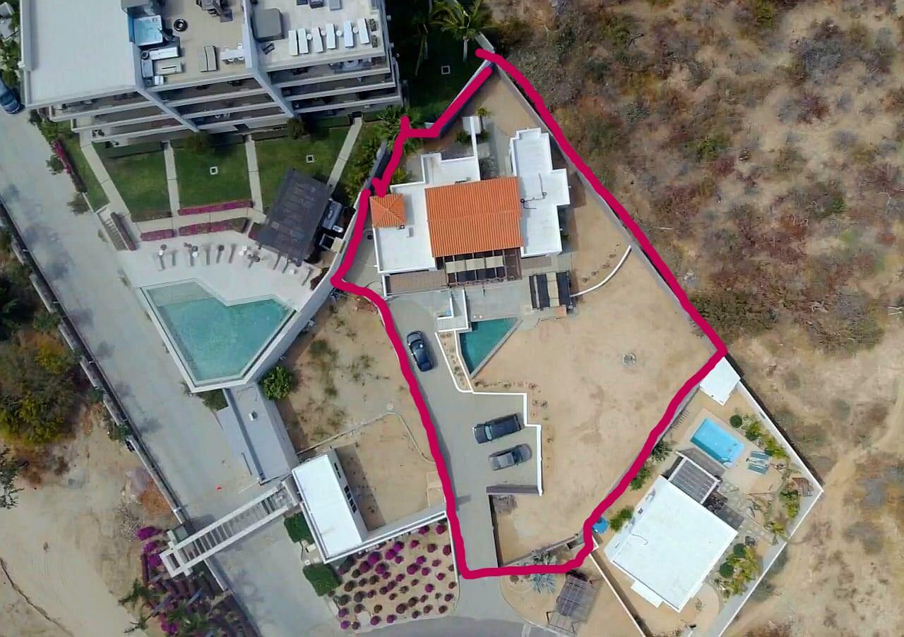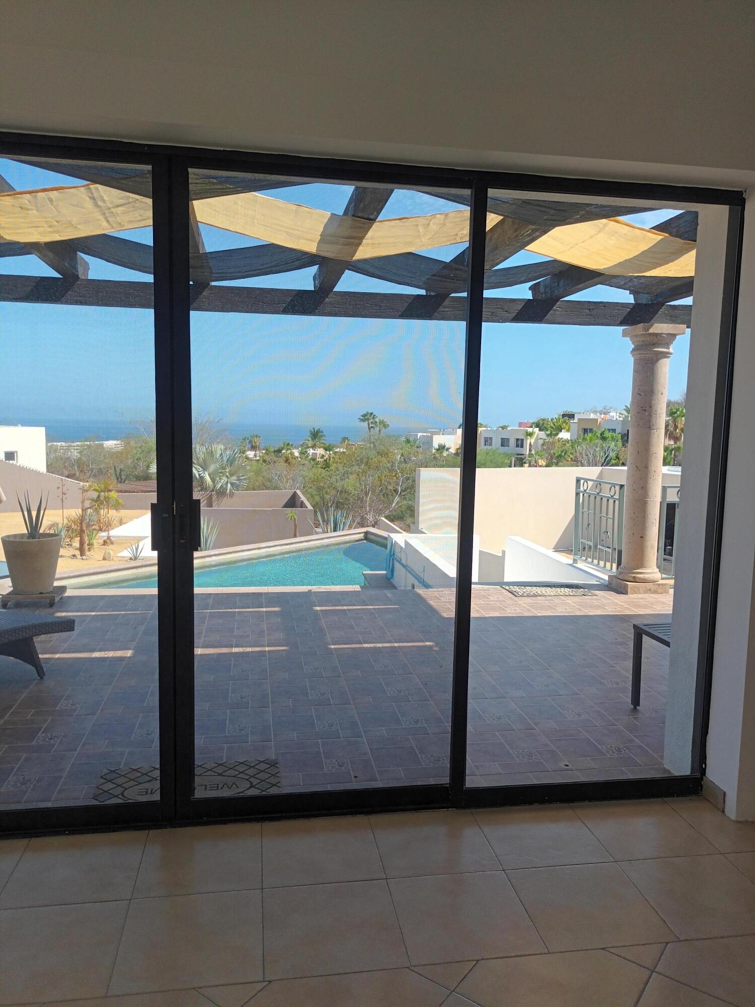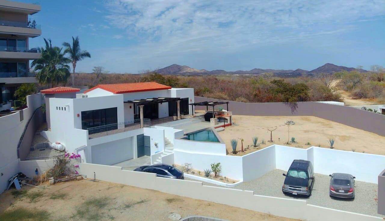 Live in the tranquility of the Mar y Cielo house with panoramic views of the Sea of Cortez and the mountains, it has sliding pocket terrace doors, kitchen with granite counter, cathedral ceiling, fountain in backyard, private pool, closed garage with automatic gate for 2 cars, space for 3 more cars, terrace with pergola; pocket sliding windows, anti-hurricane protections in very good condition for all windows. Enjoy the sunrise from the comfort of your bed and/or the terrace. Located a few minutes from Playa El Tule and Playa Chileno. Additional land of approximately 400m² for you to develop bungalows, a couple of duplexes of 120m² of construction per floor, or another house of 250 to 300m² of two-story construction, with an independent pool and anything else you can think of.