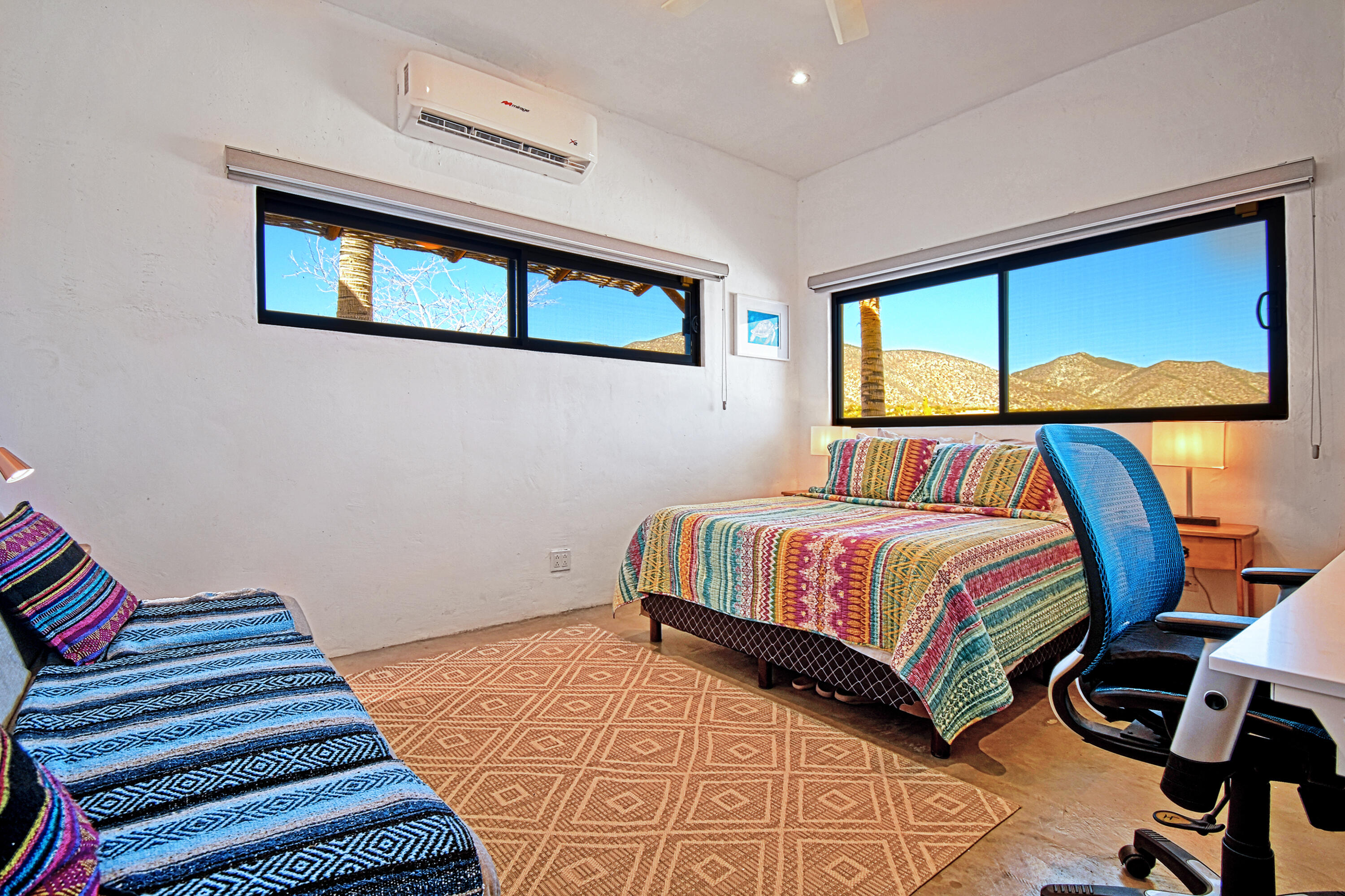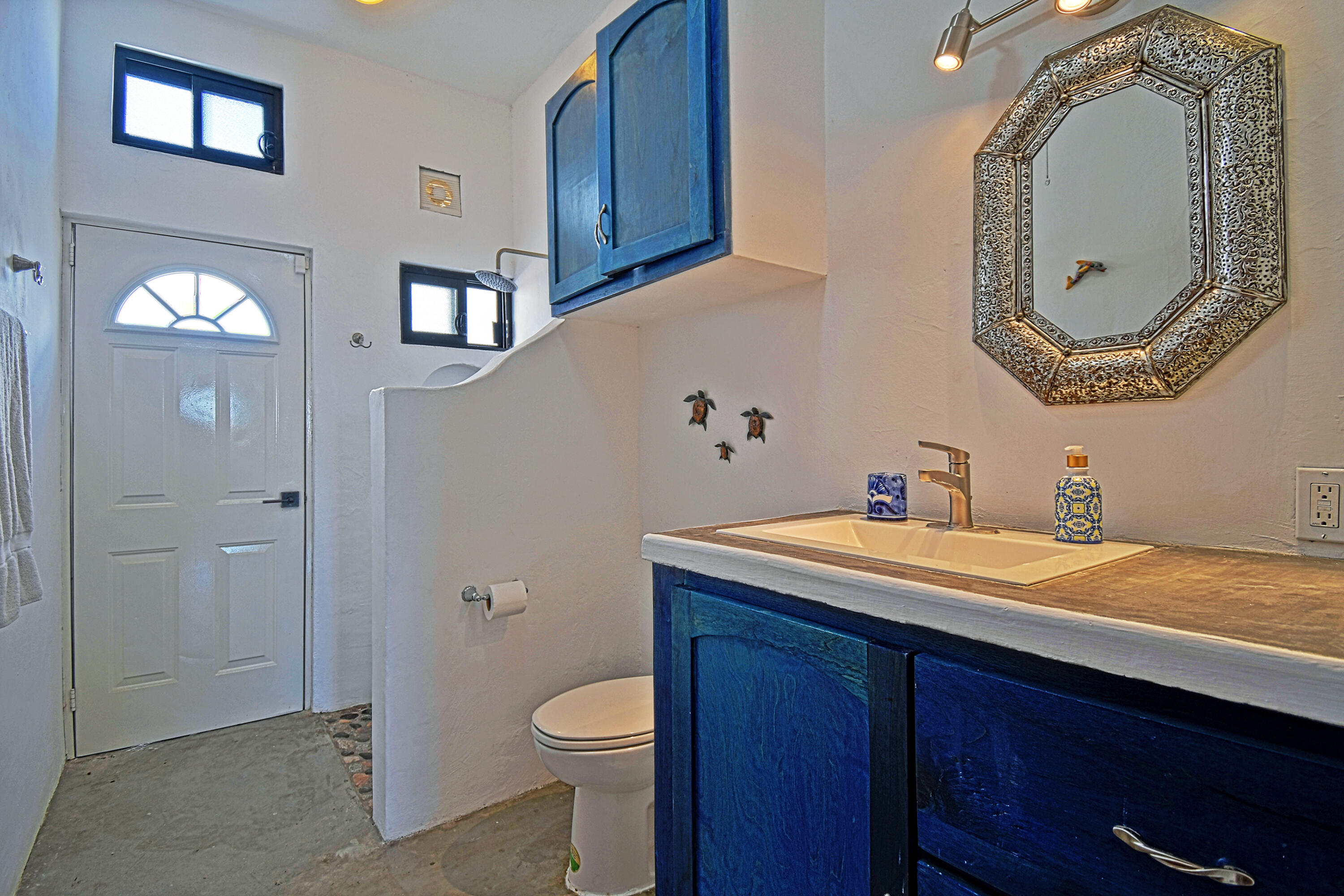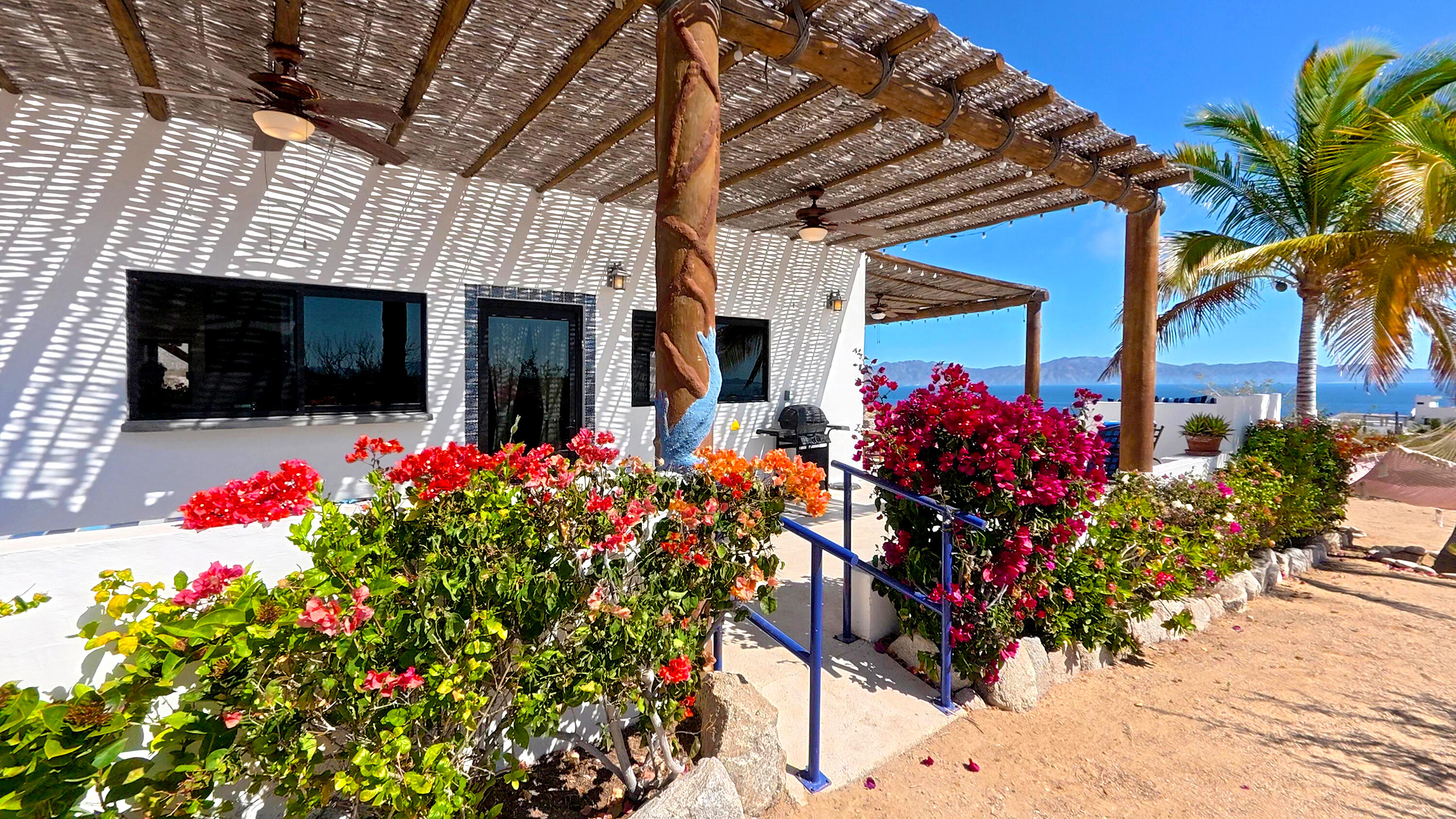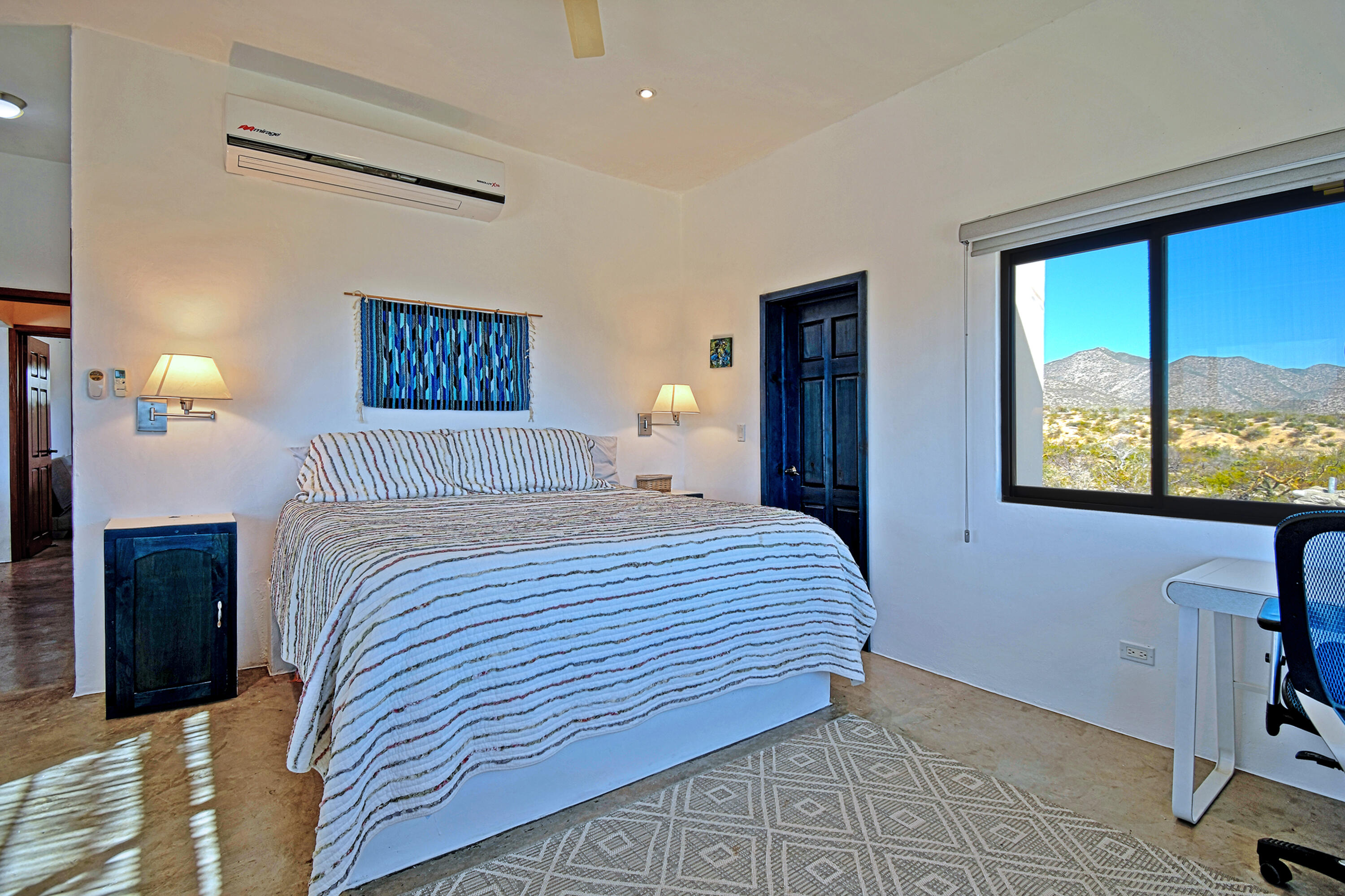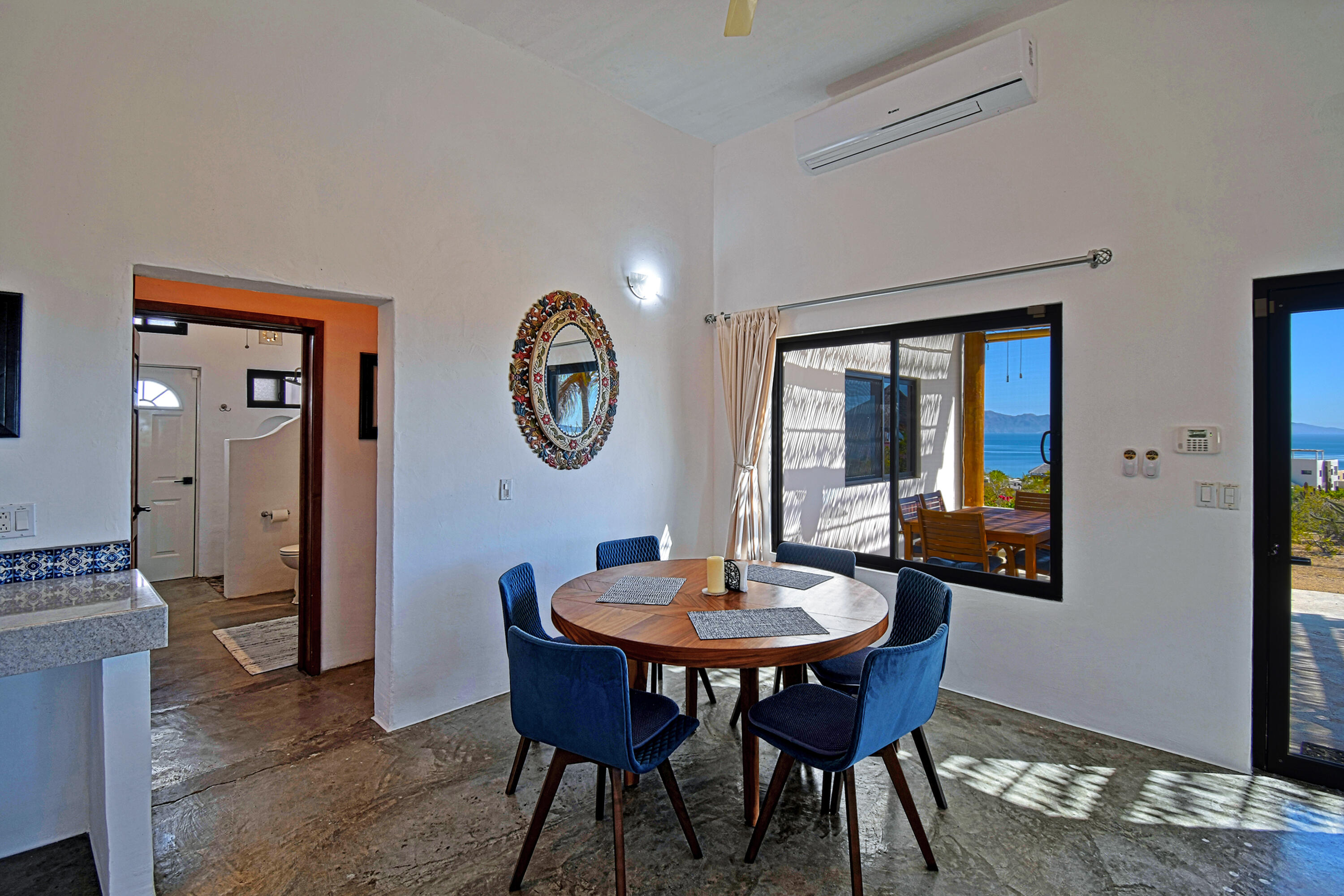 Bright, breezy, and full of Baja charm, this stunning 2-bedroom, 2-bath home offers effortless indoor-outdoor living. The open-concept great room centers around a spacious kitchen island beneath a striking brick cupula, with bold blue cabinetry set against crisp white walls for a fresh coastal feel. Large windows flood the home with natural light and showcase sweeping desert and Sea of Cortes views. Enjoy the outdoors from a pergola-shaded patio with multiple lounge areas, surrounded by lush bougainvillea and mature palms. Includes adjacent lot for protected views, plus a one car garage and dedicated laundry room. Located just minutes from sandy beaches and world class mountain bike/hiking trails.