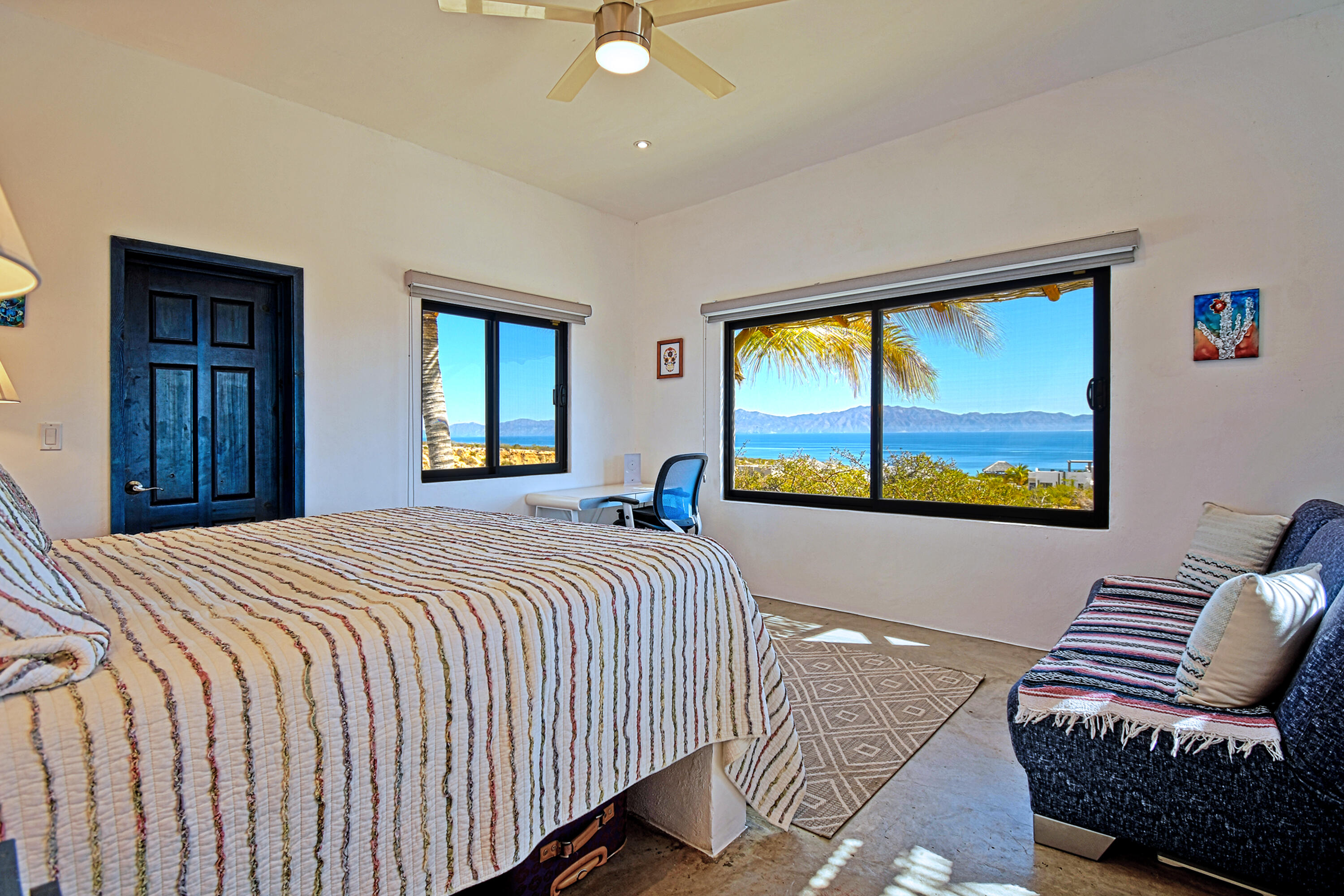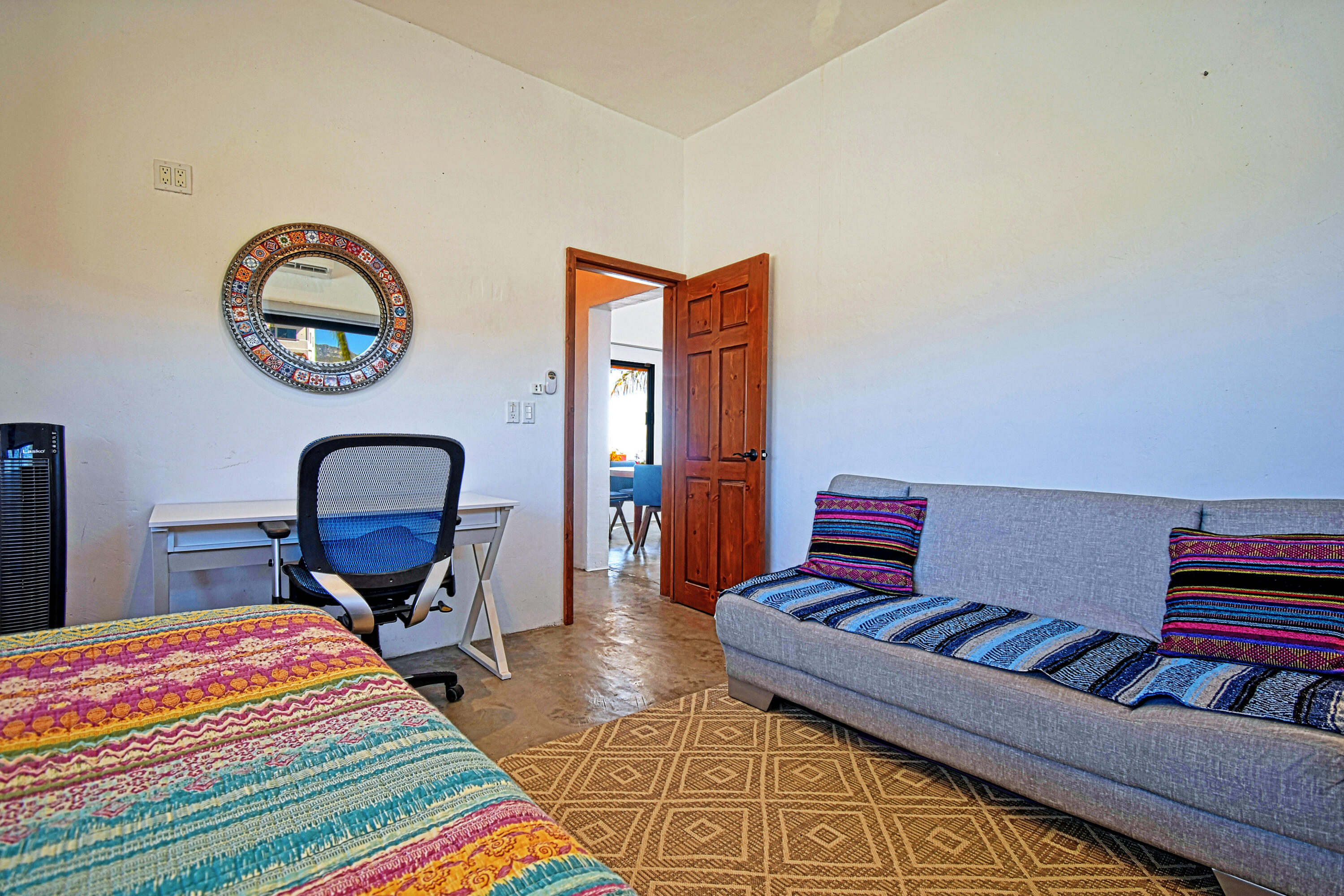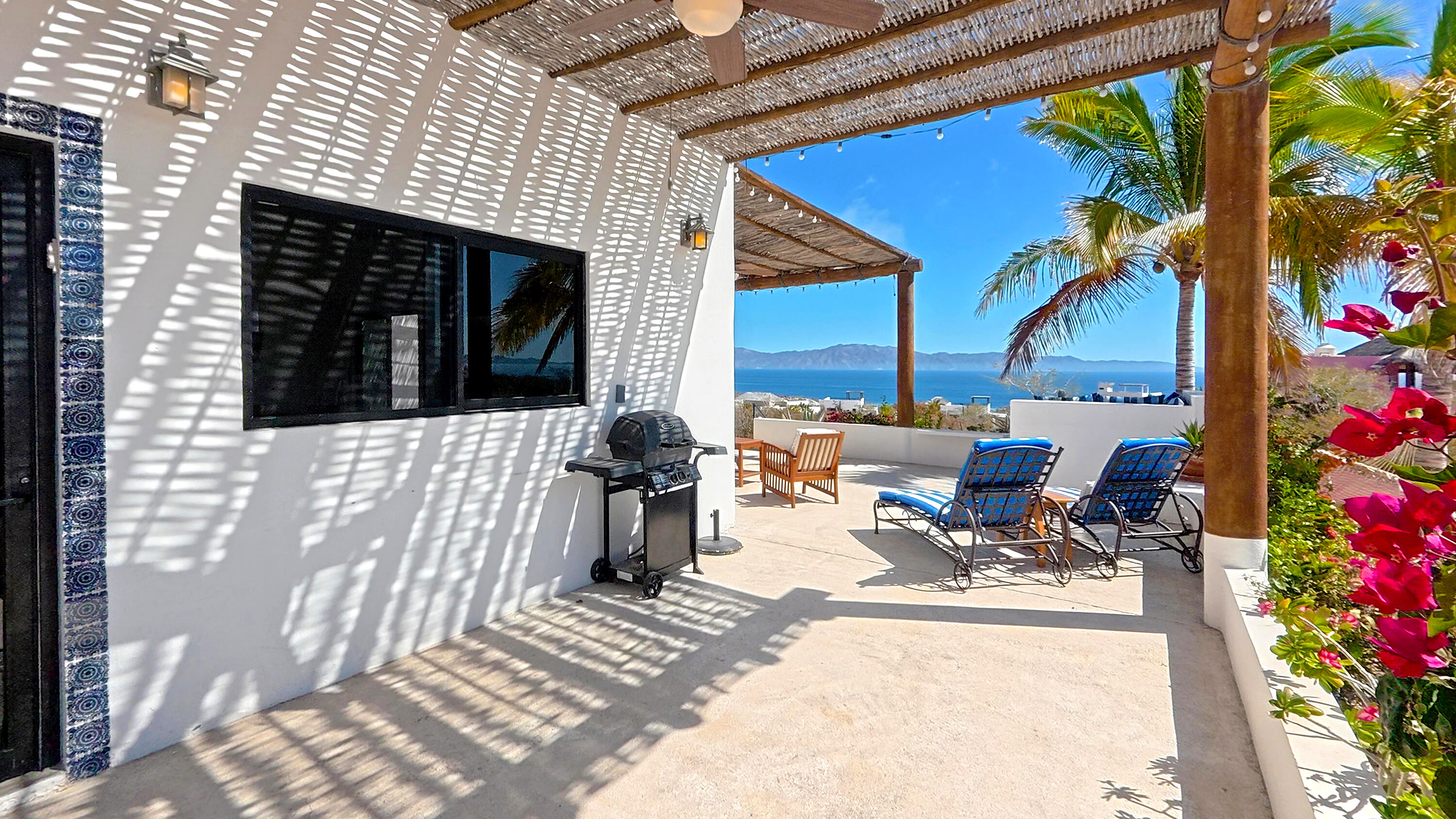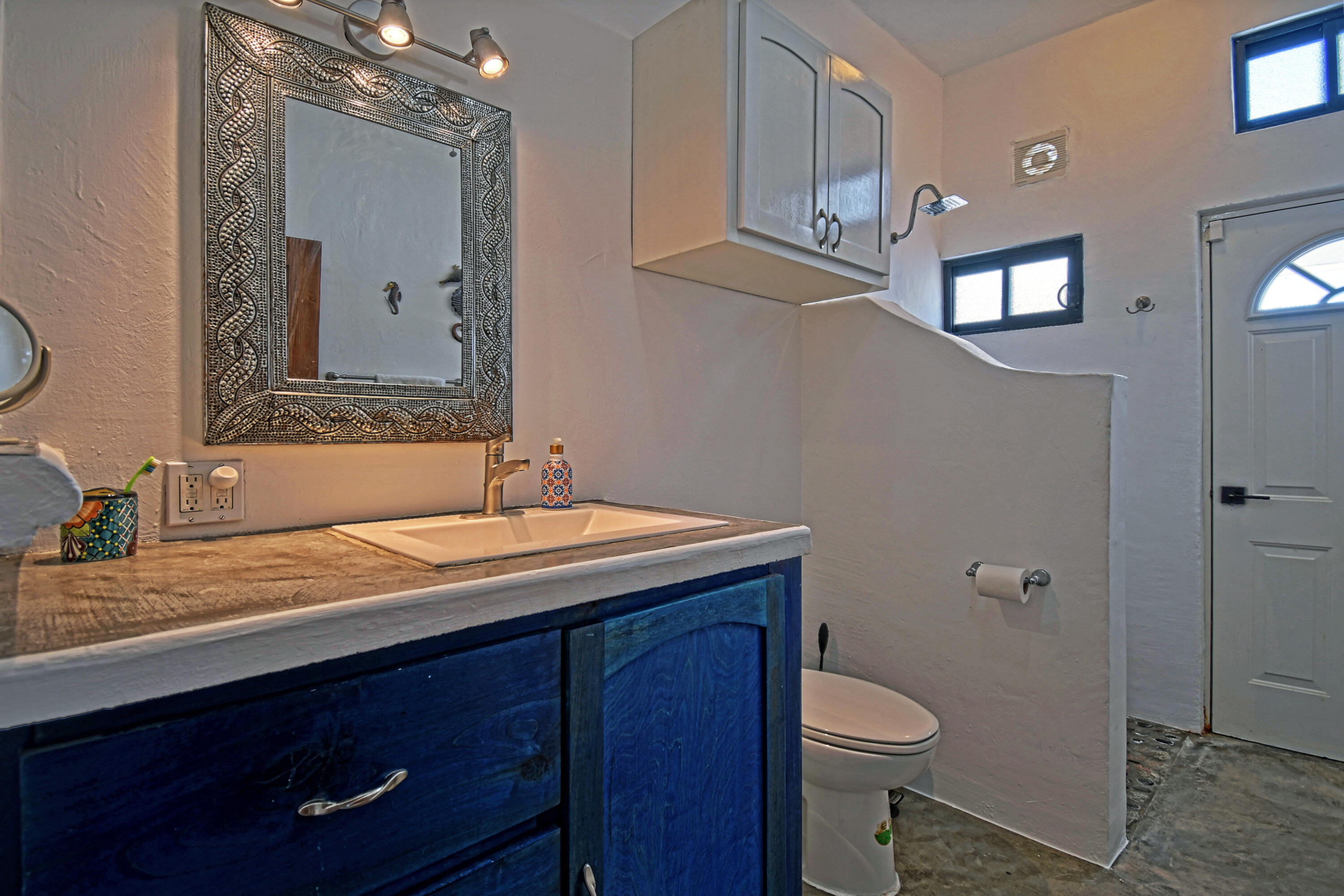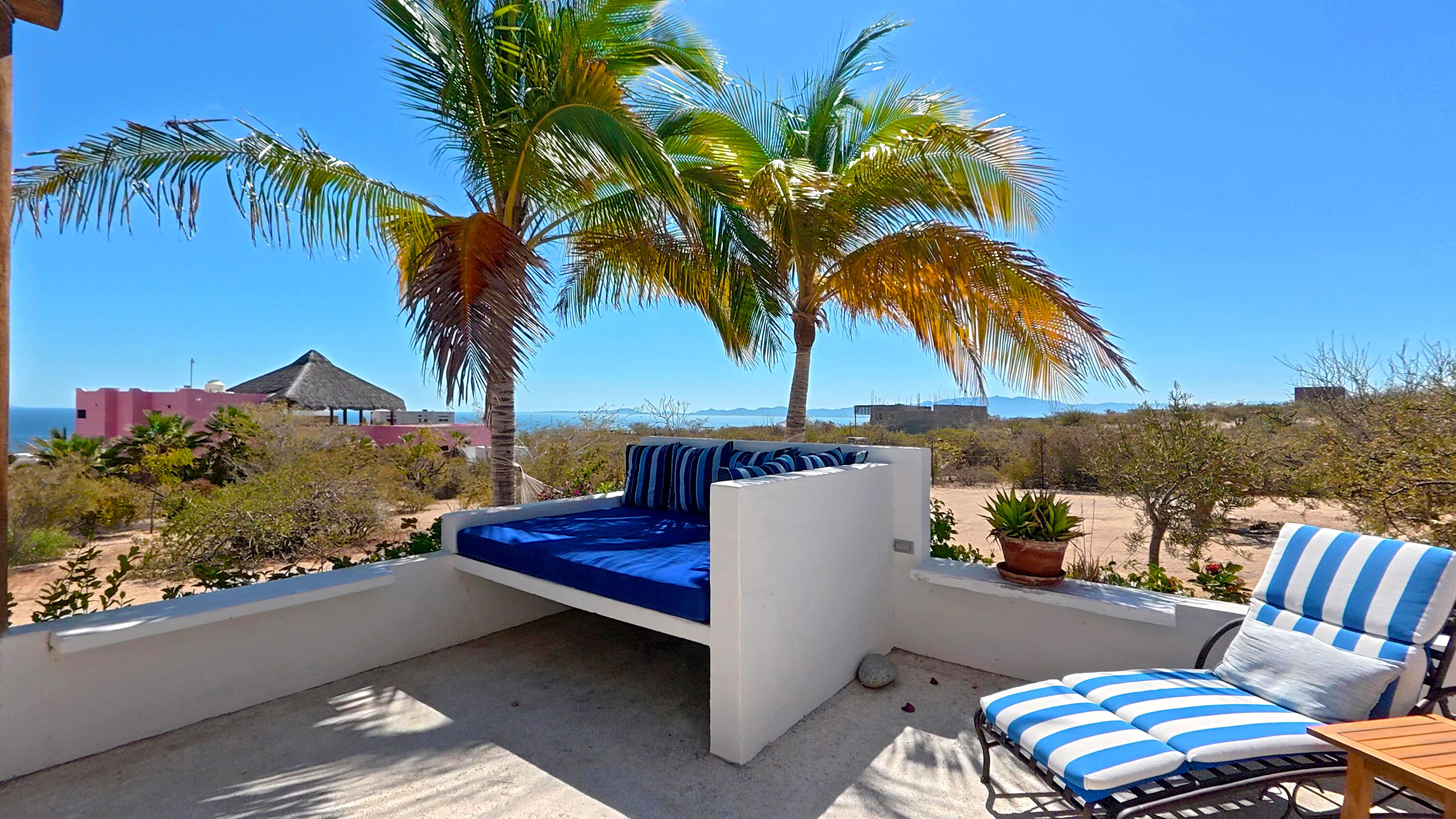 Bright, breezy, and full of Baja charm, this stunning 2-bedroom, 2-bath home offers effortless indoor-outdoor living. The open-concept great room centers around a spacious kitchen island beneath a striking brick cupula, with bold blue cabinetry set against crisp white walls for a fresh coastal feel. Large windows flood the home with natural light and showcase sweeping desert and Sea of Cortes views. Enjoy the outdoors from a pergola-shaded patio with multiple lounge areas, surrounded by lush bougainvillea and mature palms. Includes adjacent lot for protected views, plus a one car garage and dedicated laundry room. Located just minutes from sandy beaches and world class mountain bike/hiking trails.