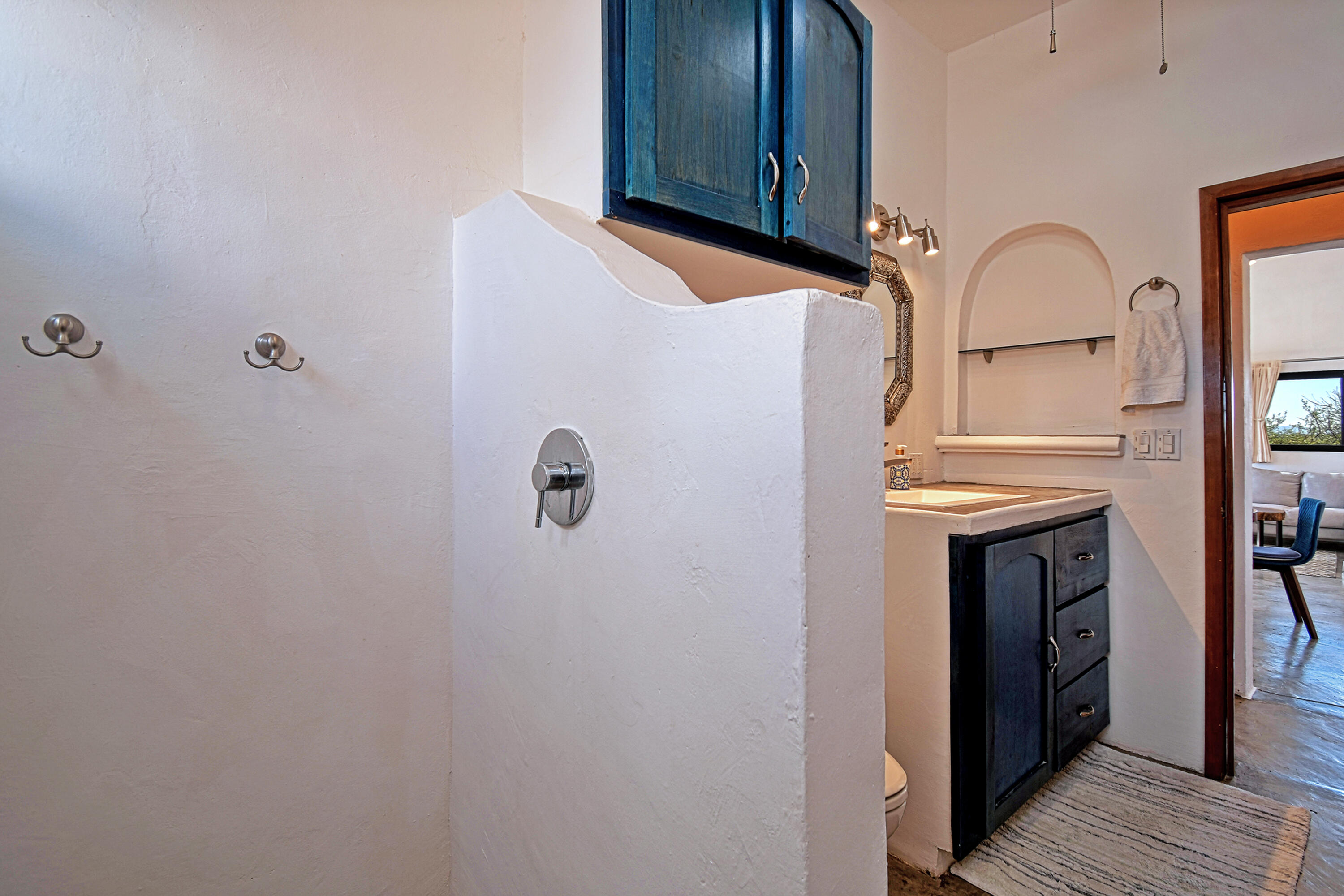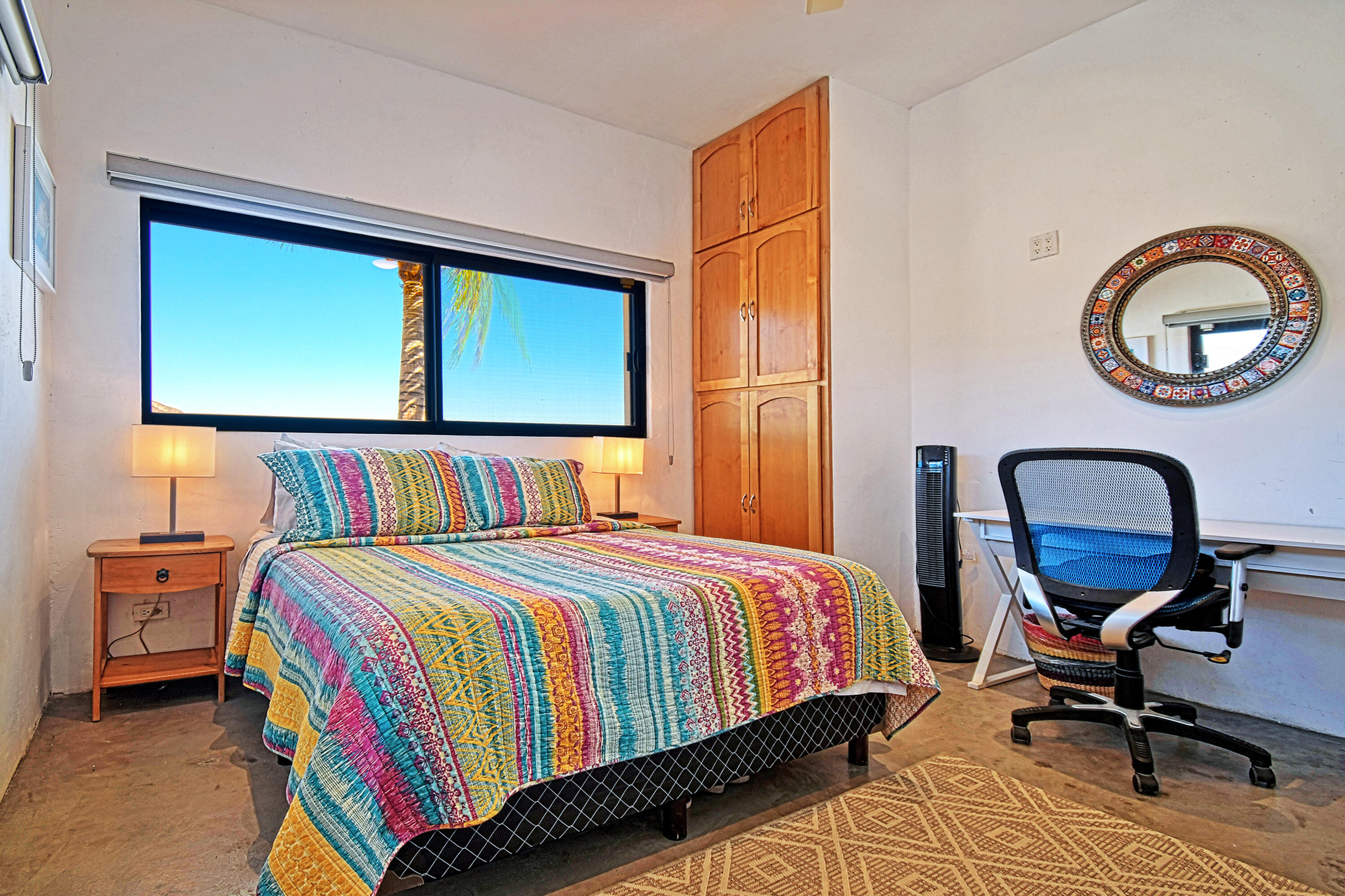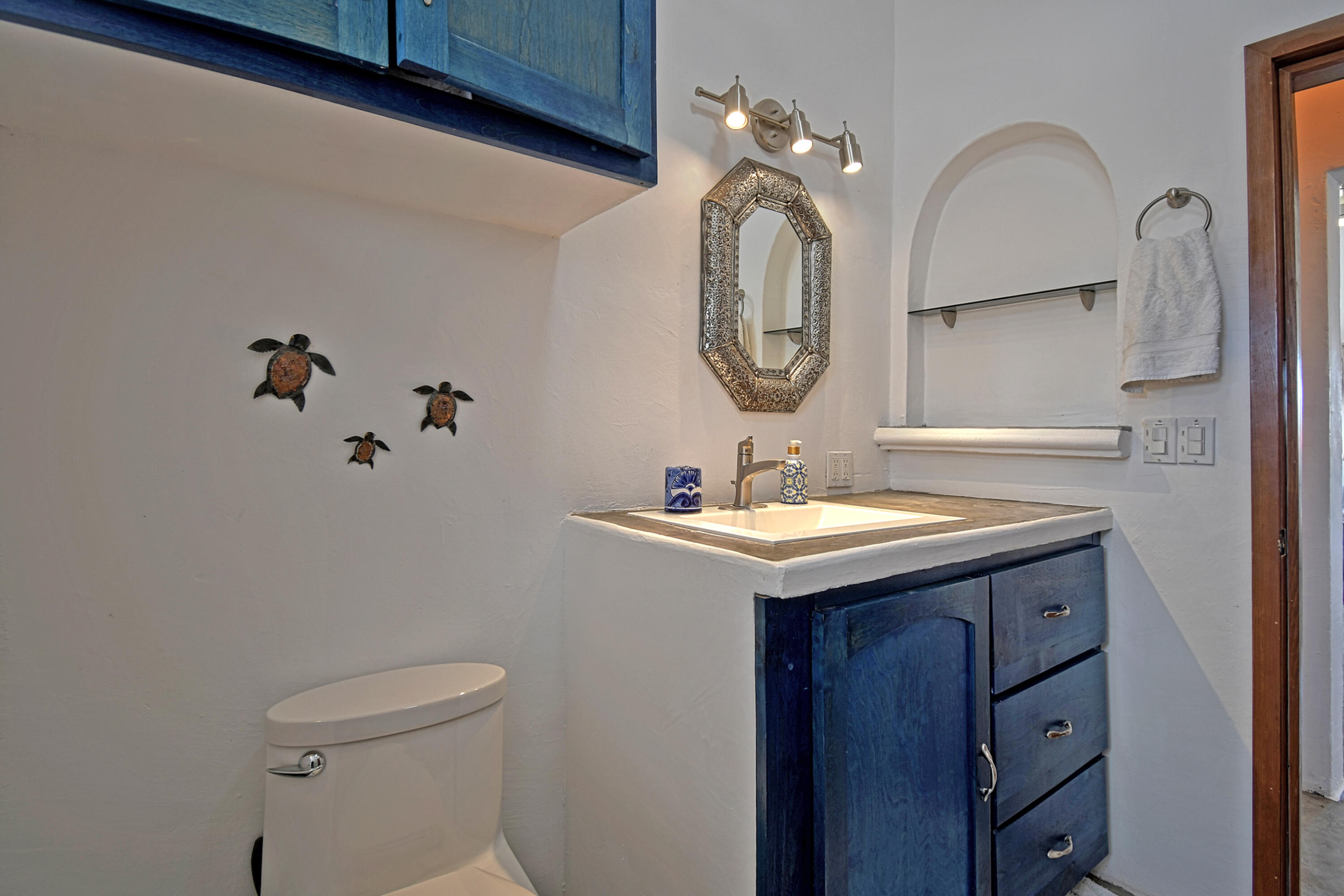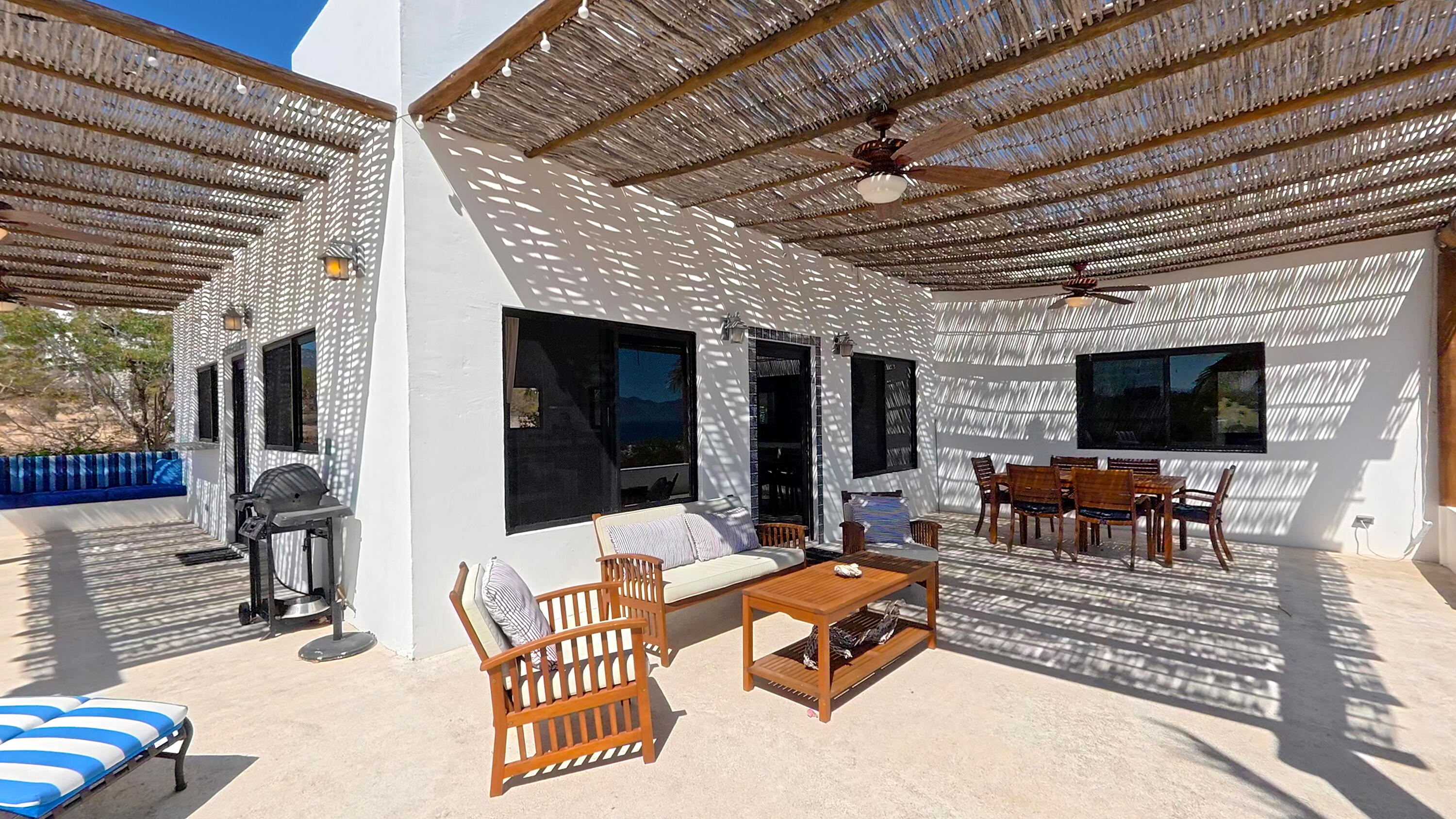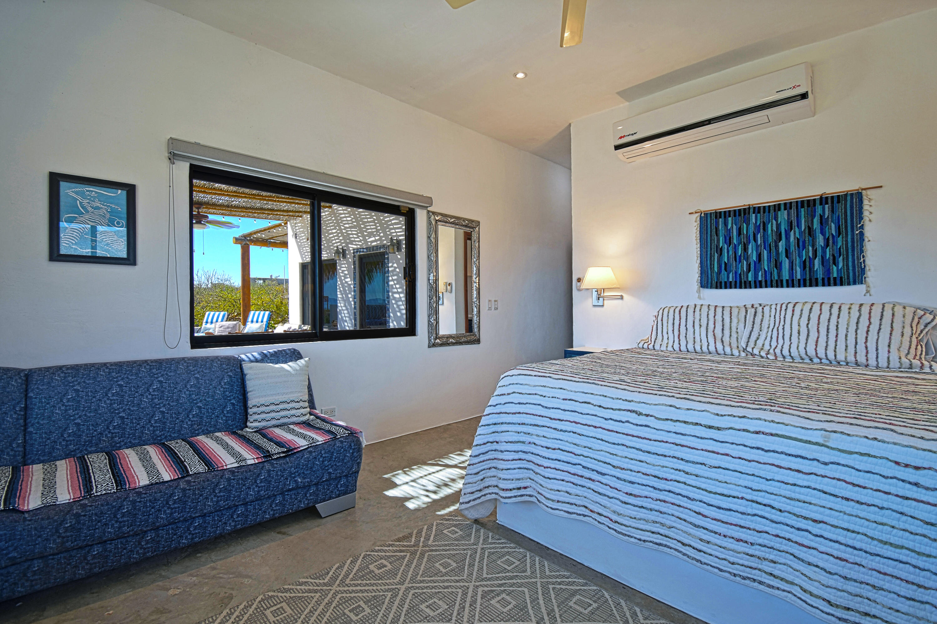 Bright, breezy, and full of Baja charm, this stunning 2-bedroom, 2-bath home offers effortless indoor-outdoor living. The open-concept great room centers around a spacious kitchen island beneath a striking brick cupula, with bold blue cabinetry set against crisp white walls for a fresh coastal feel. Large windows flood the home with natural light and showcase sweeping desert and Sea of Cortes views. Enjoy the outdoors from a pergola-shaded patio with multiple lounge areas, surrounded by lush bougainvillea and mature palms. Includes adjacent lot for protected views, plus a one car garage and dedicated laundry room. Located just minutes from sandy beaches and world class mountain bike/hiking trails.