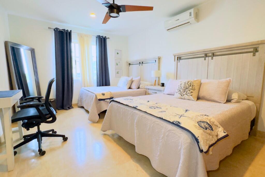 Beautiful home for sale in Residencial Ventanas, Cabo San Lucas, designed for comfort, space, and indoor-outdoor living. The property features 3 spacious bedrooms and 2.5 bathrooms, plus an additional service room with a full bathroom, ideal for staff, guests, or a home office. The master bedroom offers a large private terrace, perfect for relaxing and enjoying the surroundings. A standout feature of the home is the ocean-view rooftop, ideal for entertaining or taking in Cabo's stunning sunsets. The expansive patio is designed for outdoor living and gatherings, featuring a barbecue area, pergola, fire pit, and generous space to enjoy year-round. The home also includes a 12,500-liter water tank, providing excellent water storage capacity.