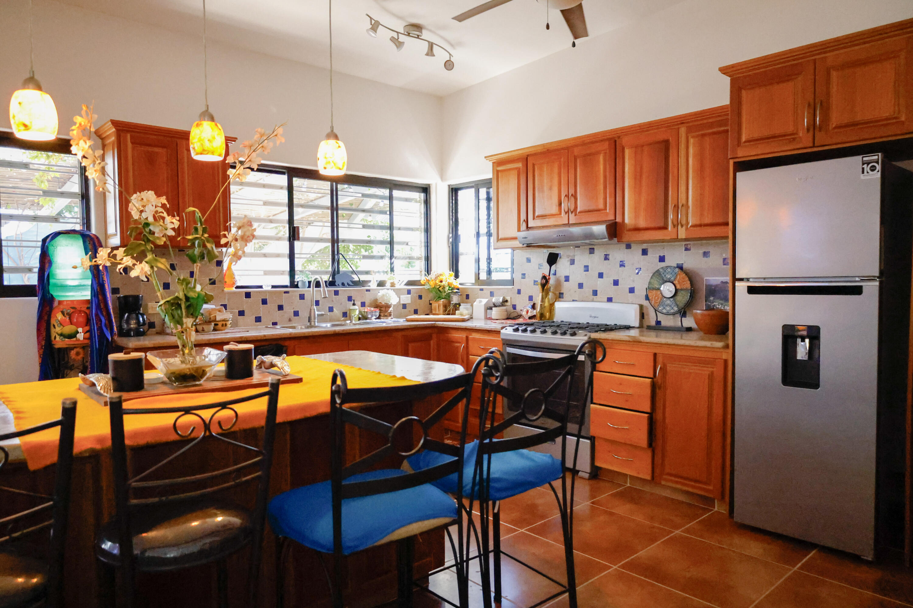 This property is a beautifully designed duplex with two independent homes on a generous 1,389 m2 lot. Each unit features a spacious bedroom, a large bathroom, a fully equipped kitchen, and a comfortable living and dining area with quality furnishings, Wi-Fi, and elegant lighting. The downstairs unit includes an additional powder room, enhanced window security, and a stunning hand-painted mosaic mural, fire pit, and landscaped garden. The upstairs unit mirrors the layout and amenities and offers a large ocean-view deck. Recent upgrades include a new generator, solar panels, a new boiler, and a freshly painted exterior. The lush outdoor area features palm trees, bougainvillea, and fruit trees. This is a true turnkey beachside property with excellent potential for customization.