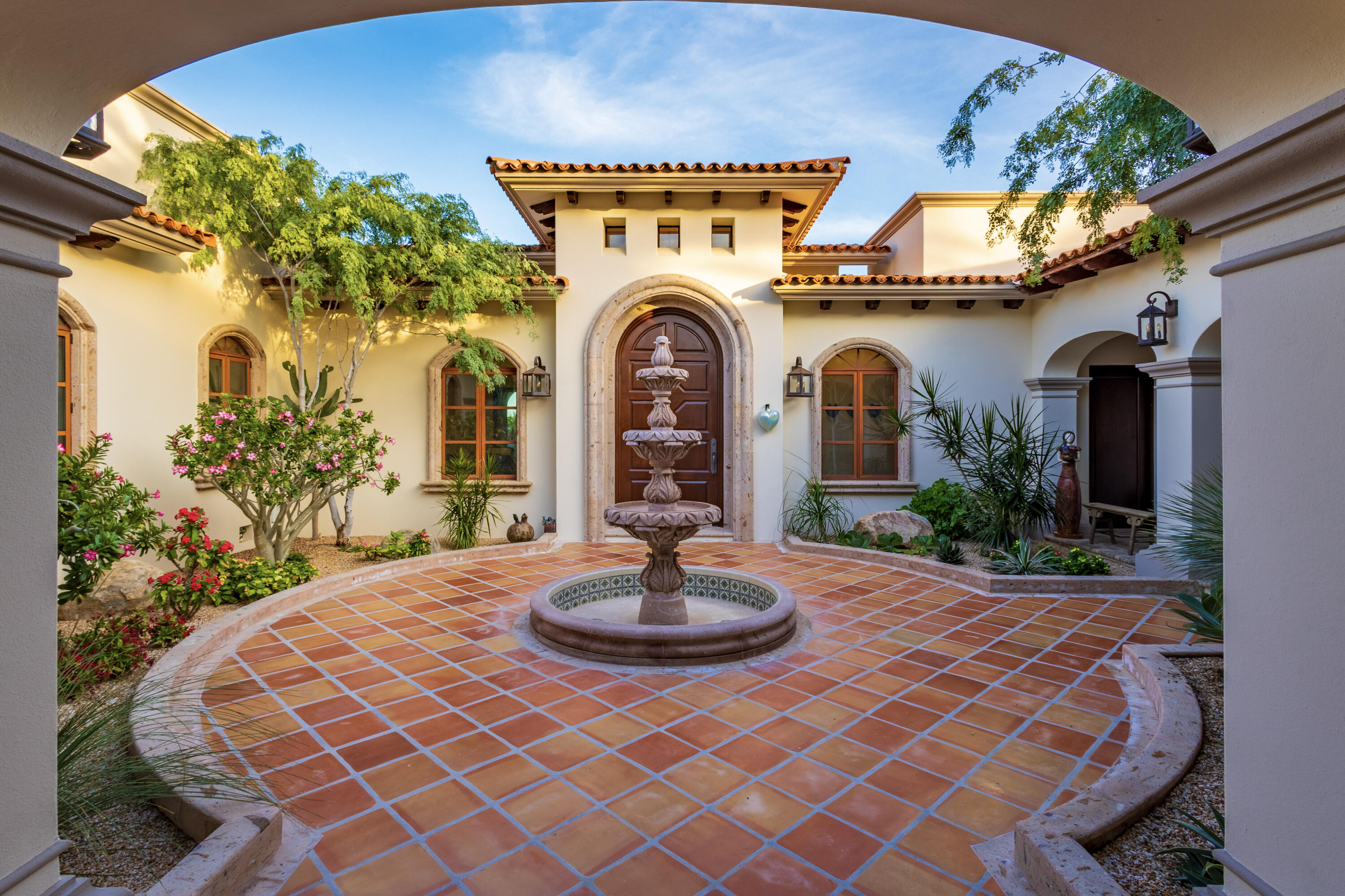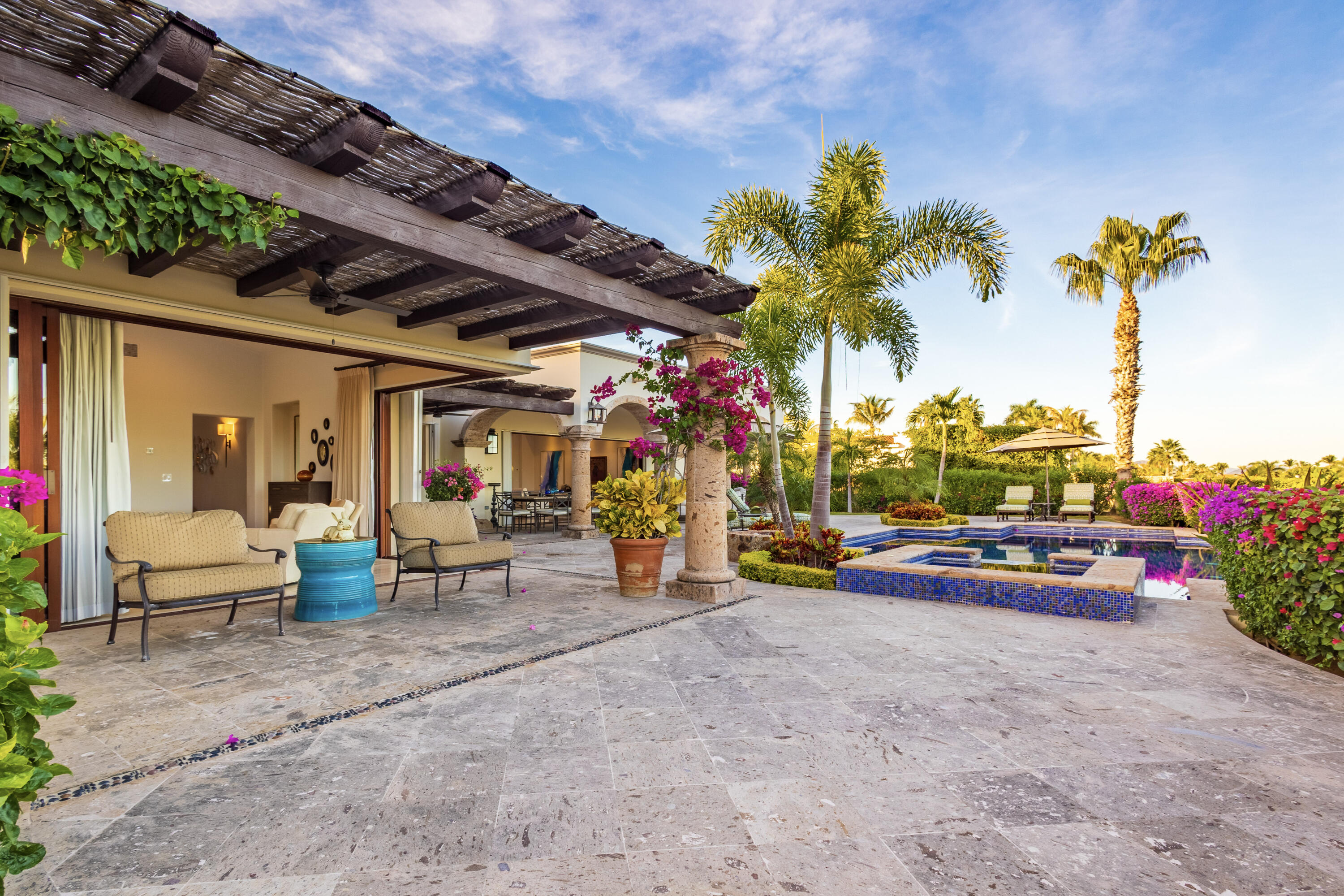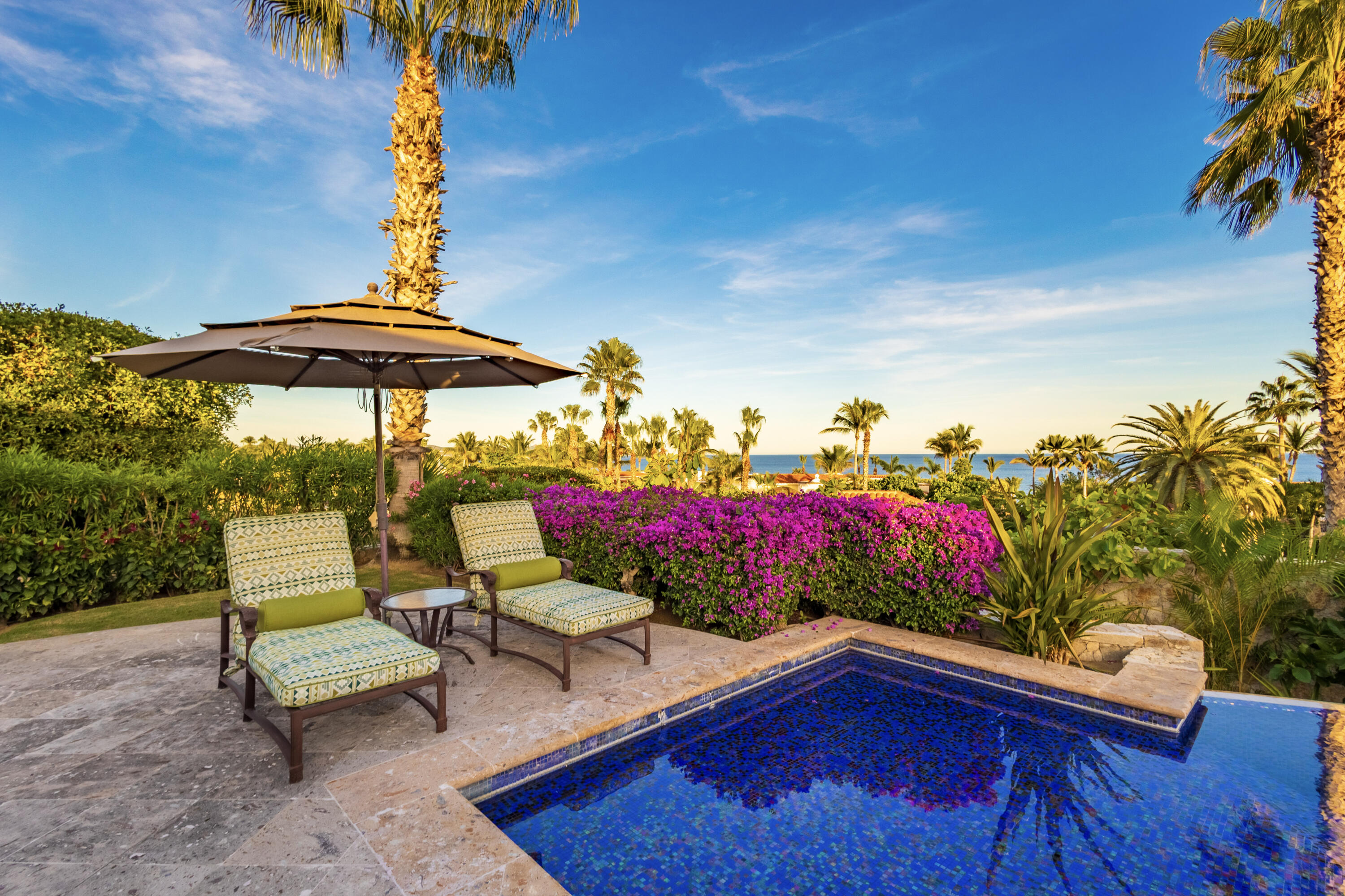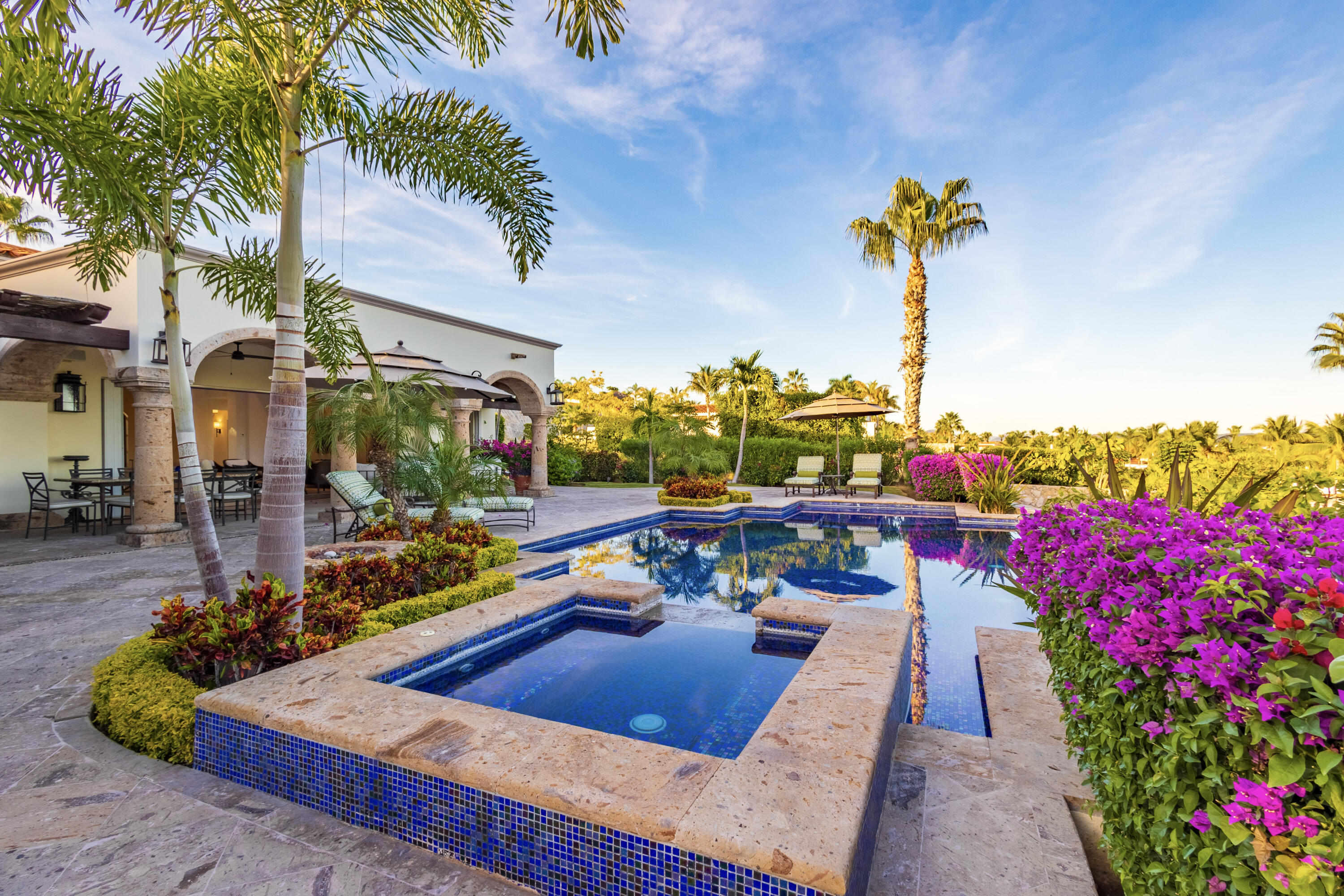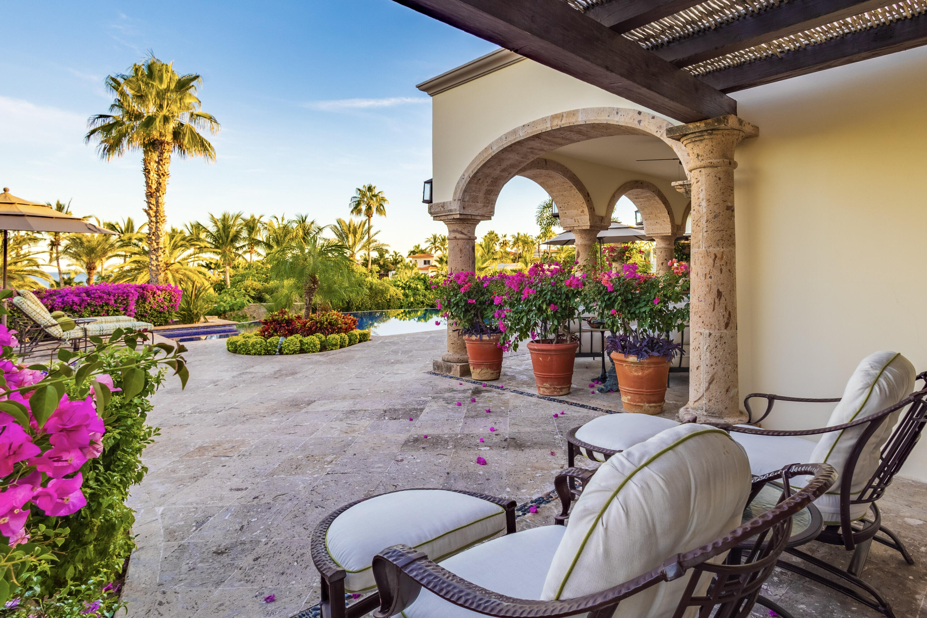 Casa Plumeria is a beautifully designed, single-level 4-bedroom hacienda-style home located within the prestigious gated community of Caleta Loma in Palmilla. Thoughtfully upgraded while preserving its authentic Mexican charm, the home features three bedrooms in the main house and a separate casita located off the courtyard, ideal for guests or added privacy. You enter the home through a beautifully landscaped courtyard, surrounded by colorful plumerias and bougainvillea that carry throughout the entire property. The landscaping creates a high level of privacy and gives the home a peaceful, tucked-away feel, while still enjoying ocean views framed by lush greenery.