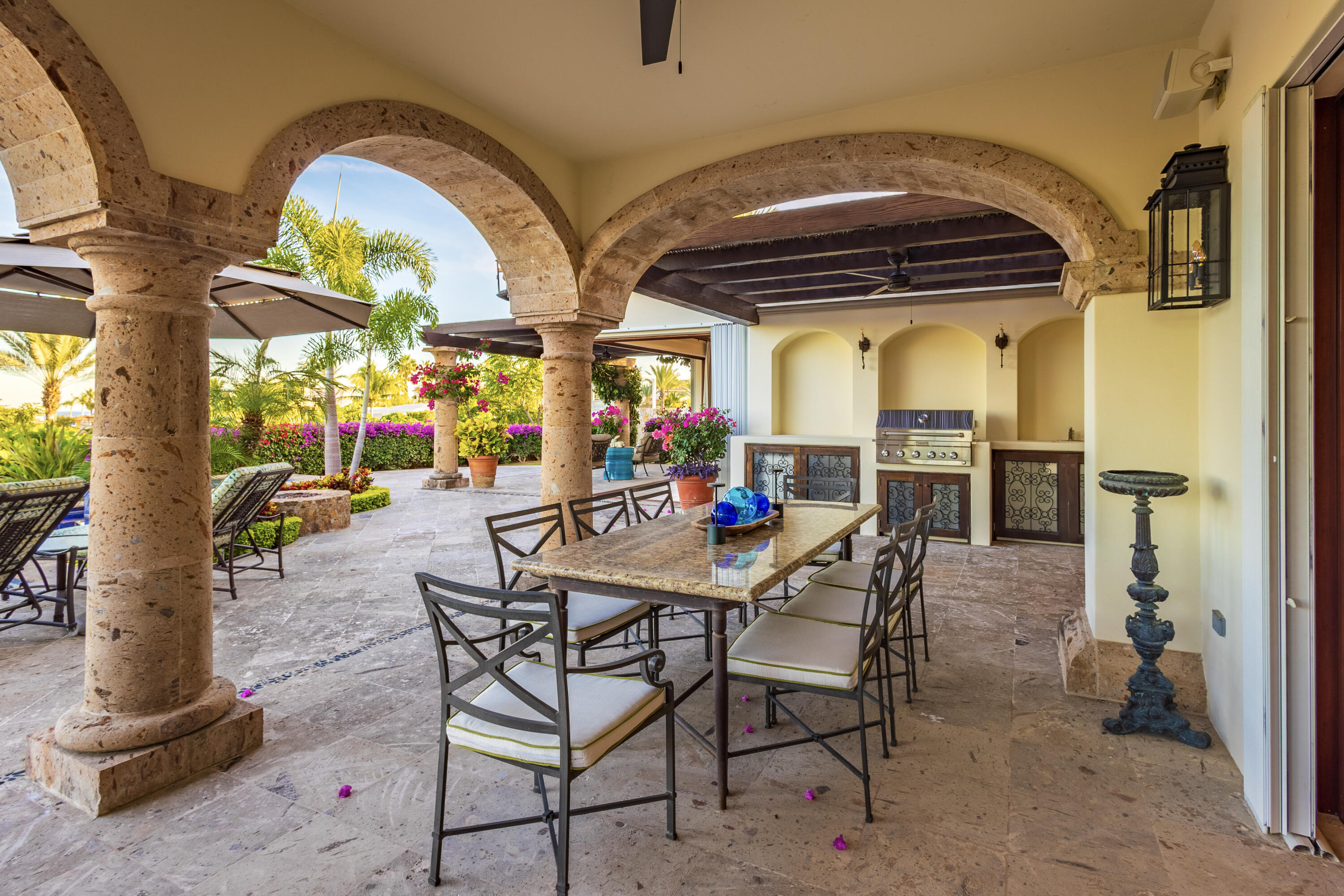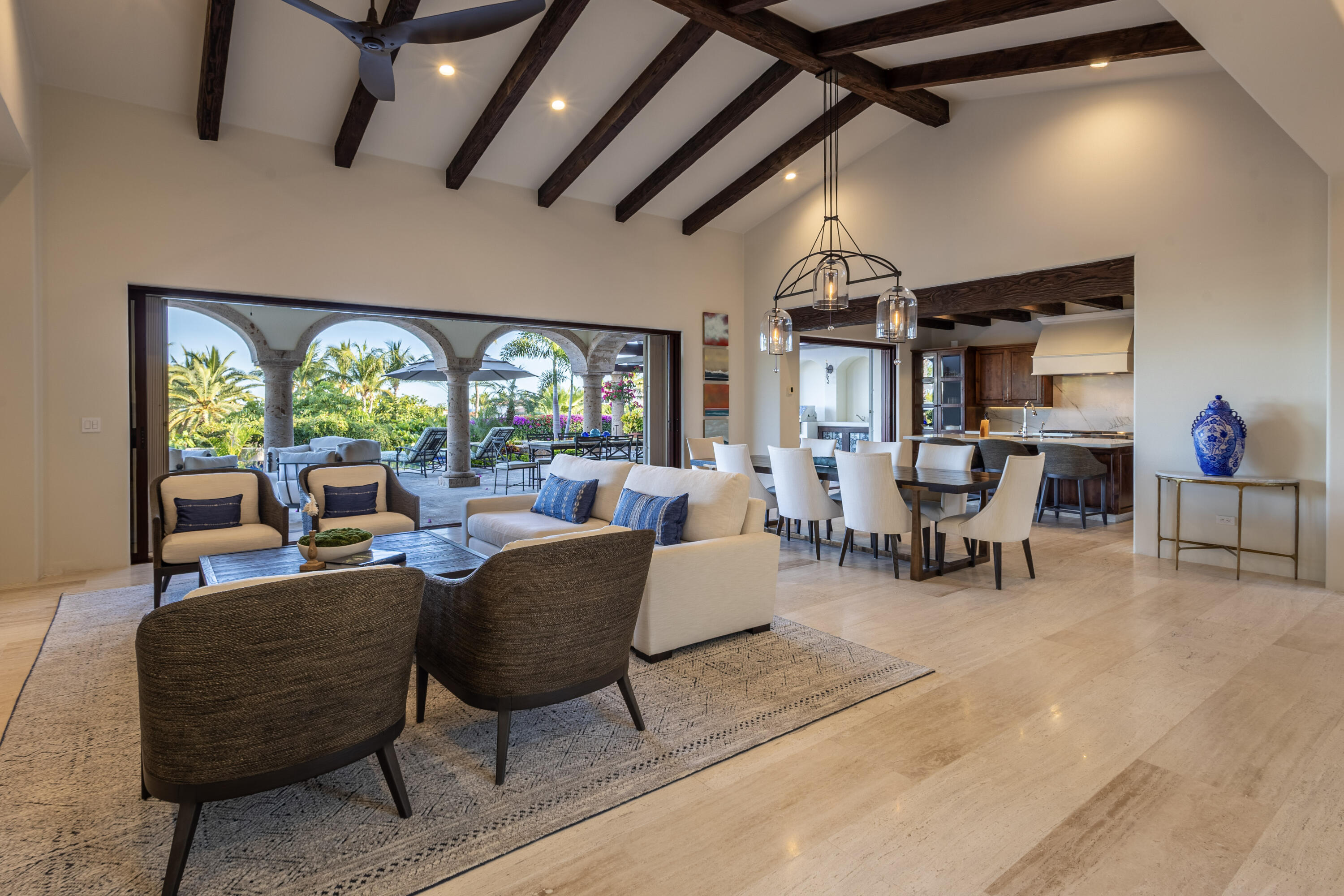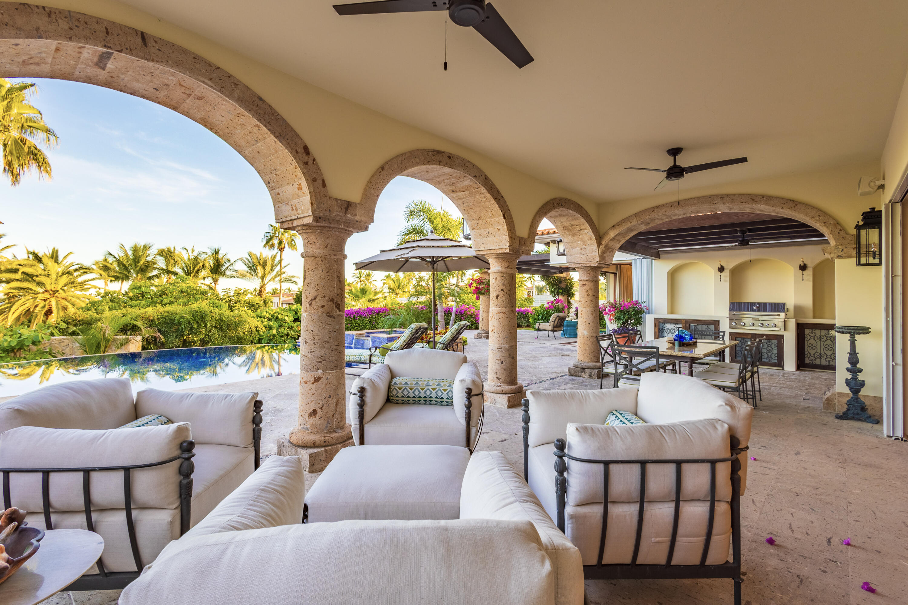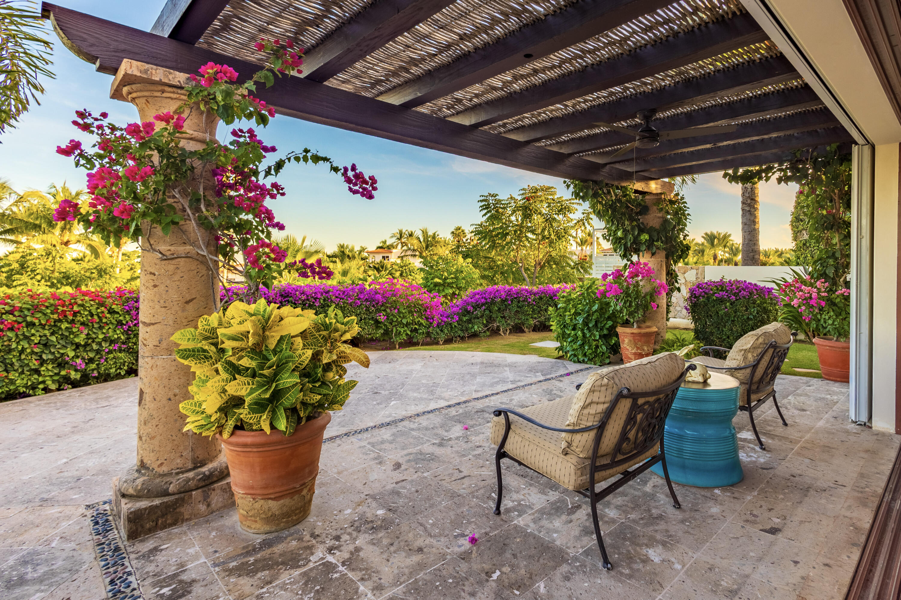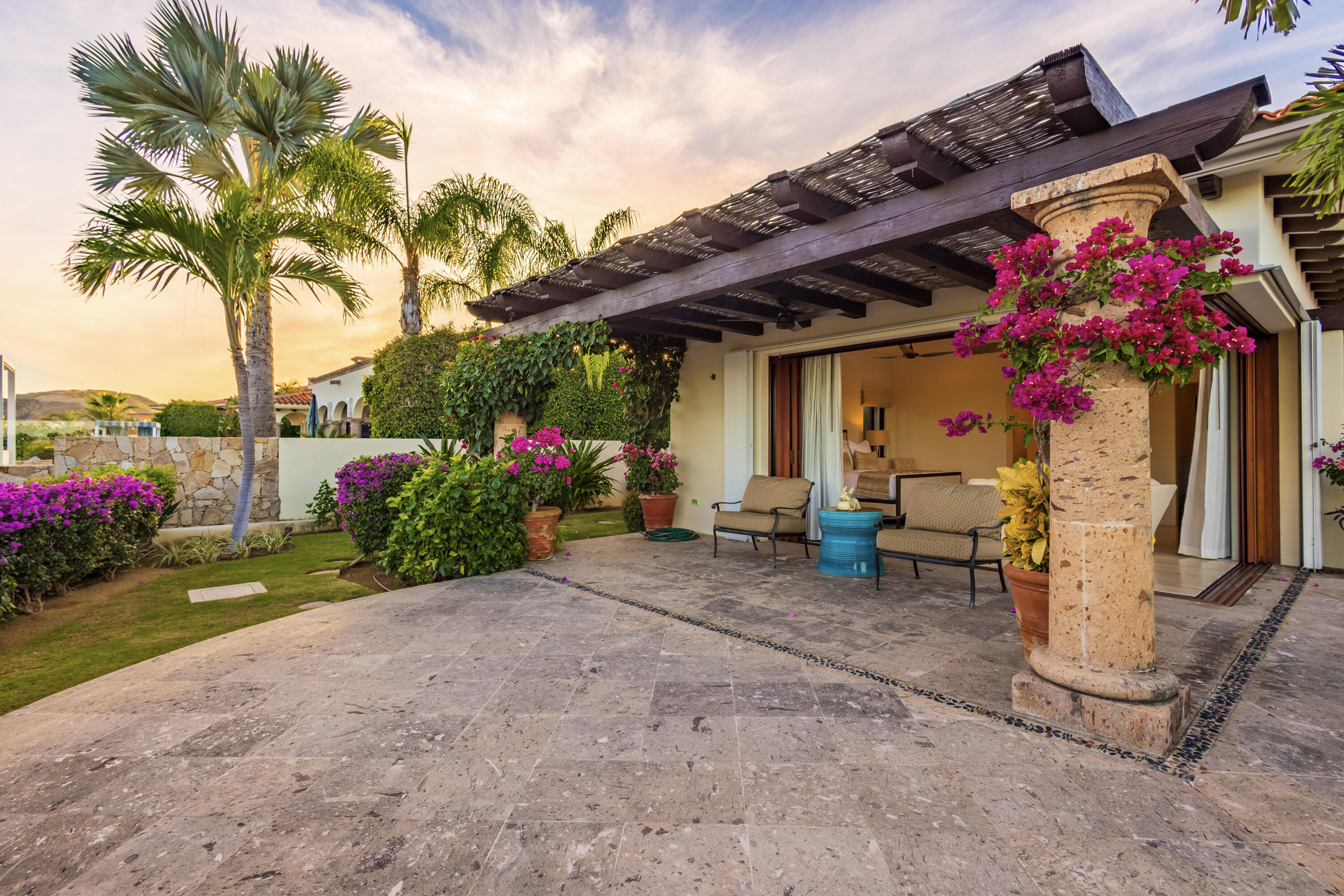 Casa Plumeria is a beautifully designed, single-level 4-bedroom hacienda-style home located within the prestigious gated community of Caleta Loma in Palmilla. Thoughtfully upgraded while preserving its authentic Mexican charm, the home features three bedrooms in the main house and a separate casita located off the courtyard, ideal for guests or added privacy. You enter the home through a beautifully landscaped courtyard, surrounded by colorful plumerias and bougainvillea that carry throughout the entire property. The landscaping creates a high level of privacy and gives the home a peaceful, tucked-away feel, while still enjoying ocean views framed by lush greenery.