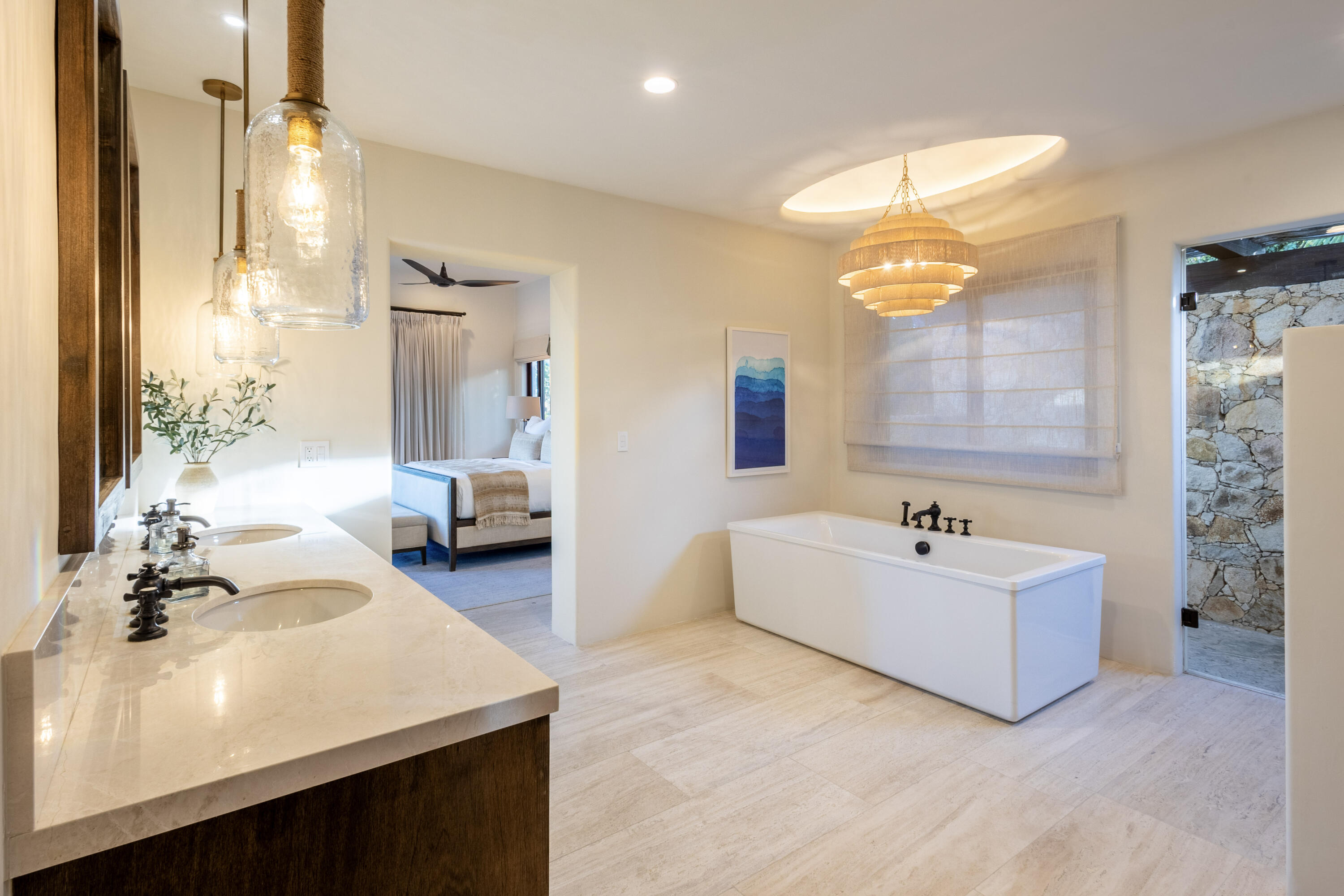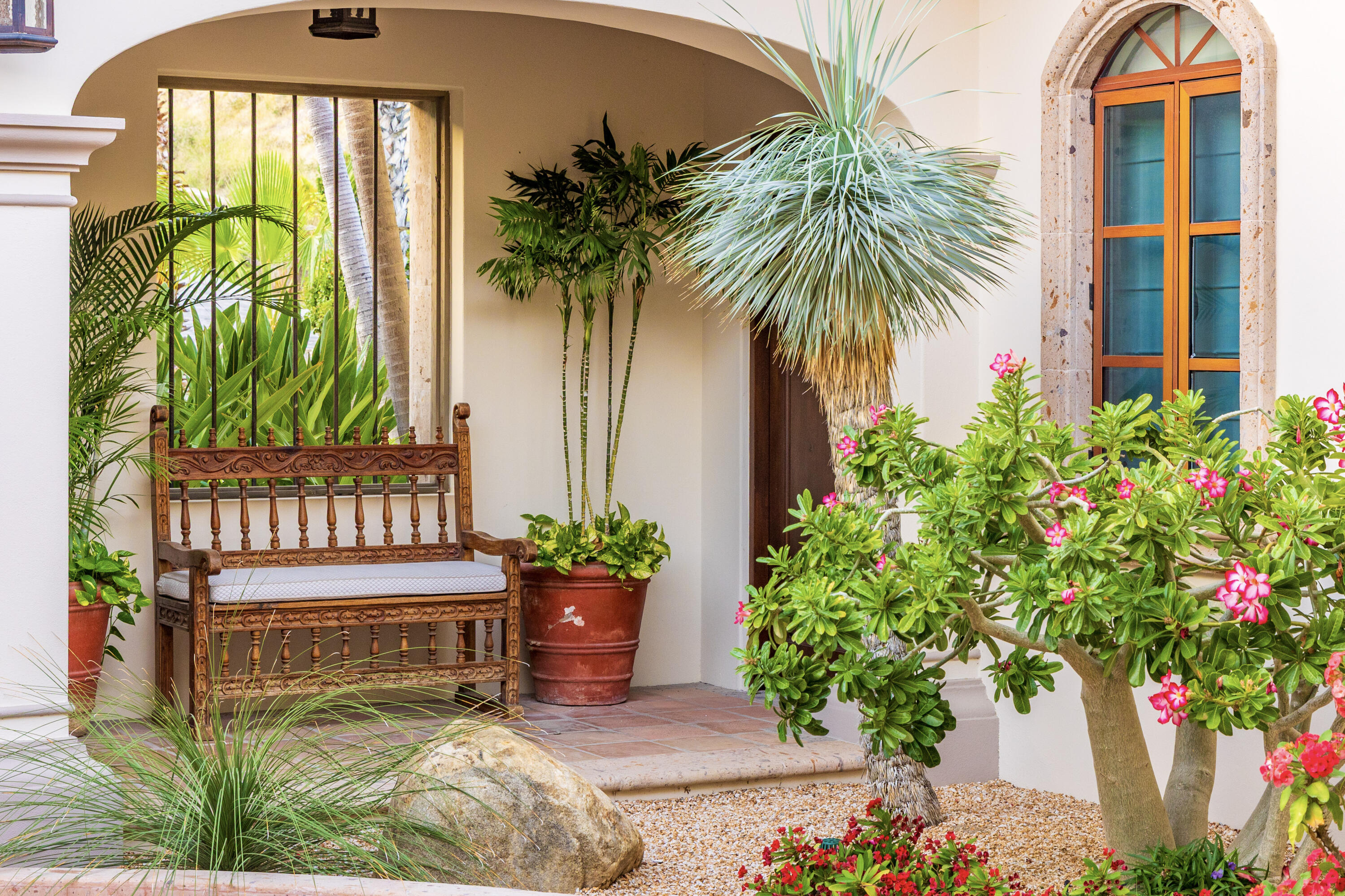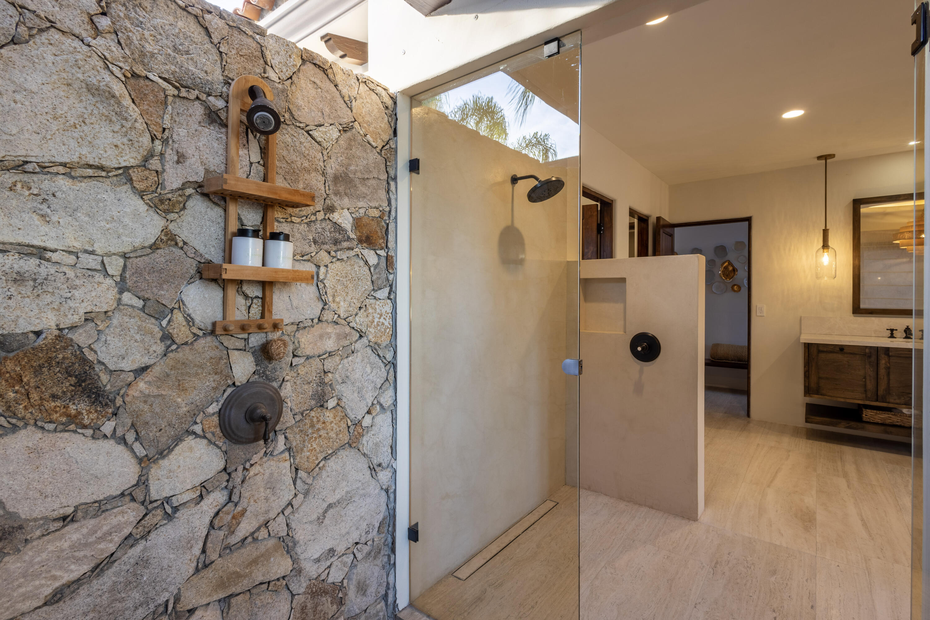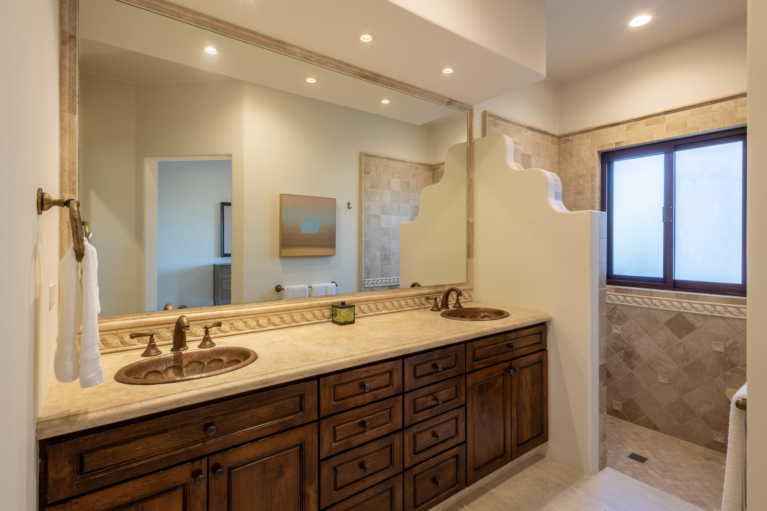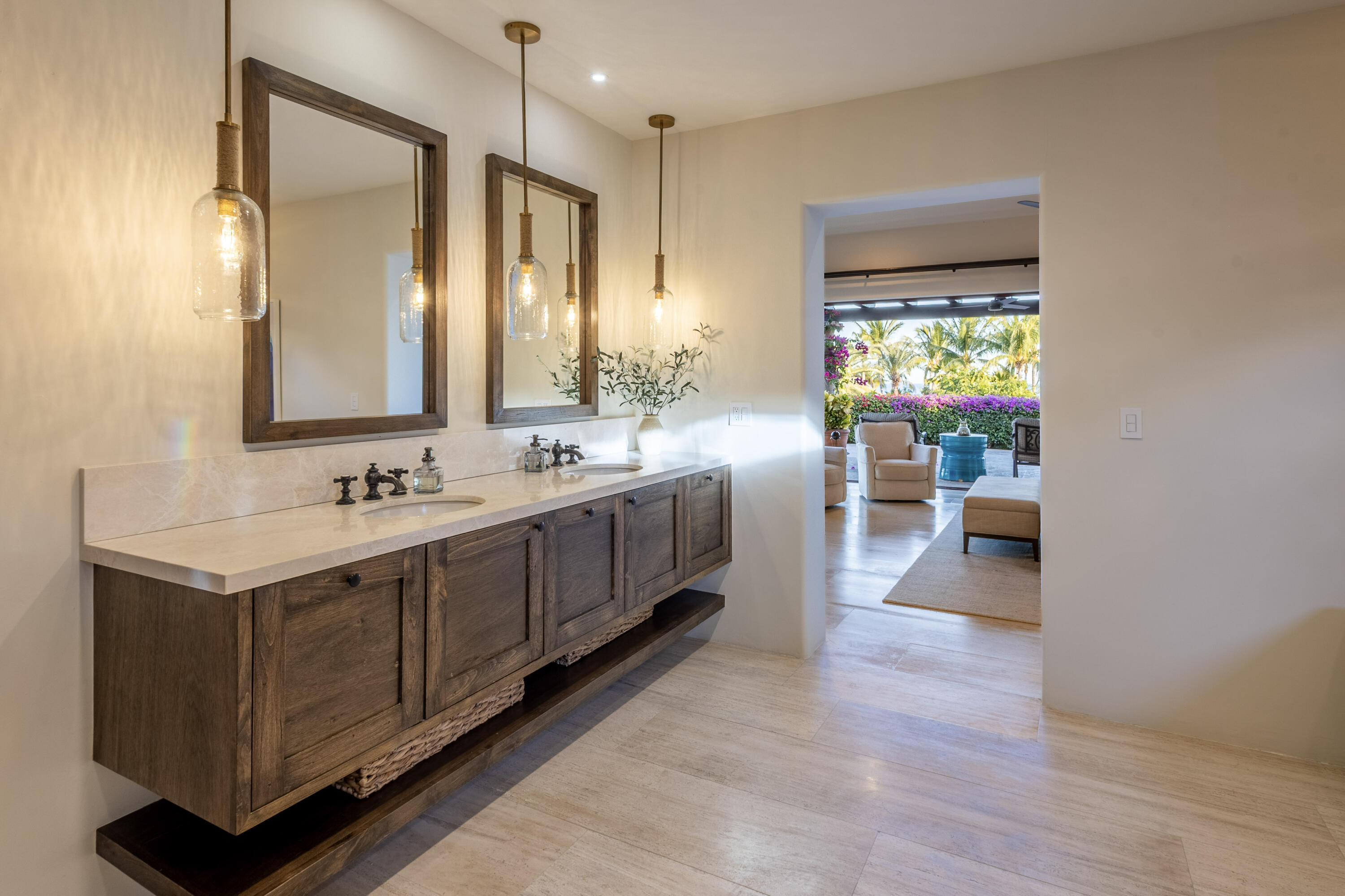 Casa Plumeria is a beautifully designed, single-level 4-bedroom hacienda-style home located within the prestigious gated community of Caleta Loma in Palmilla. Thoughtfully upgraded while preserving its authentic Mexican charm, the home features three bedrooms in the main house and a separate casita located off the courtyard, ideal for guests or added privacy. You enter the home through a beautifully landscaped courtyard, surrounded by colorful plumerias and bougainvillea that carry throughout the entire property. The landscaping creates a high level of privacy and gives the home a peaceful, tucked-away feel, while still enjoying ocean views framed by lush greenery.