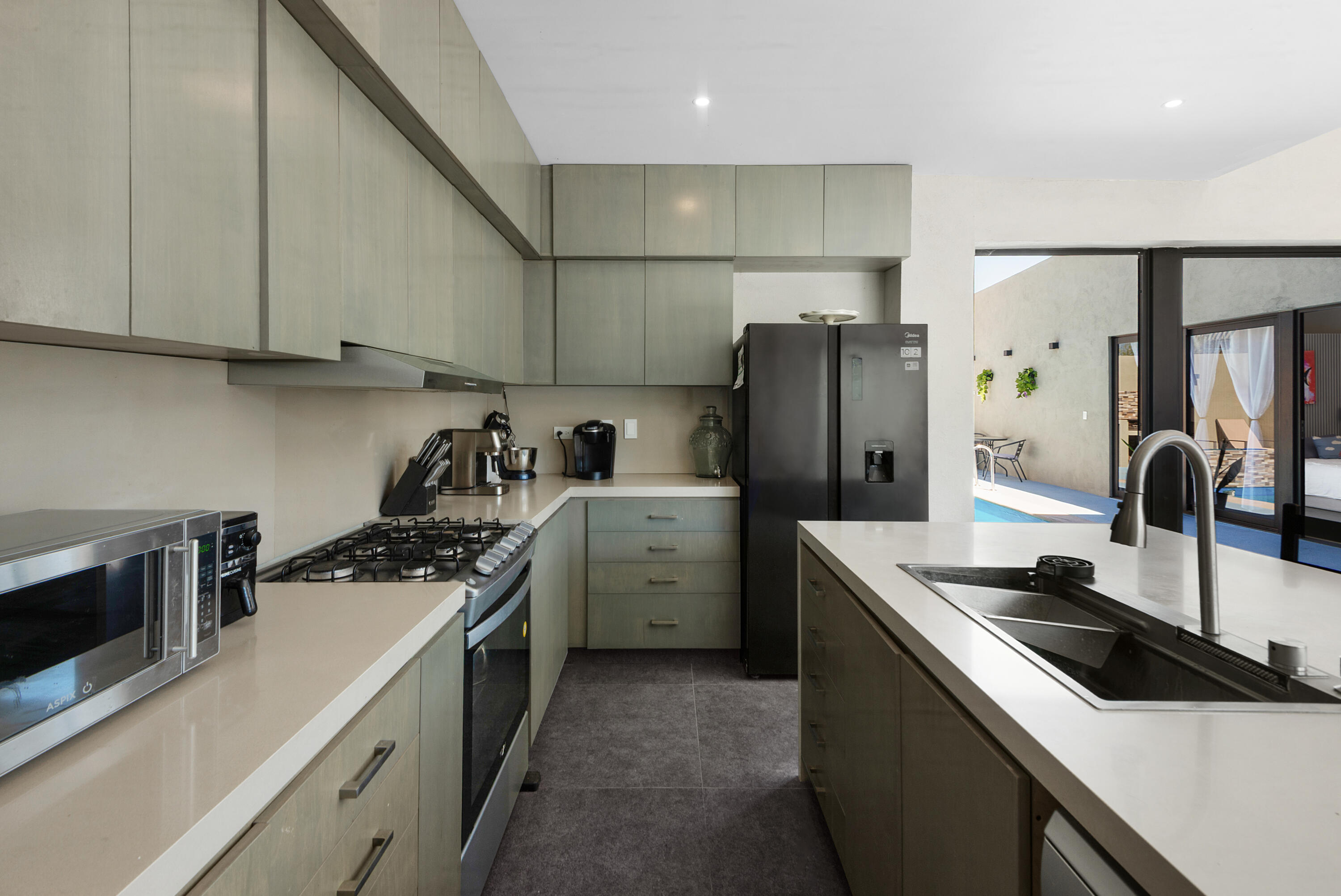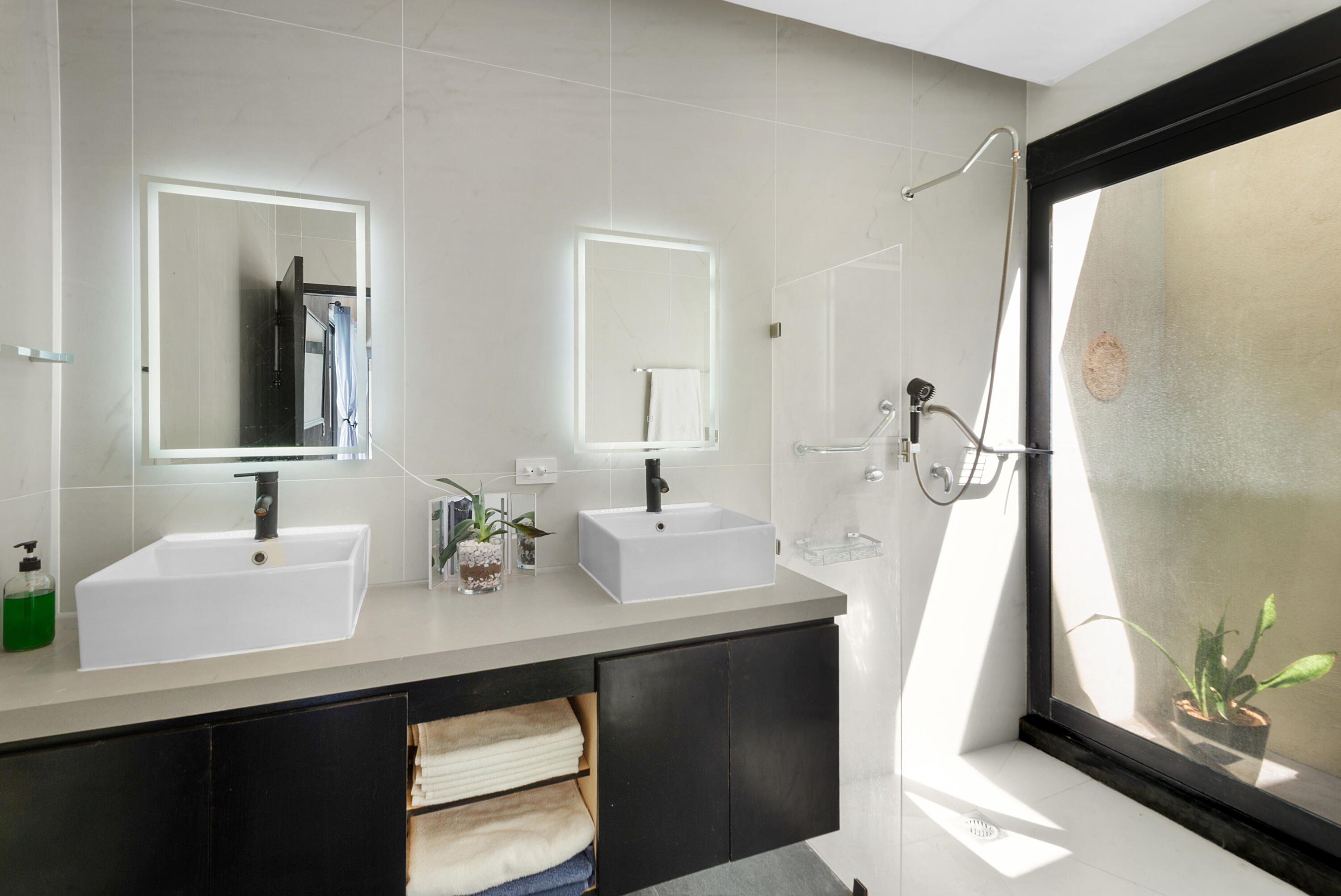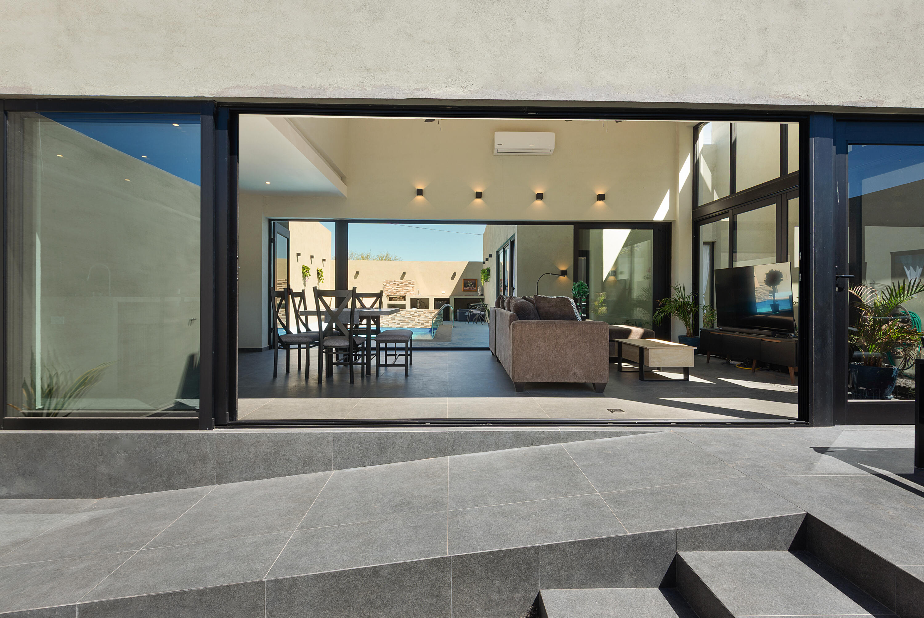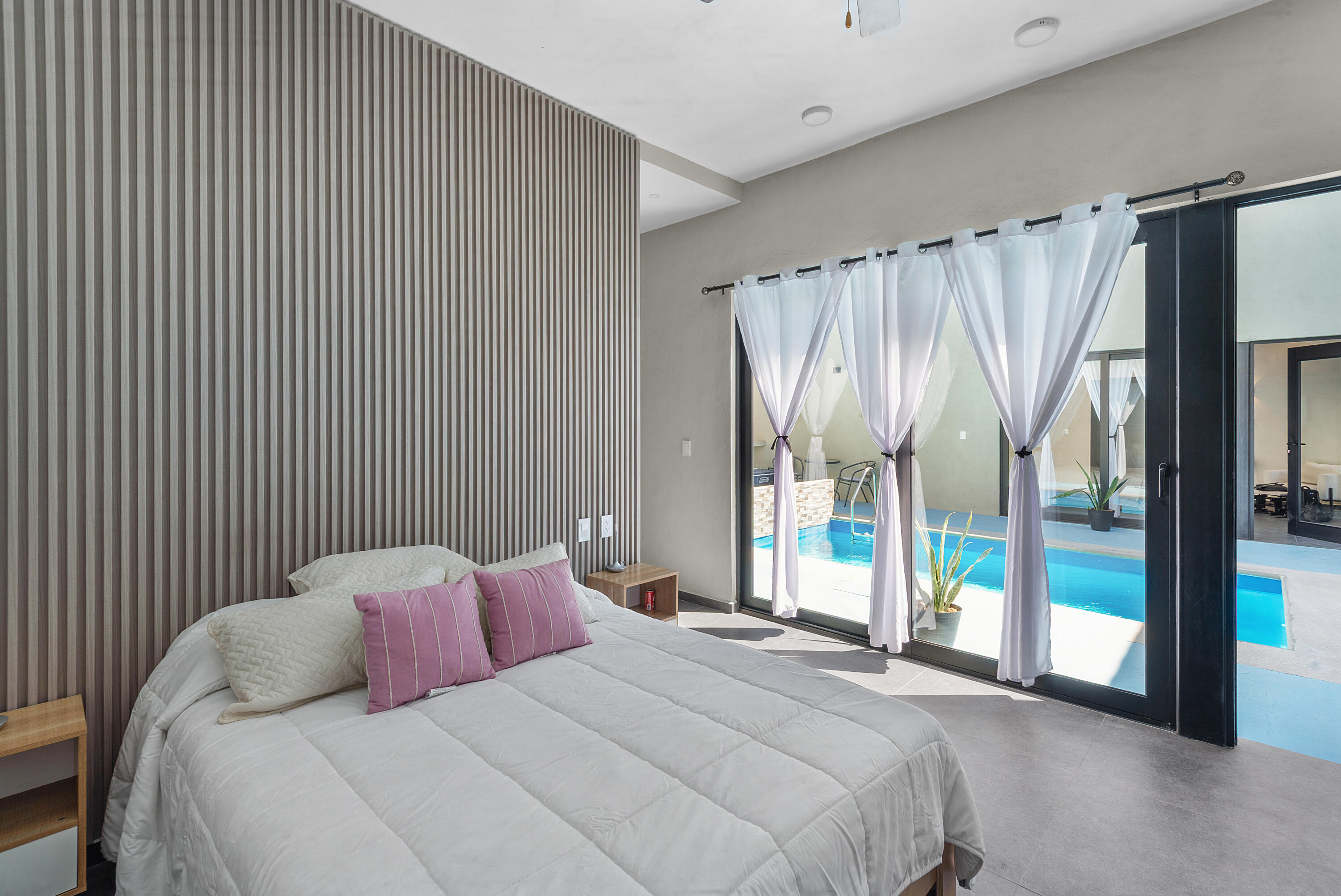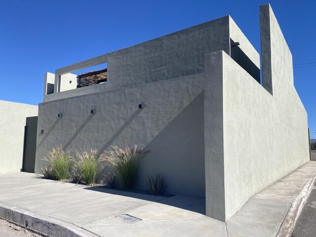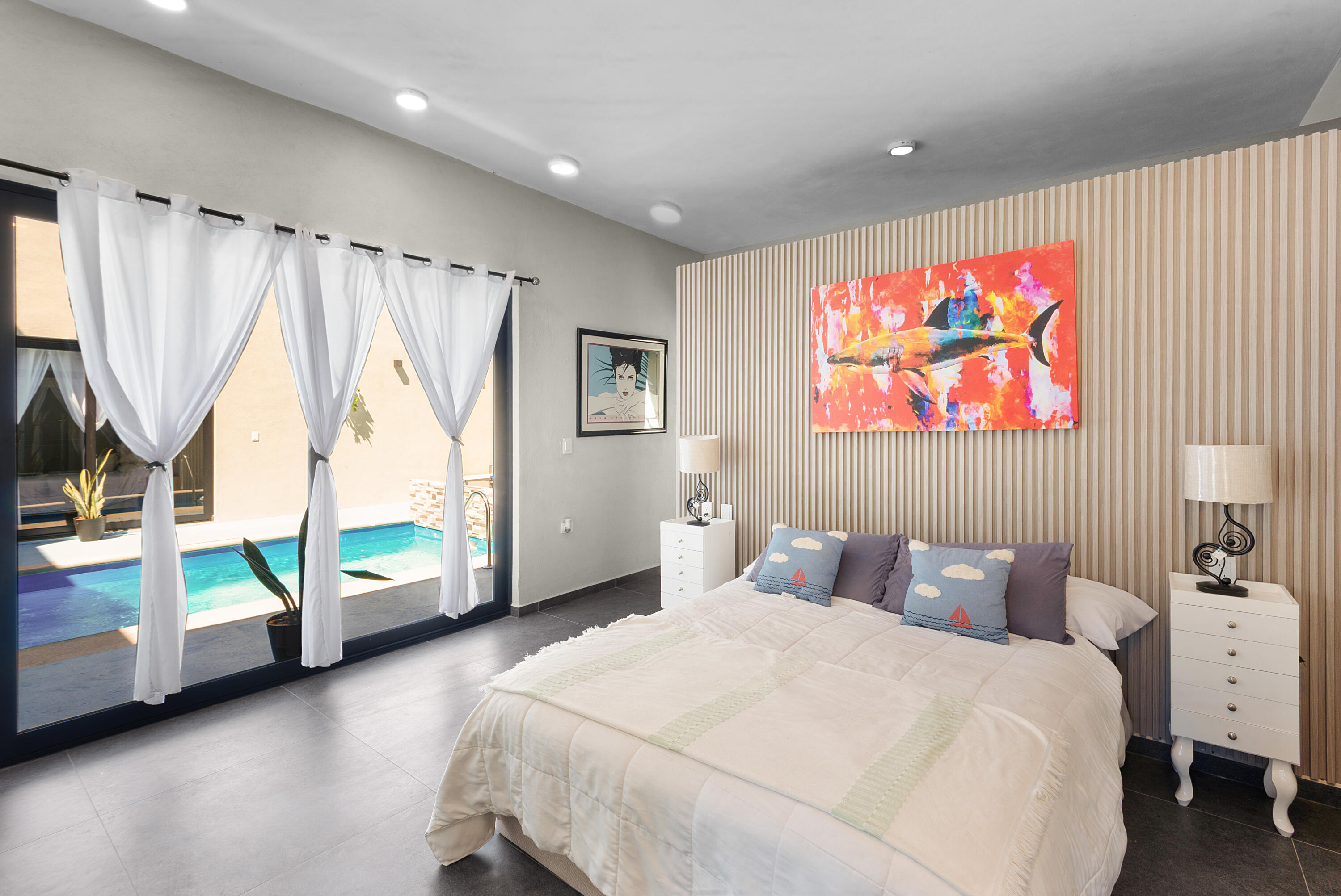 Casa San Antonio - Contemporary Comfort in a Private Setting - Casa San Antonio is a beautifully designed single-story residence that blends clean contemporary architecture with the tranquility of Baja living. Centered around a light-filled interior patio, the home creates a seamless connection between indoor and outdoor spaces while offering privacy and comfort throughout. The layout features two spacious primary suites, each with its own ensuite bath, plus a convenient half bath for guests. The open-concept living and dining areas flow effortlessly toward the outdoor terrace and private swimming pool -- ideal for relaxing, entertaining, or simply enjoying the peaceful surroundings.