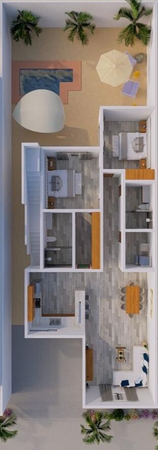 Casa Elite redefines single-level living with elegant design and upgraded finishes throughout. This spacious 2-bedroom, 2-bath home offers an open floor plan that flows seamlessly from the living area to the outdoors, where a private pool invites relaxation and entertainment. A rooftop deck provides panoramic views of the mountains and the Sea of Cortez, perfect for sunsets and stargazing. With premium materials, refined details, and a layout that blends comfort with sophistication, Casa Elite is designed for those who want more than just a home—it's a turnkey lifestyle in La Paz. Ideal as a full-time residence, vacation retreat, or rental investment, this model delivers both elegance and value.