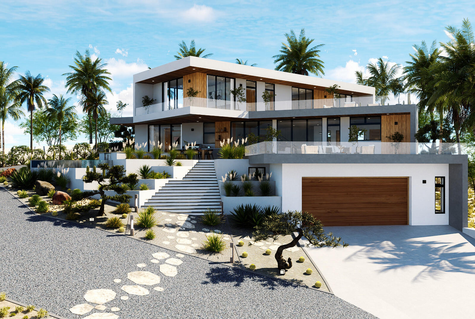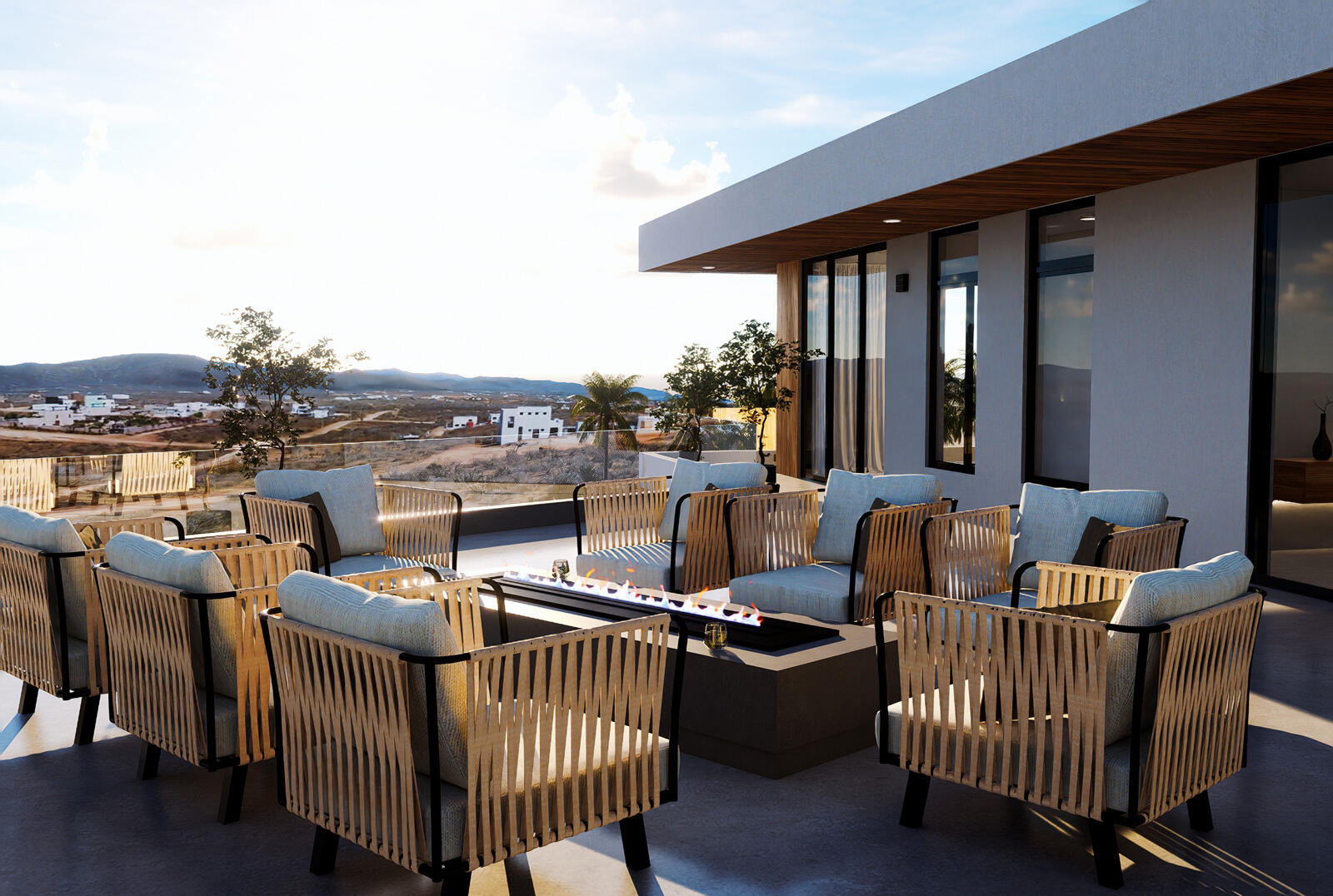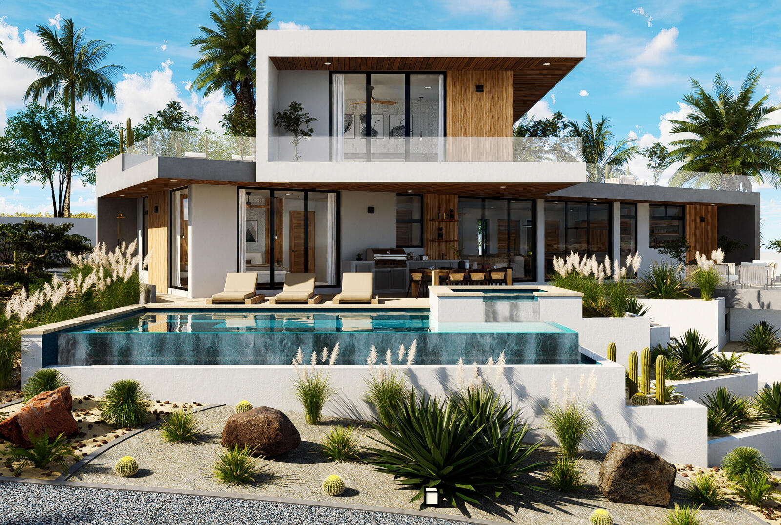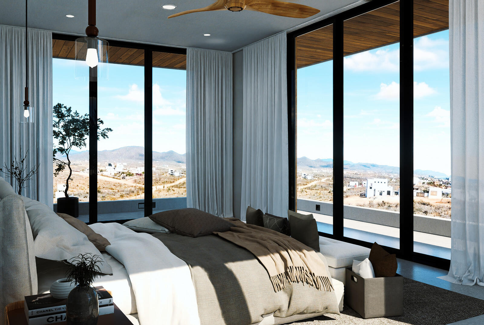 Casa Zavala rises from the coastal landscape of Cerritos / Gavilan with the quiet confidence of a modern architectural statement—clean lines, floating volumes, and a design that frames the Pacific with precision. Created by Diana Zavala Arquitectos, one of Baja California Sur's respected contemporary studios, this newly completed residence brings a rare level of craftsmanship and intention to the Pescadero coast. Set on a generous 2,000 m² view lot, the home unfolds across three levels with 355.72 m² of interior space, anchored by poured-concrete construction, glass balustrades, thoughtful spatial choreography, and an indoor-outdoor flow that responds to light, horizon, and breeze.