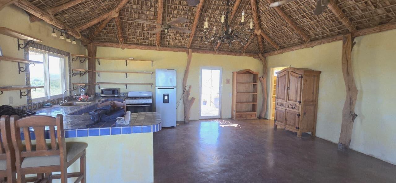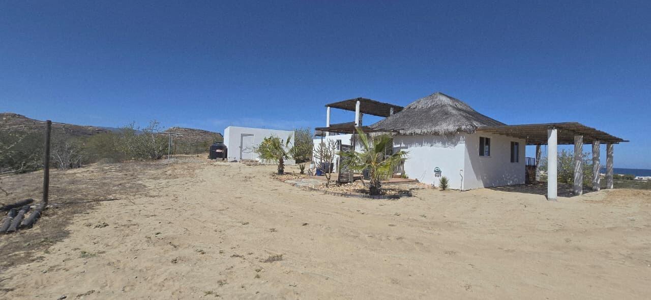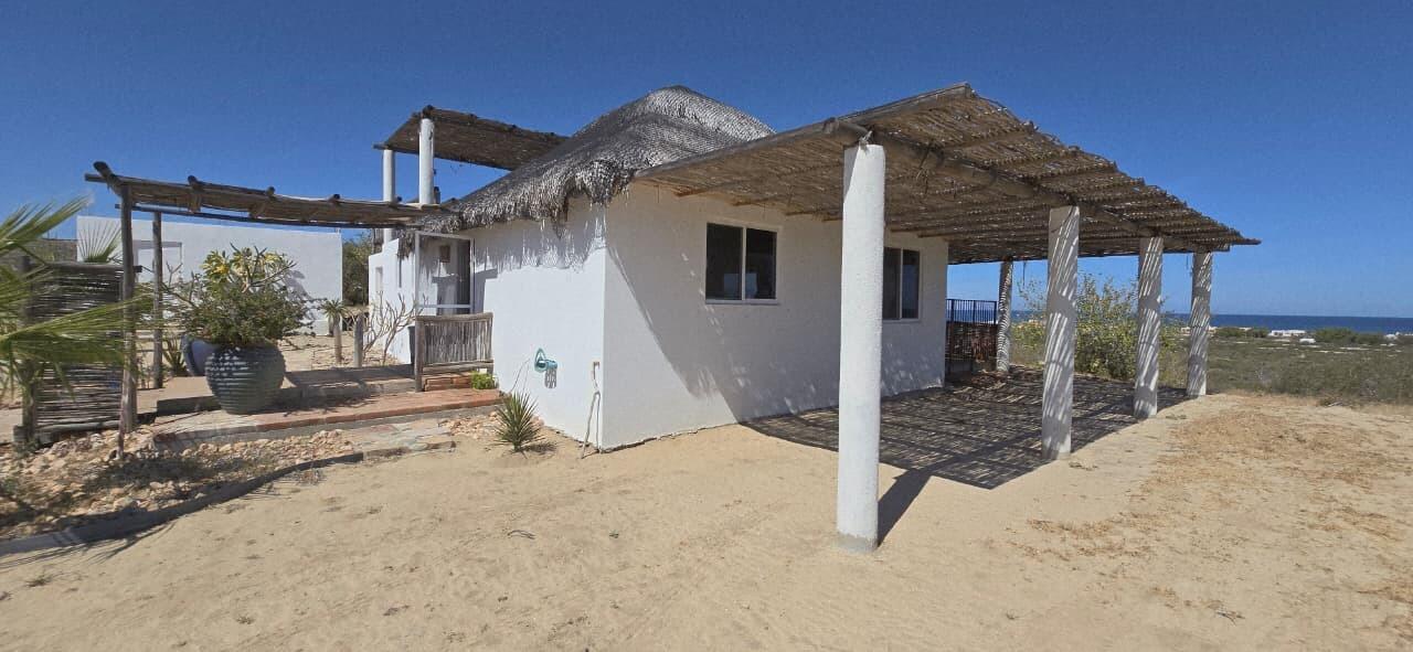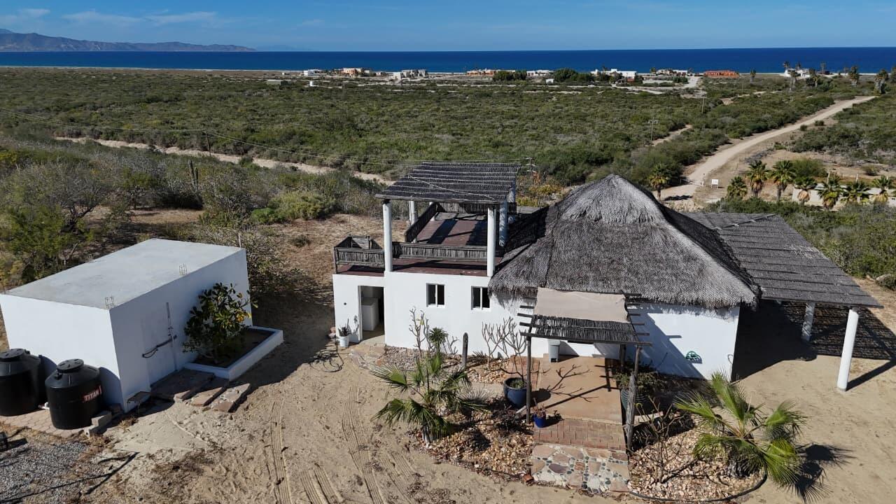 Baja-style little house with views of the Sea of Cortez. The property offers privacy and tranquility, surrounded by nature and with a constant sea breeze. Charming property with authentic South Baja rustic character, located on the Eureka-Buenavista Road, just a few minutes from the iconic Flat Top and some of the best beaches in the area. The house combines traditional palapa-style architecture with spacious open areas and panoramic terraces that capture spectacular views of the Sea of Cortez and the desert vegetation. Spacious rooftop terrace with palo de arco railings, sea views, and unforgettable sunsets all year round. Large open social area with living room, dining room, and kitchen integrated under a high palm ceiling that gives a sense of spaciousness.