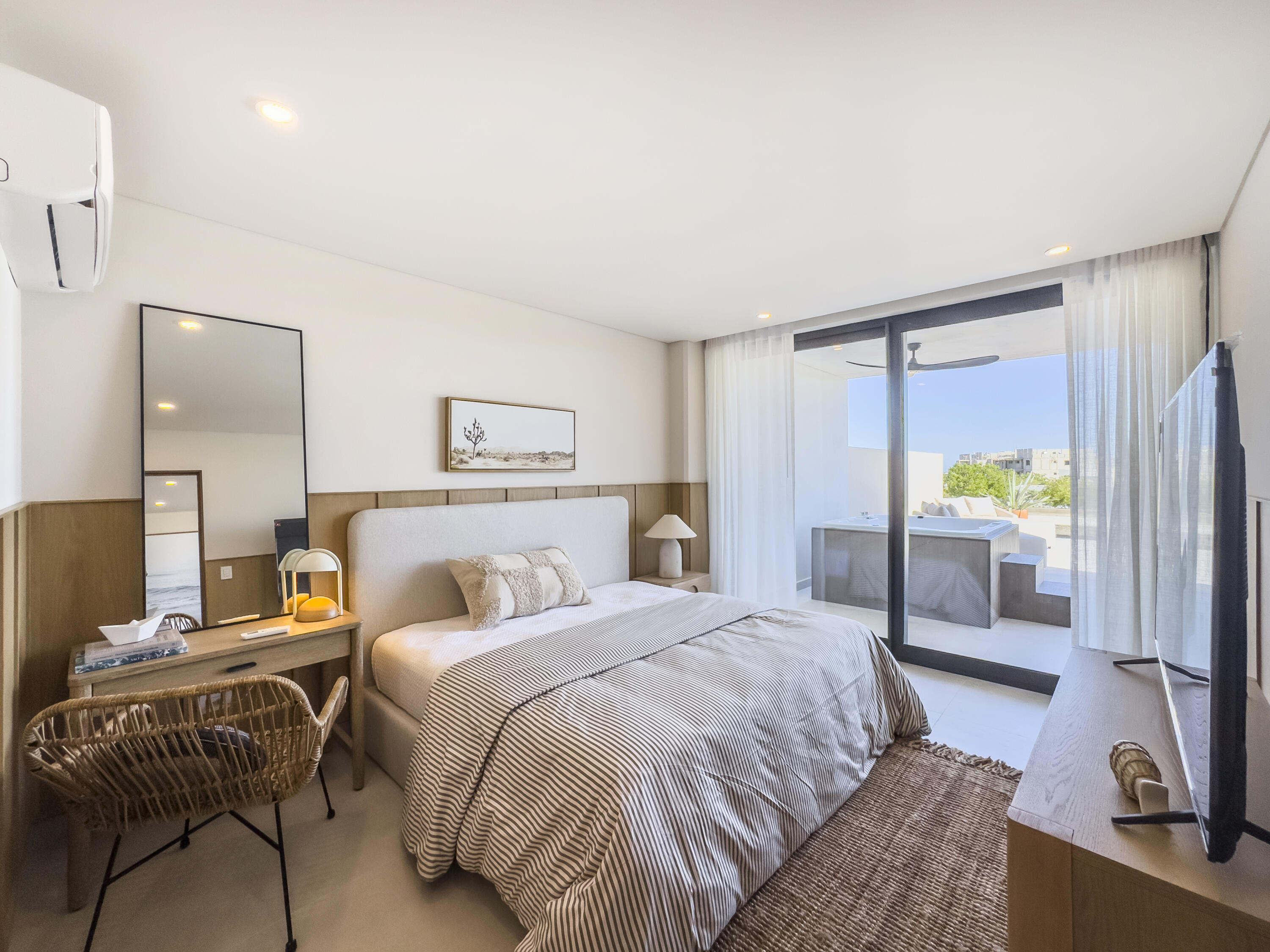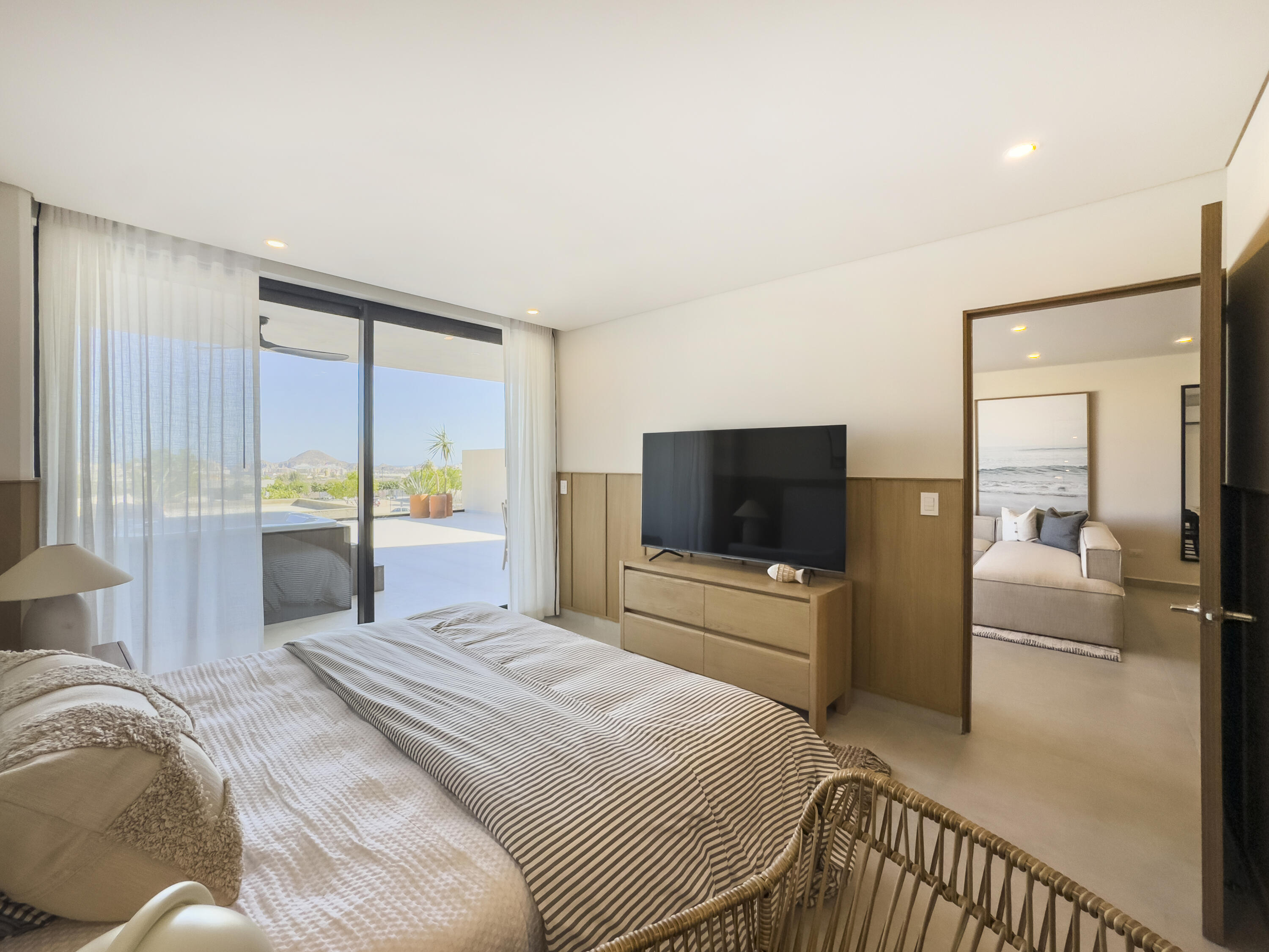 Welcome to luxury living at its finest in this stunning Cabo San Lucas condo by Grupo Quadro. With panoramic views of city, this 3-bedroom, 2-bath condo offers elegance and sophistication. Enjoy an open-concept layout with high-end finishes, quartz countertops, and top appliances. Amenities include 2 infinity pools, 2 gyms, 2 paddle & pickleball courts, fire pits, a kids' playground, and multipurpose palapa. Two underground parking spaces and storage are included. Located near hospitals, schools, and shopping, with 24/7 controlled access, this condo combines luxury and convenience. Schedule a tour today to experience Cabo's ultimate lifestyle at CIAN!