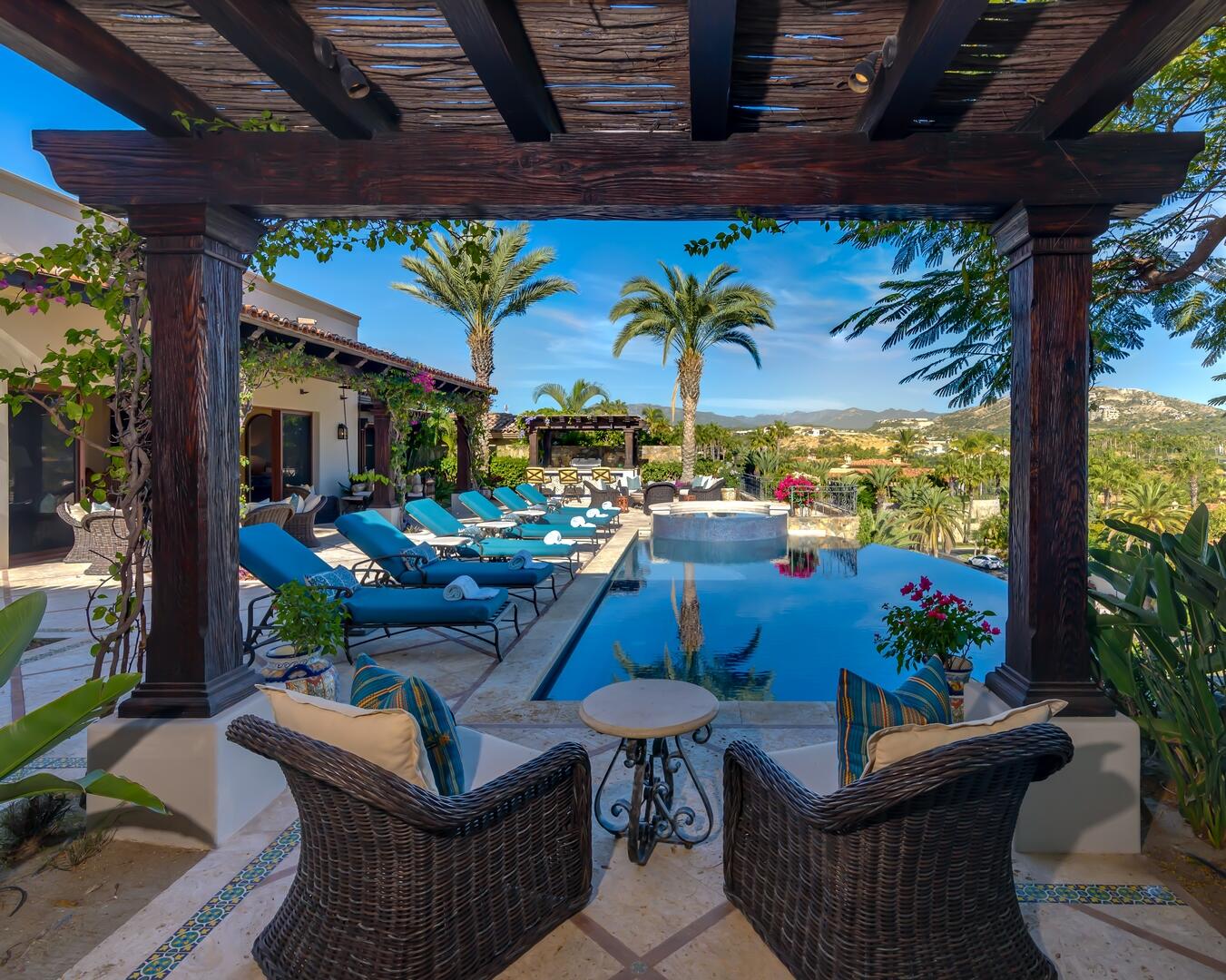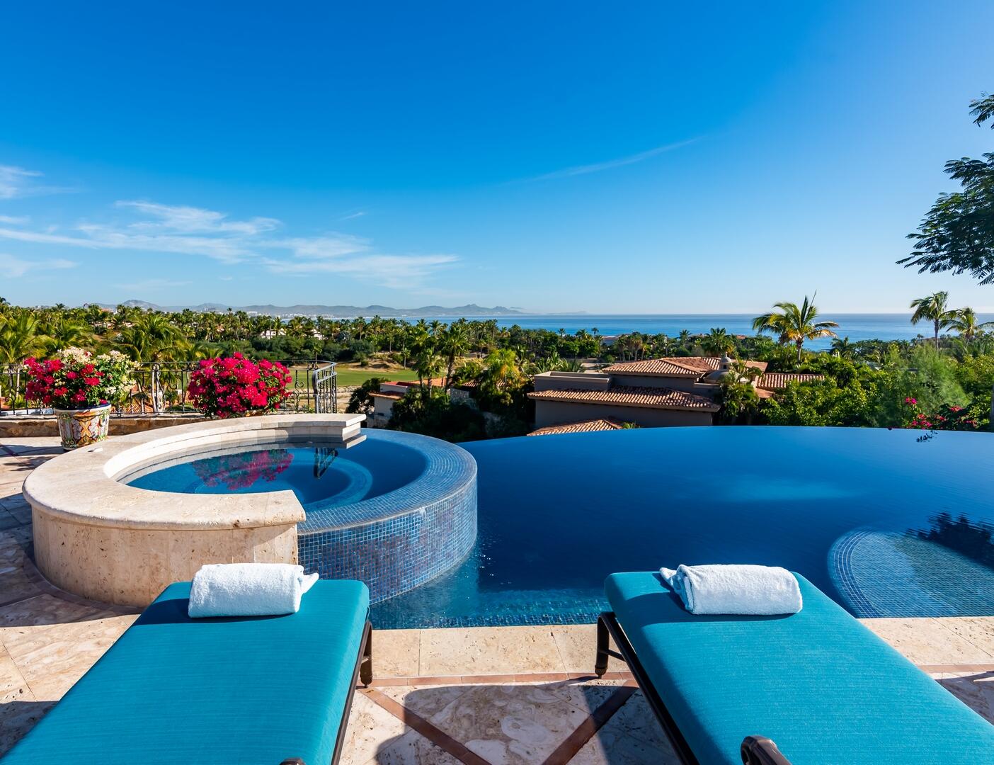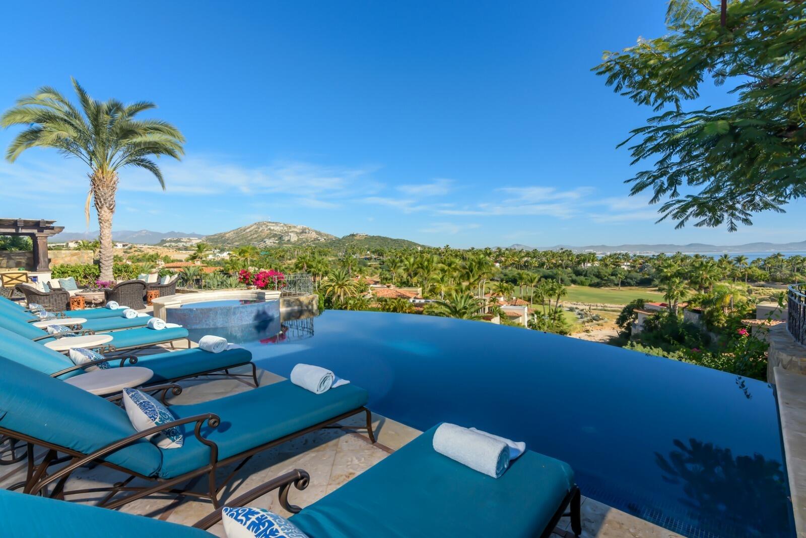 Located within the exclusive Espiritu Del Mar community, Club Casita 4 is a charming single-story home that blends Mexican traditional design with breathtaking, unobstructed views of Palmilla and San Jose Bay. The home offers five bedrooms, including two detached casitas that provide privacy and comfort for guests. A spacious fifth bedroom has been thoughtfully added, enhancing the layout, while the garage has been relocated just across the street for convenience. Presented in its original condition, the home has been freshly repainted inside, offering a refreshed canvas to personalize while maintaining its traditional charm.With no other Club Casitas currently on the market, Club Casita 4 is a rare opportunity to own a piece of Espiritu Del Mar's elegance, privacy, and remarkable views