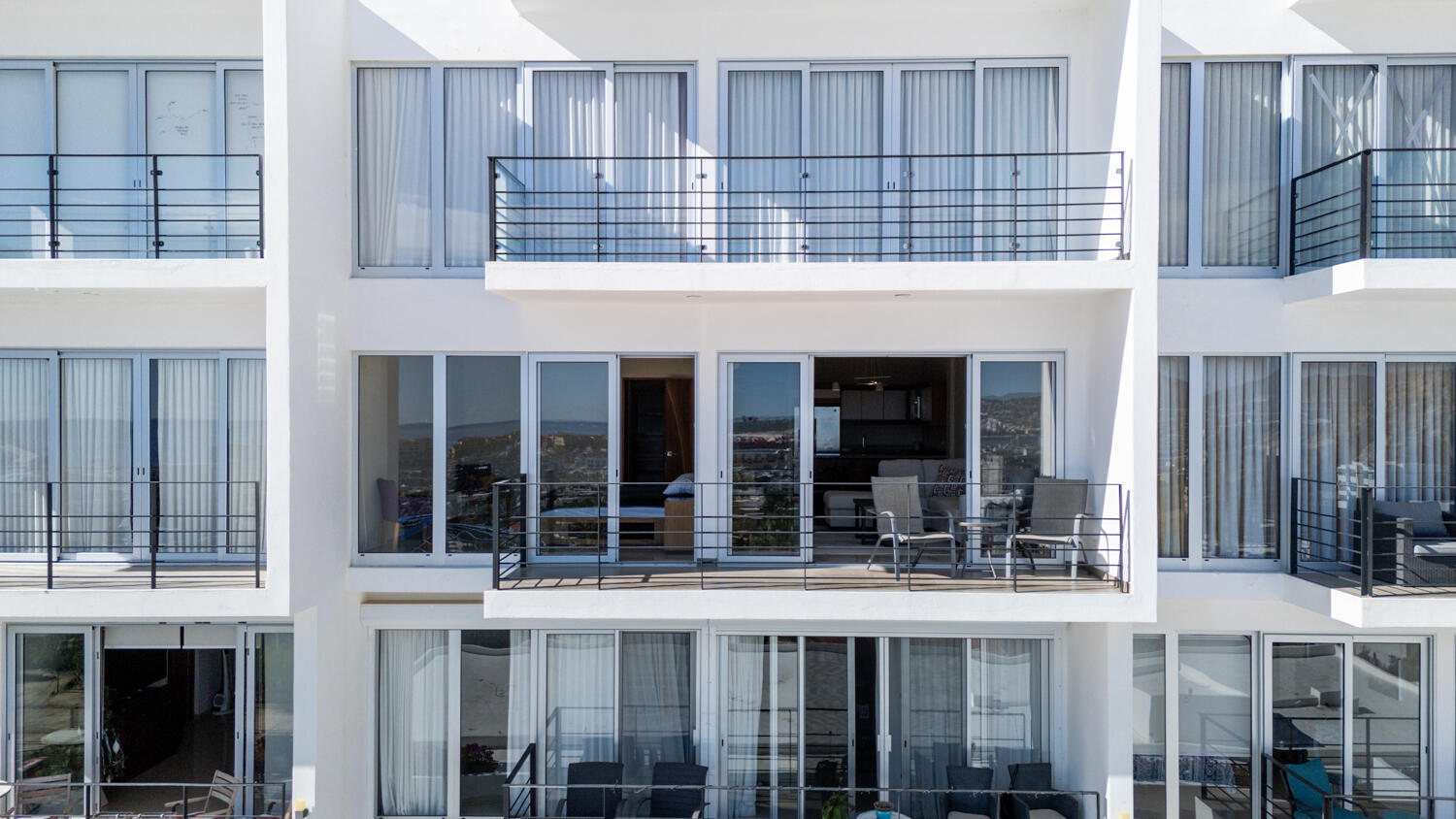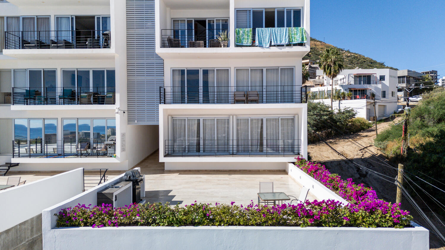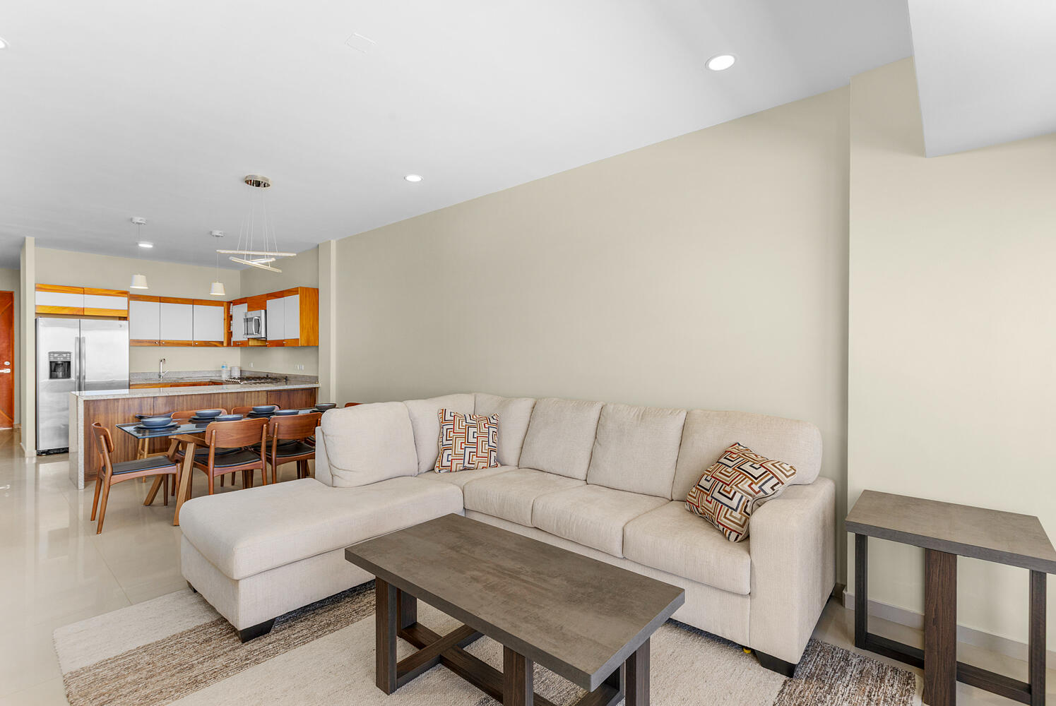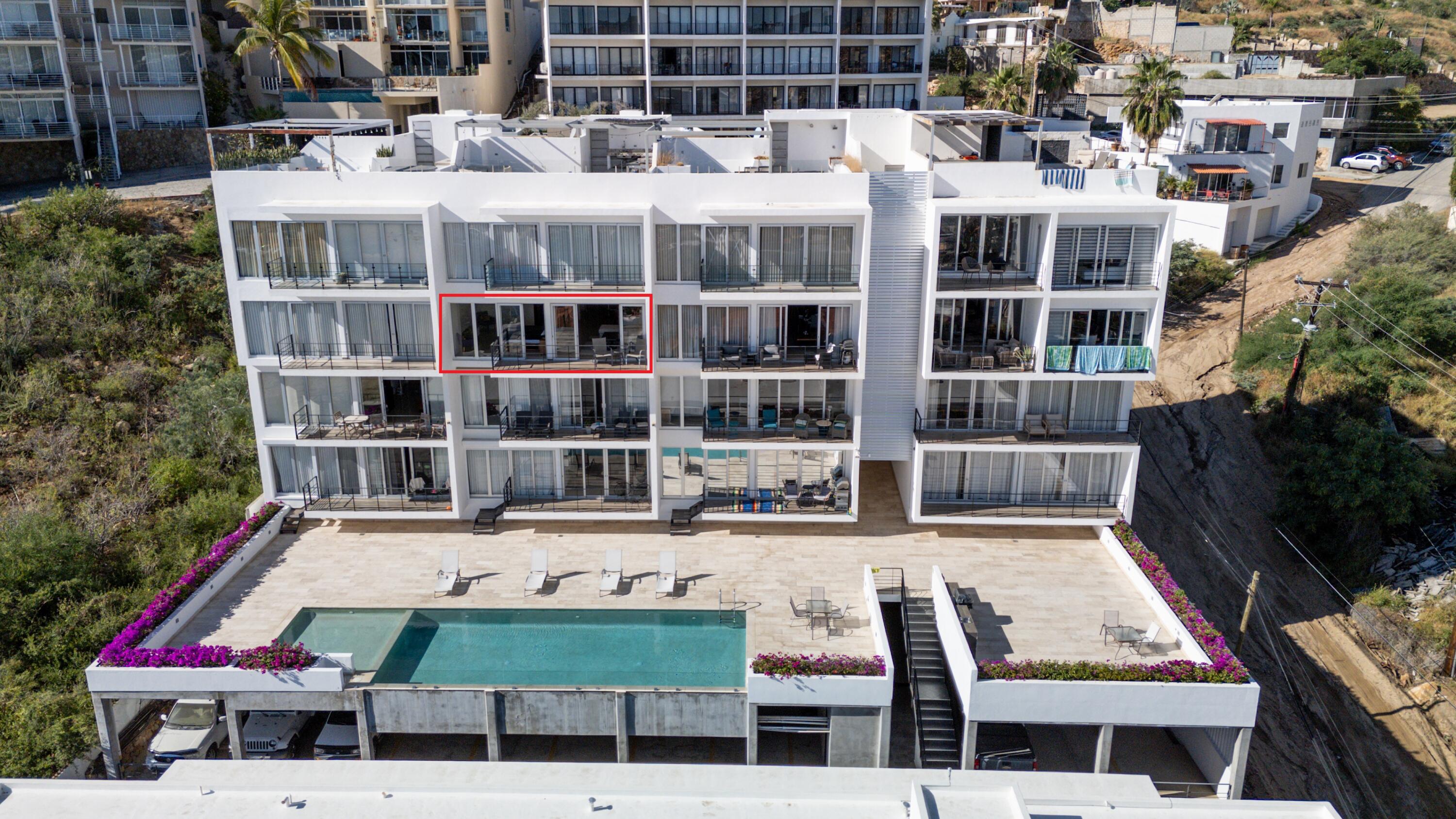 Condo 503 at Condominios Libertad 1065 offers 1,154 sq ft of modern living with unobstructed ocean and city views in the Lienzo Charro neighborhood. This 2-bedroom, 2.5-bathroom condo comes fully furnished with an equipped kitchen, in-unit laundry, and a private balcony accessible from both the living room and primary suite. Two parking spaces (one covered and gated underground) and a storage room are included. Walk to the marina, downtown restaurants, and Médano Beach within minutes. The building features an elevated pool deck with ocean views, BBQ area, and well-maintained common areas. Direct sunrise views over the Sea of Cortez and nightly fireworks along the coast make this location special. ***