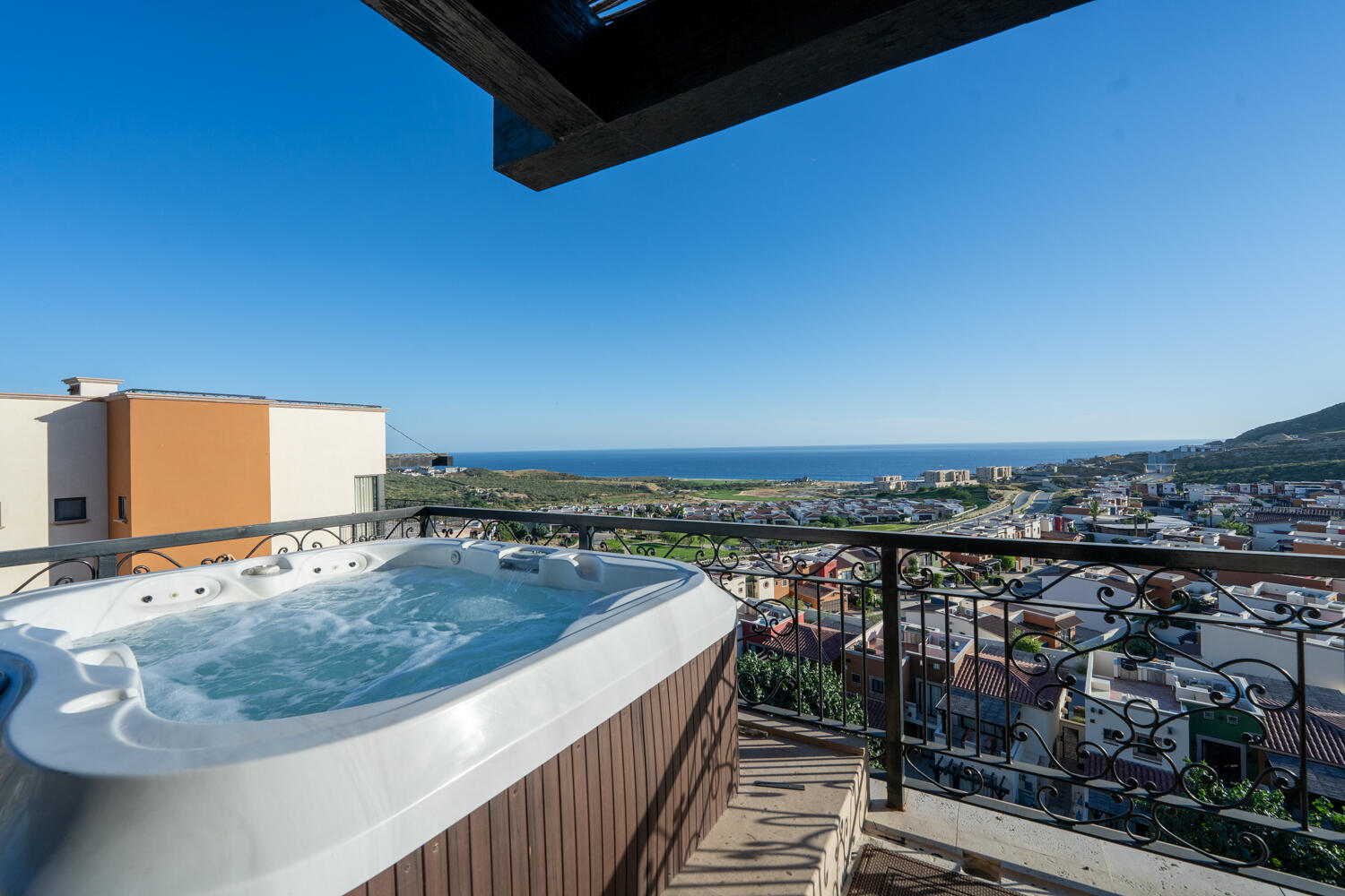 Discover a rare double penthouse in Tower 2, Phase I of Copala at Quivira. A unique residence created by combining two penthouses into a spacious home. The property features a private rooftop terrace with expansive Pacific Ocean views, offering an exceptional outdoor area for relaxing, entertaining, or simply taking in the surrounding landscape and can be accessed from inside. Four pergola parking spaces give plenty of room for Baja toys and vehicles. Located within the gated golf and ocean view community of Quivira, Cabo San Lucas, this home provides a comfortable and elevated living experience. As part of the Copala community, owners enjoy access to a wide range of amenities, including a Beach Club, clubhouse with pool, gym and spa, multiple infinity pools, and the Quivira Golf Clu