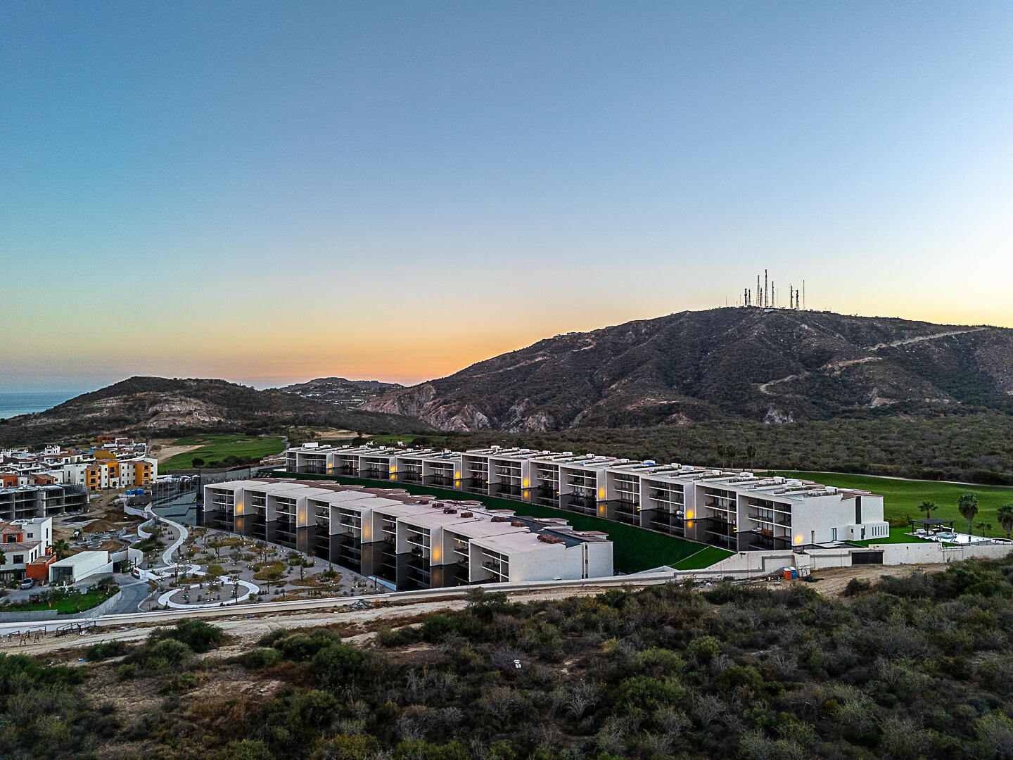 LOWEST priced in Sunset Tower, this 3BR/3.5BA condo offers 2,198 total SqFt with panoramic ocean and golf course views framed by floor-to-ceiling glass and clean architectural lines inside Club Campestre Los Cabos, the open-concept layout is designed for seamless indoor-outdoor living. Contemporary finishes include large-format porcelain tile flooring, recessed LED lighting, premium appliances, and expansive sliding glass doors. Unfurnished ready for your personal touch within a gated master-planned golf community near beaches, dining, and town amenities.