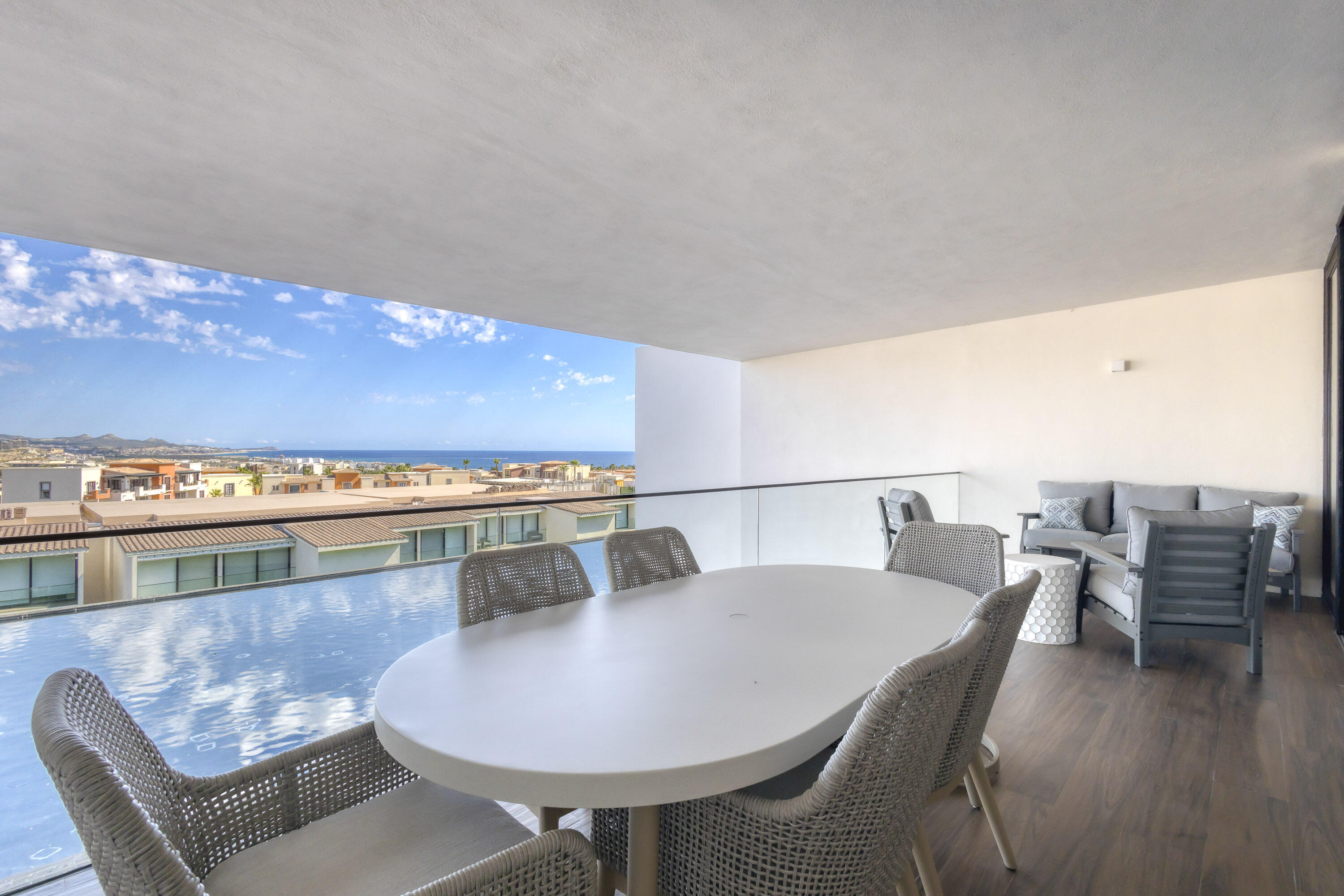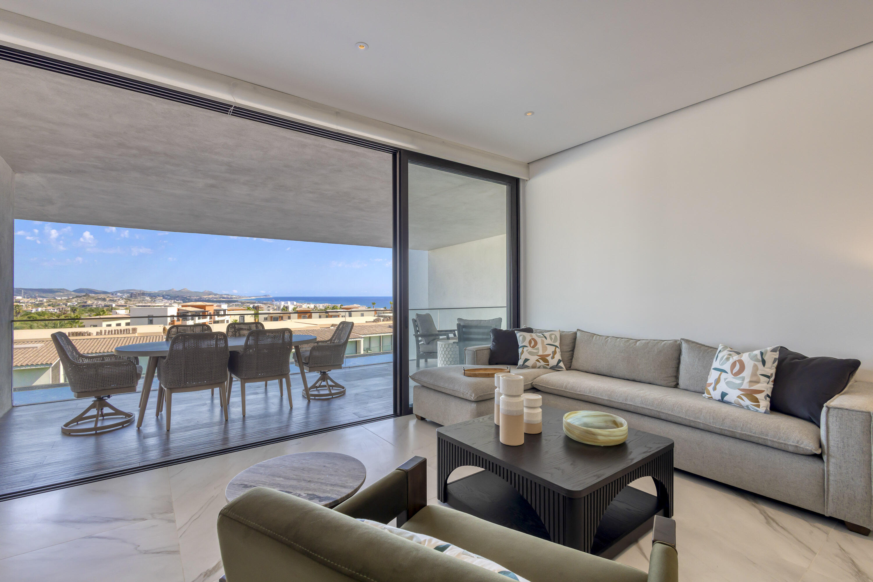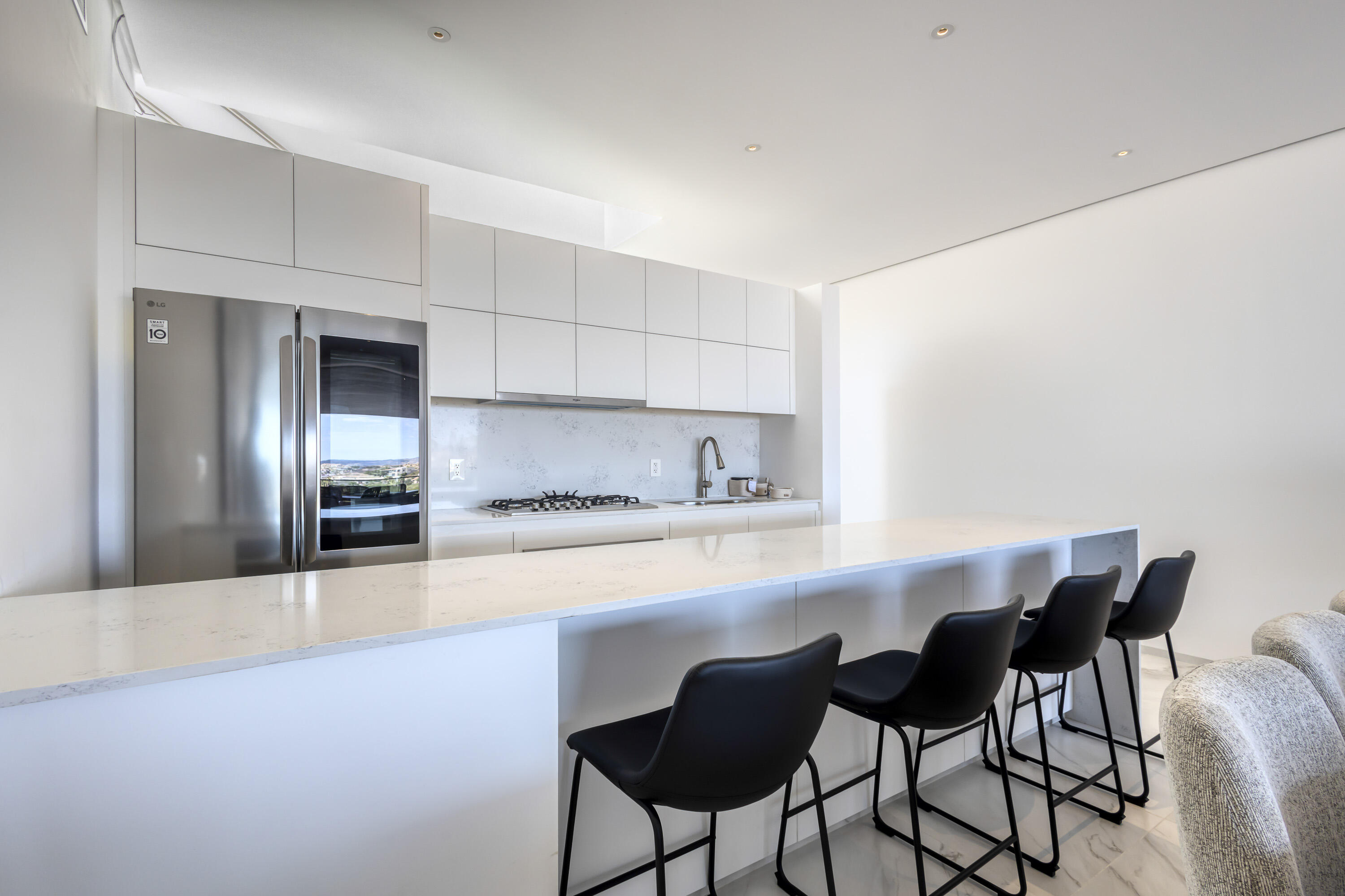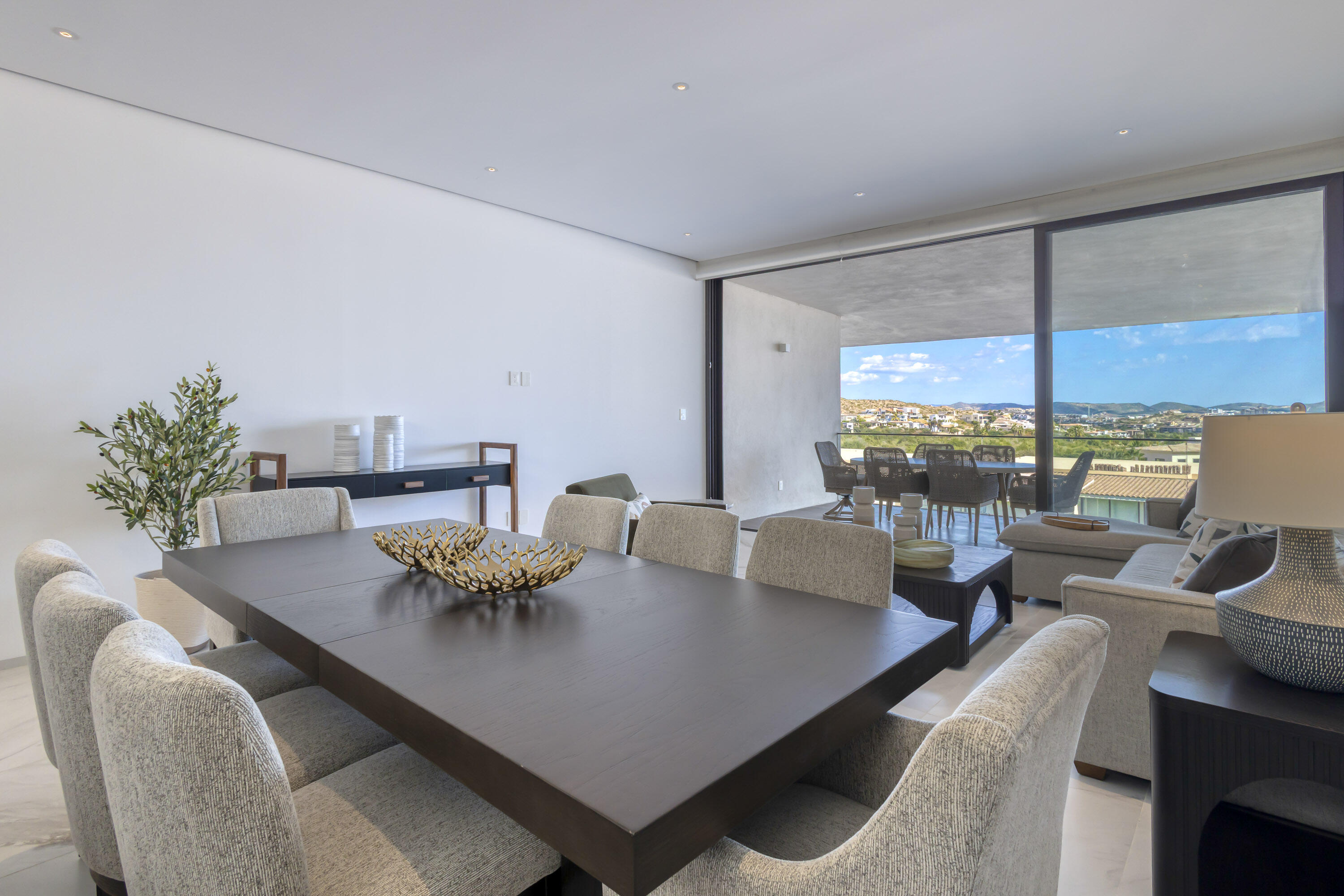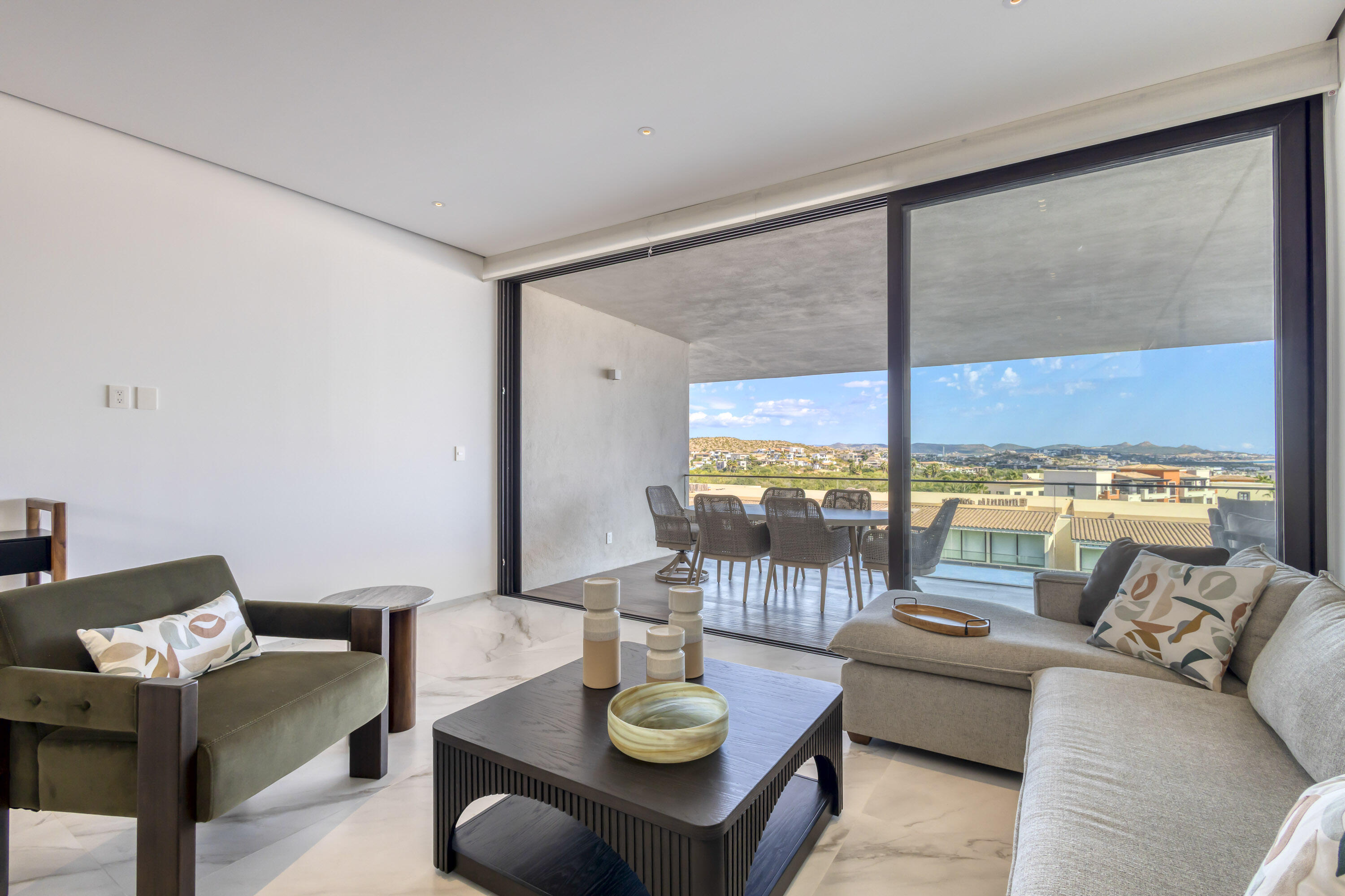 Stunning 3BR, 3.5BA penthouse in Cora Sunset with a private upper sundeck and whirlpool tub boasting panoramic ocean and golf views. Premium access to Campestre Golf & Beach Club, plus community tennis, pool, gym, kids' room, and meeting space. Inside: 75'' LG Smart TV, LG Door-in-Door fridge/freezer, LG TruSteam QuadWash dishwasher, LG AI WiFi washer/dryer, Whirlpool range, LED bathroom mirrors, glass shower doors, mosquito blinds, and upgraded patio furnishings. Minutes to downtown San José, with desert garden and dog park nearby.