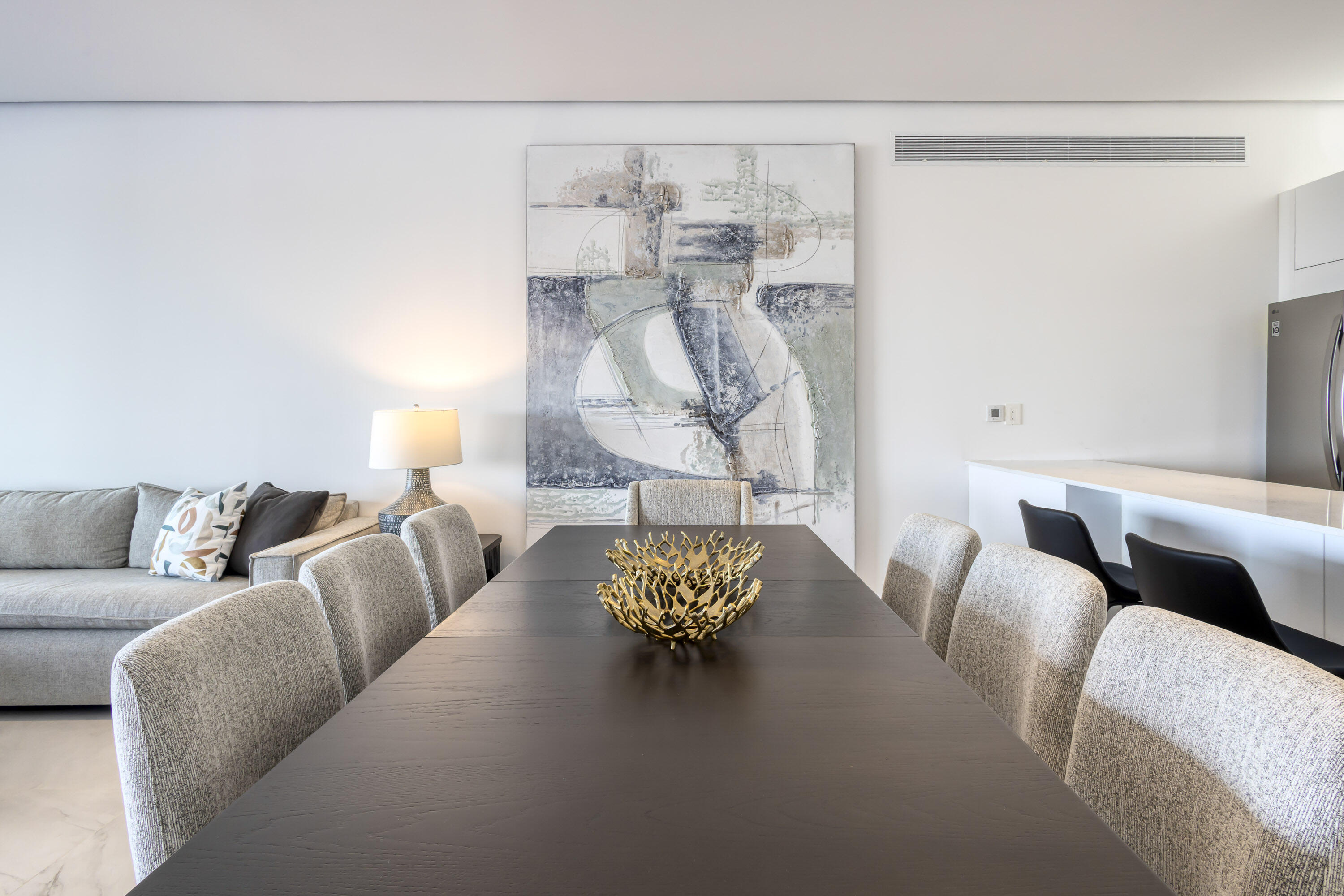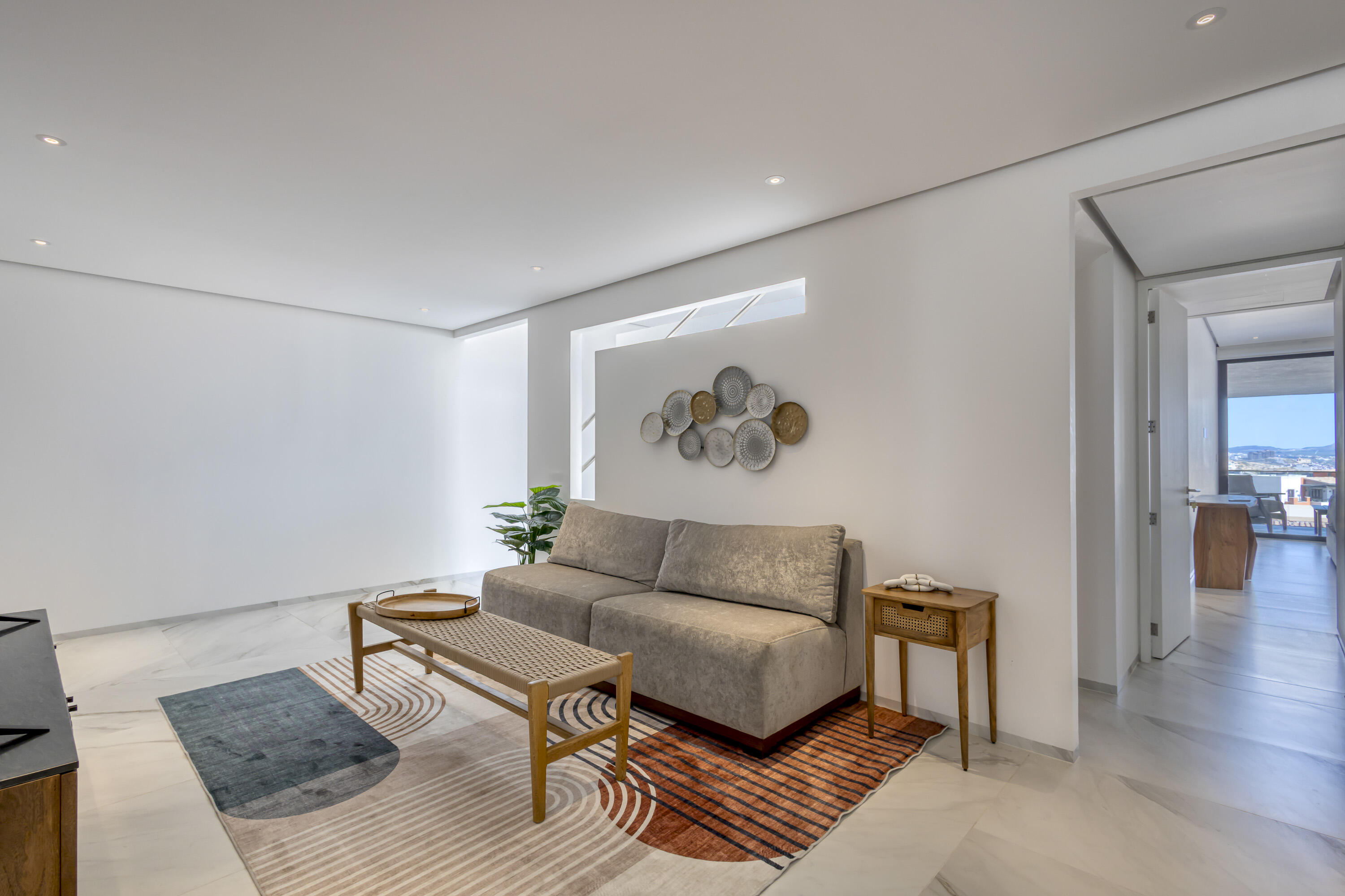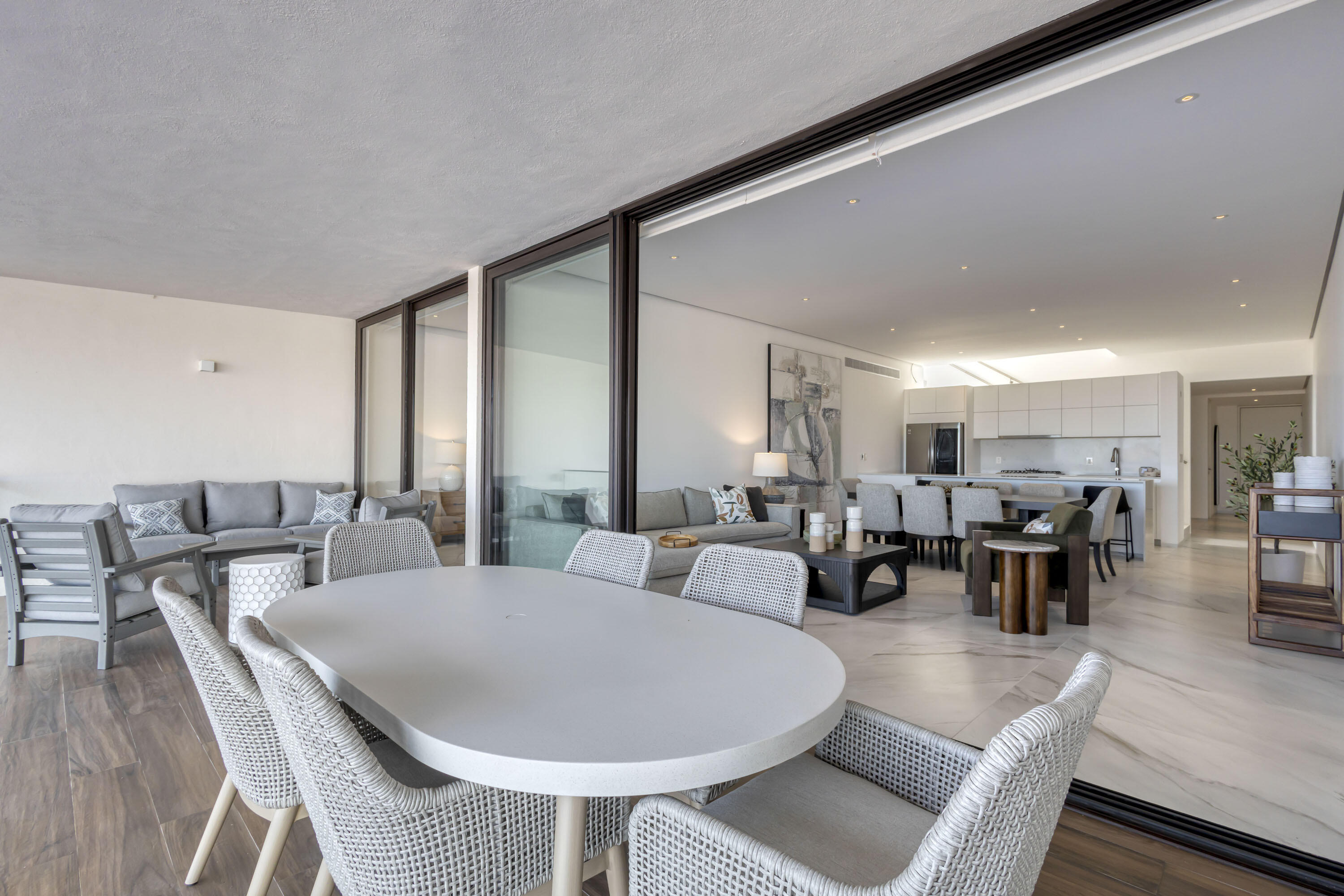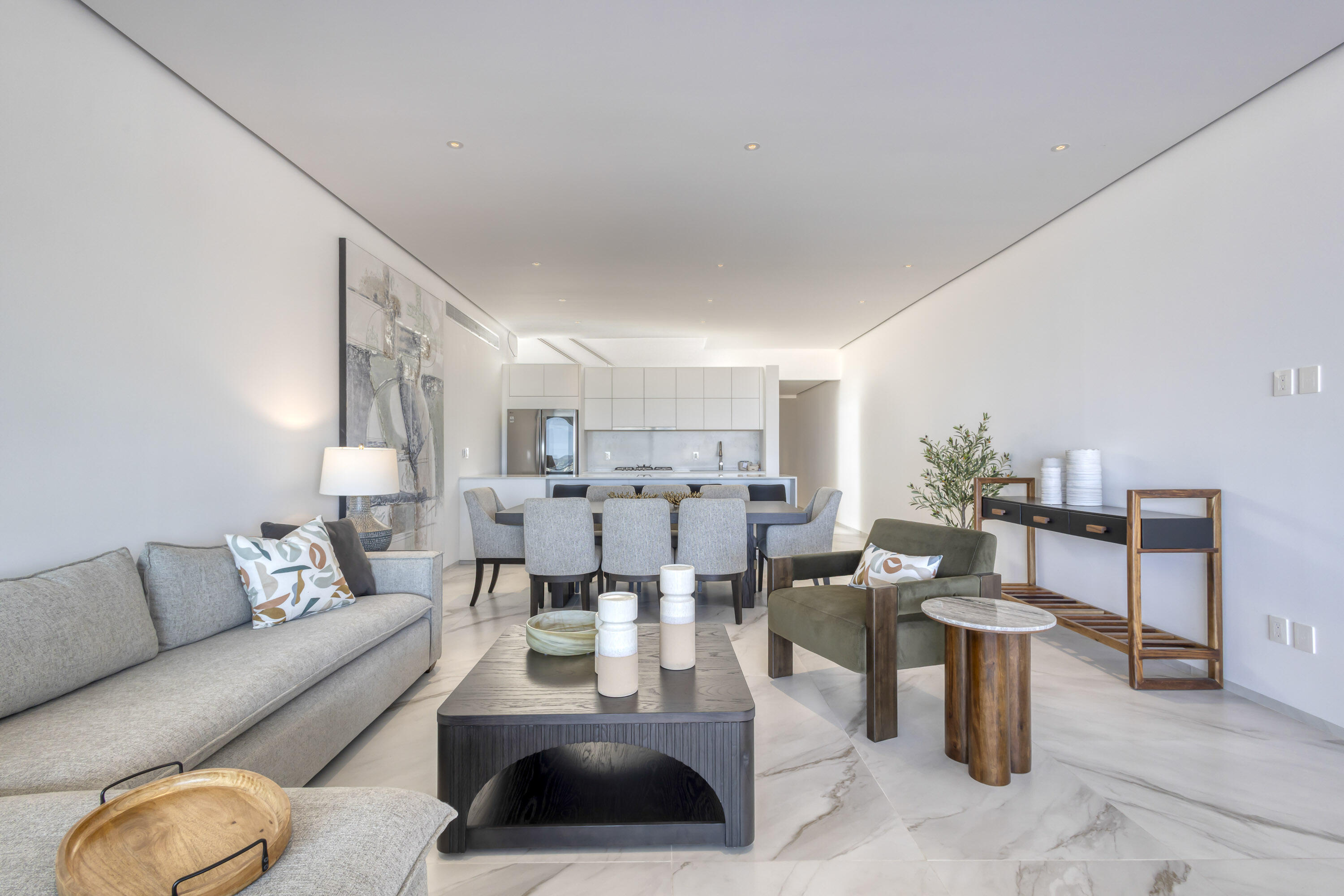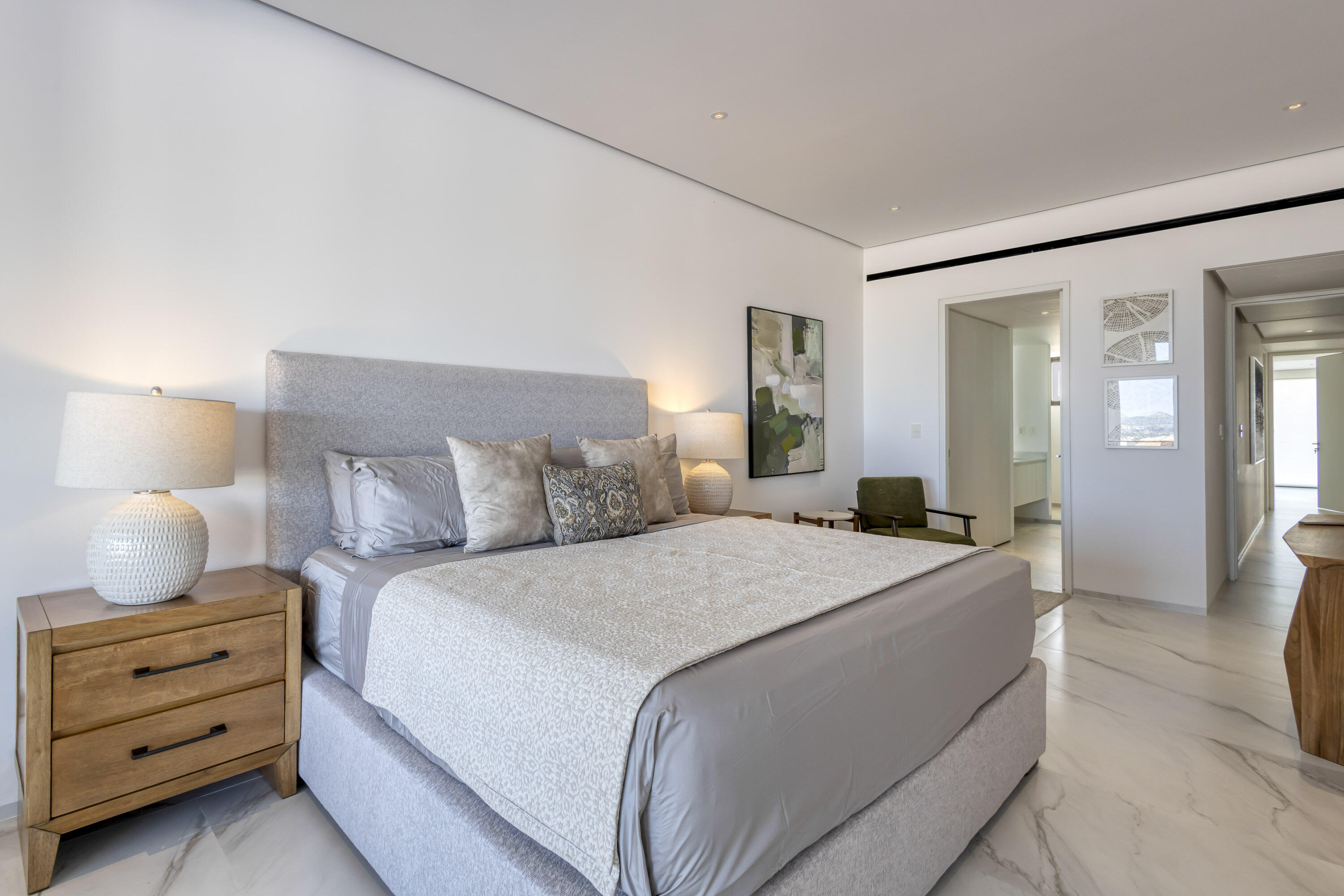 Stunning 3BR, 3.5BA penthouse in Cora Sunset with a private upper sundeck and whirlpool tub boasting panoramic ocean and golf views. Premium access to Campestre Golf & Beach Club, plus community tennis, pool, gym, kids' room, and meeting space. Inside: 75'' LG Smart TV, LG Door-in-Door fridge/freezer, LG TruSteam QuadWash dishwasher, LG AI WiFi washer/dryer, Whirlpool range, LED bathroom mirrors, glass shower doors, mosquito blinds, and upgraded patio furnishings. Minutes to downtown San José, with desert garden and dog park nearby.